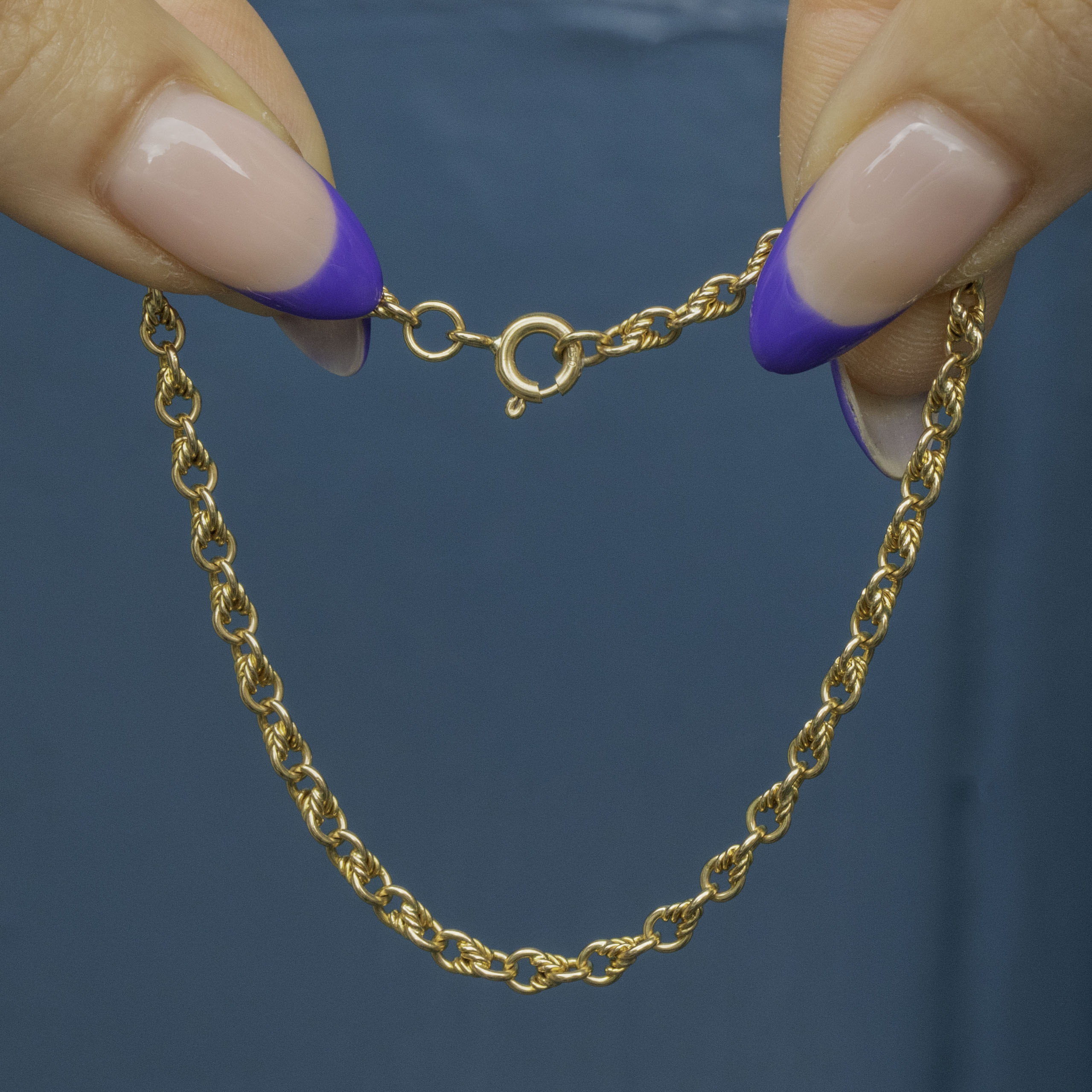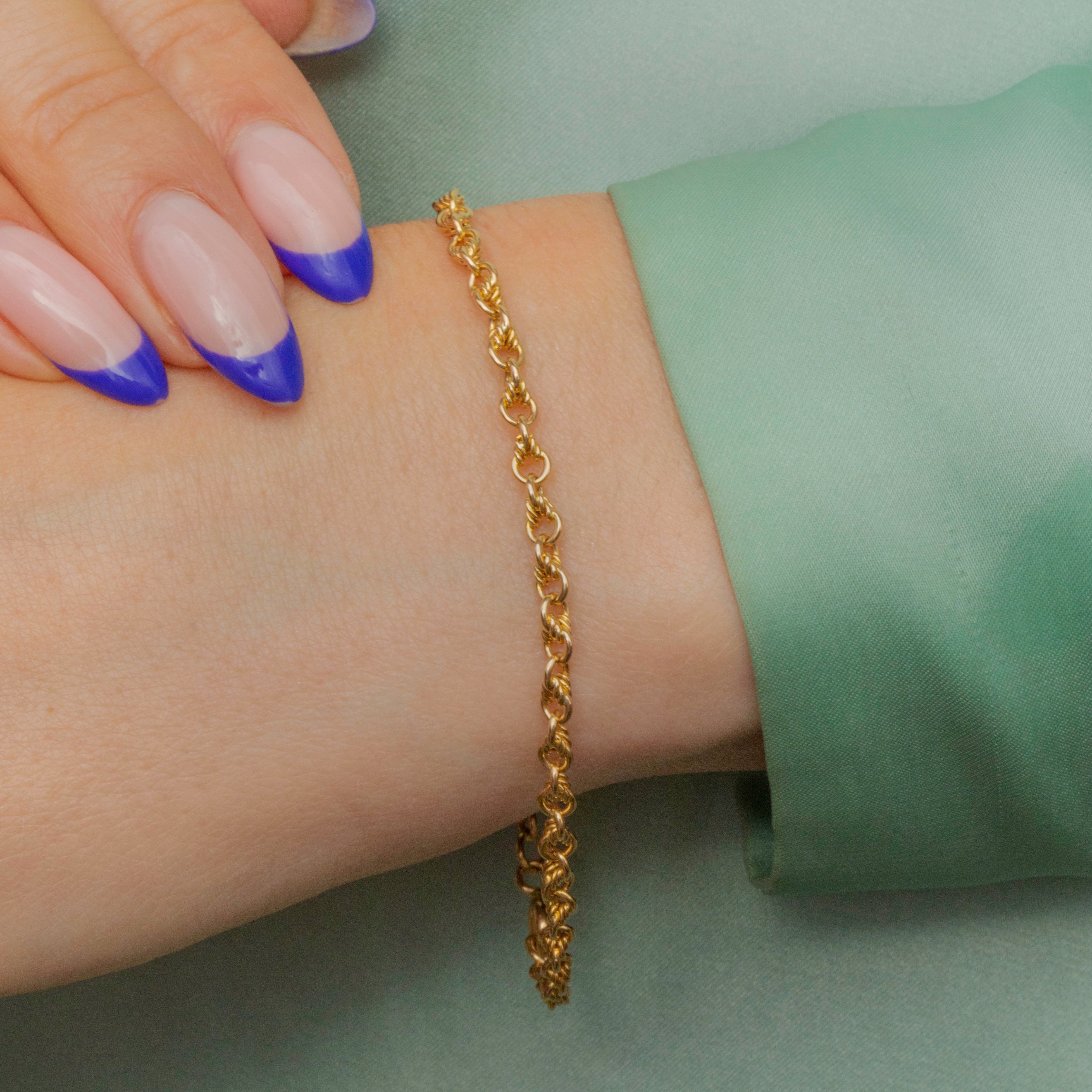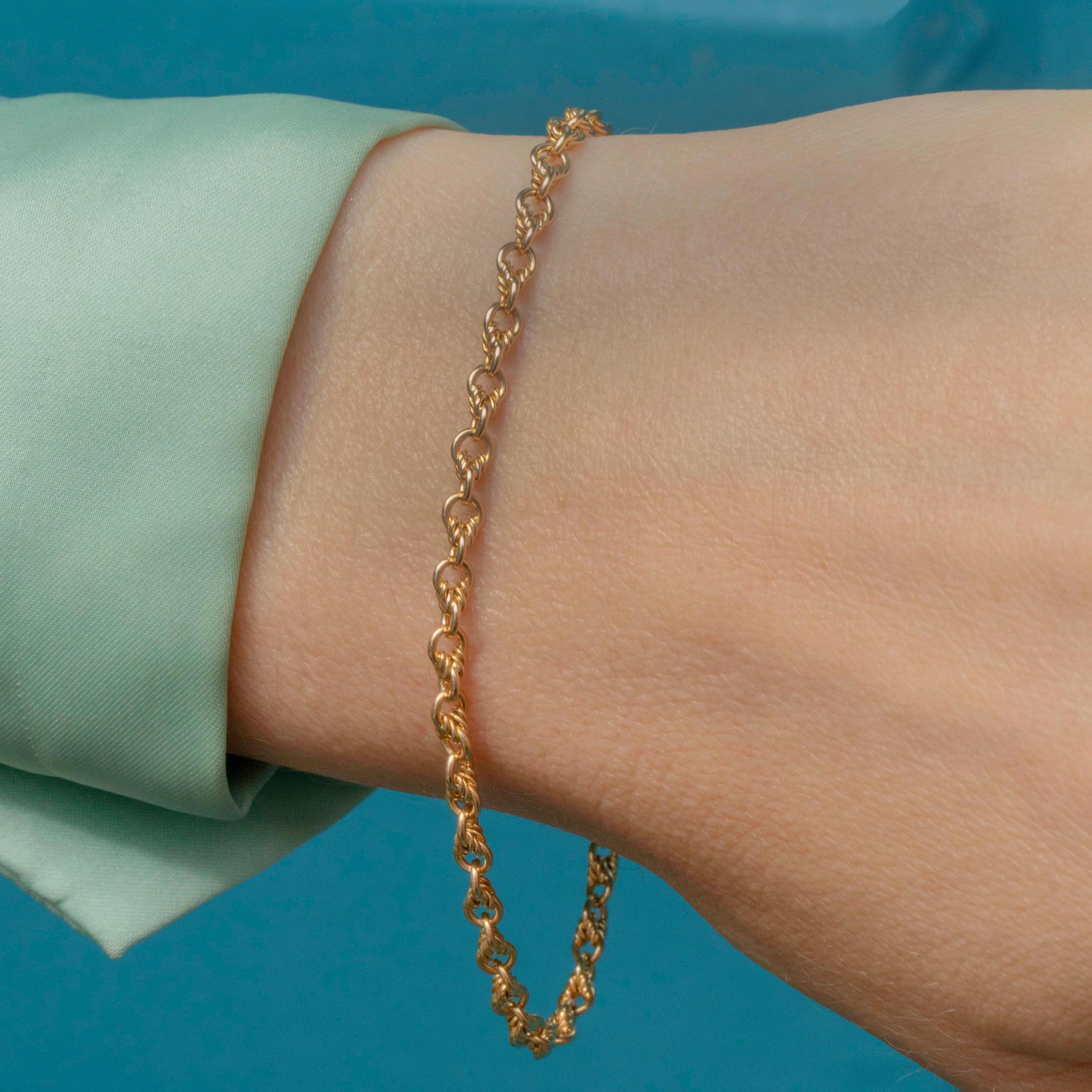 This 7" antique 15ct Gold lovers knot bracelet is a jewellery box essential! Bringing a splendorous splash of Gold to any wrist stack, her 7-inch length is formed of dainty lover's knot links that effortlessly caress your wrist.