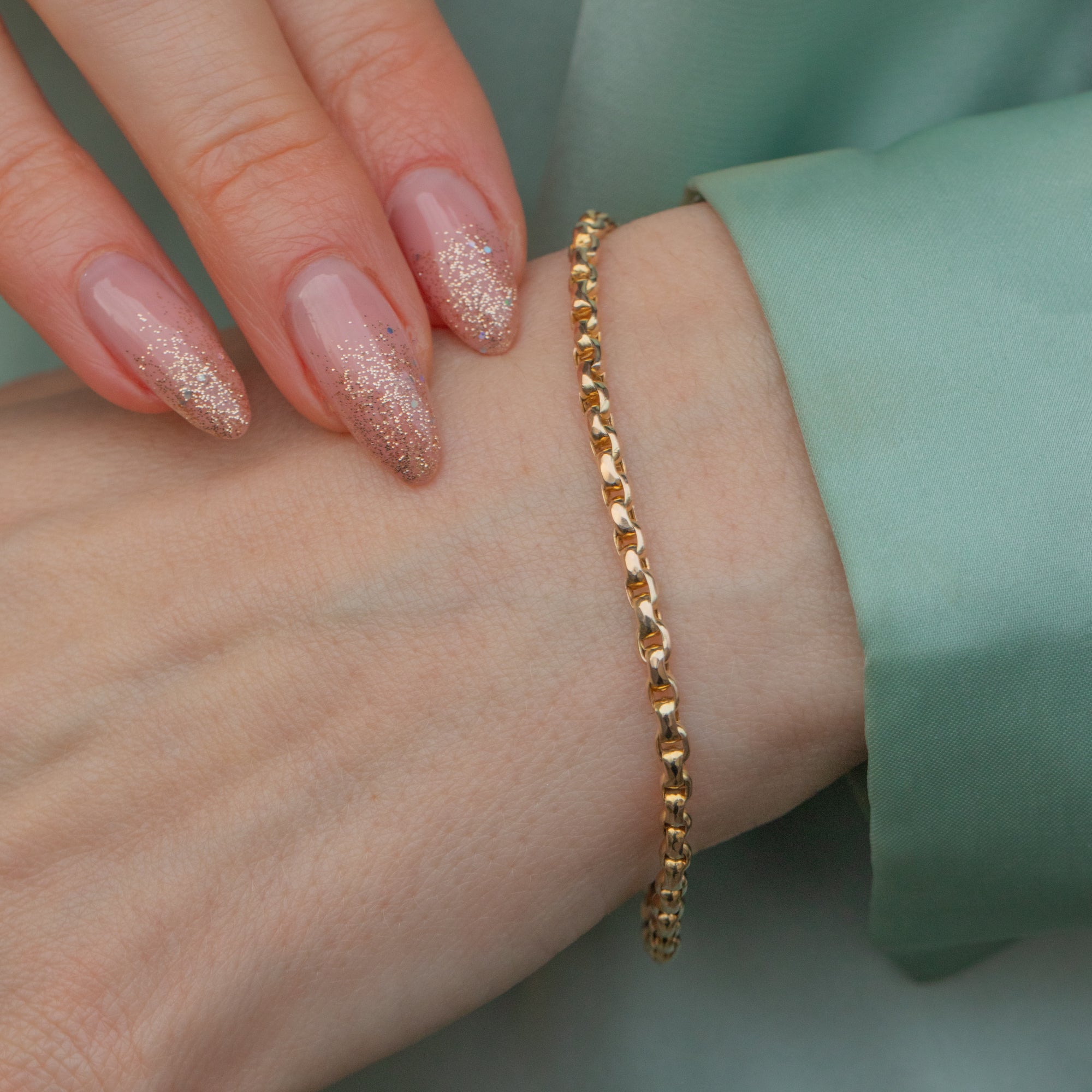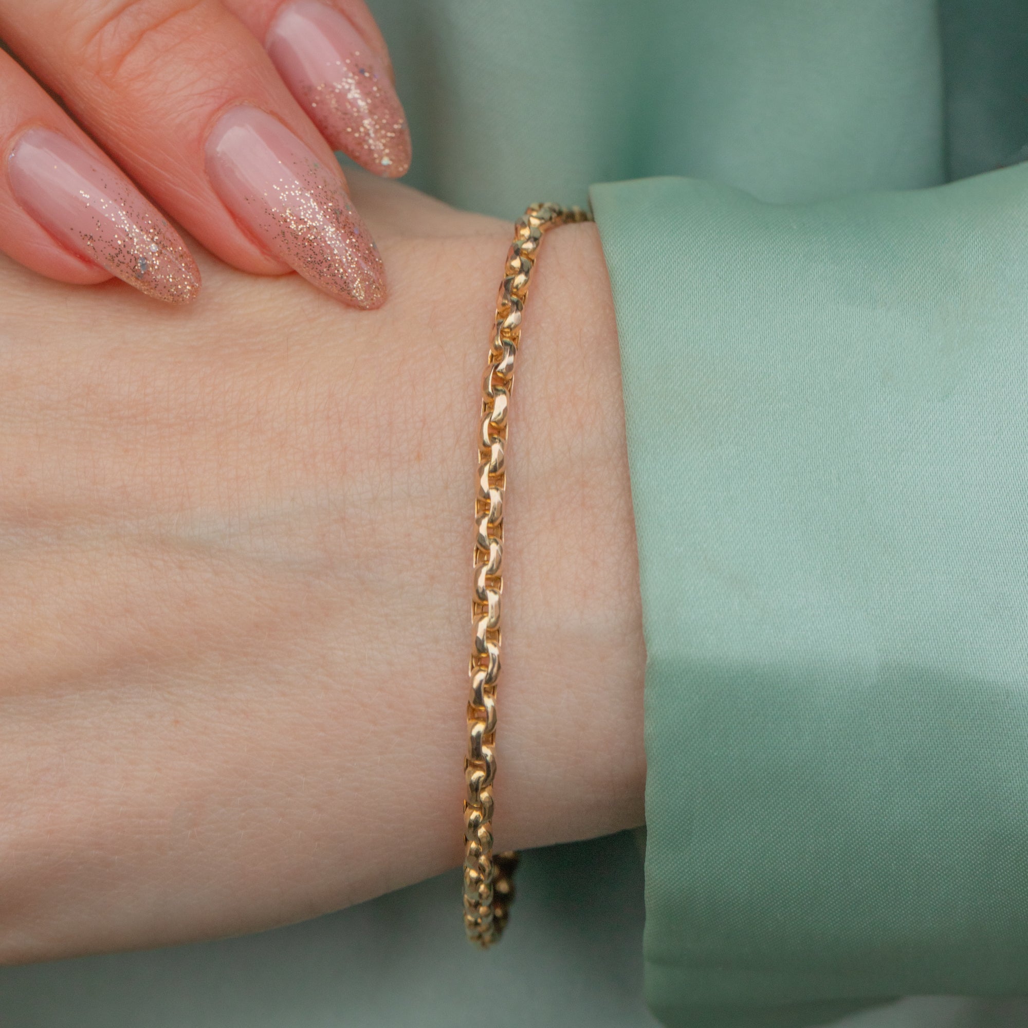 Her golden glow makes this antique piece striking and, whether layered or worn alone, she is sure to be adored. Her 9ct Gold belcher links have been carefully preserved; she is flawless, enduring, and guaranteed to add splendour to any outfit!