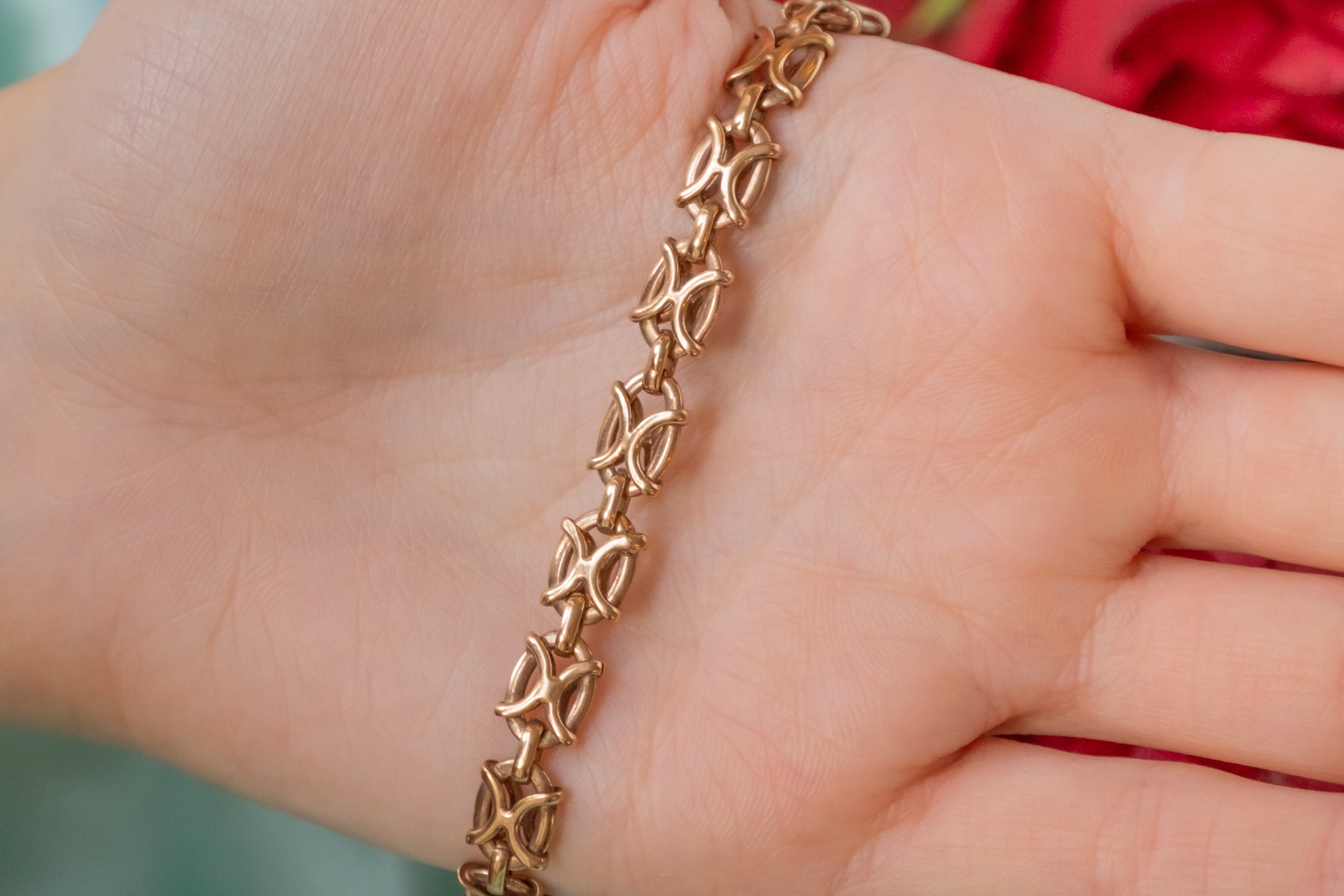 EXCELLENT. This is a gorgeous antique 9ct Gold gate bracelet offered in excellent condition. The bracelet carries a splendid Gold hue and wears securely with a heart padlock. There is very minimal wear to the bracelet overall, and it has a safety chain for that extra sense of security. This is a gorgeous piece of Victorian jewellery ready to be adored for many more years to come!