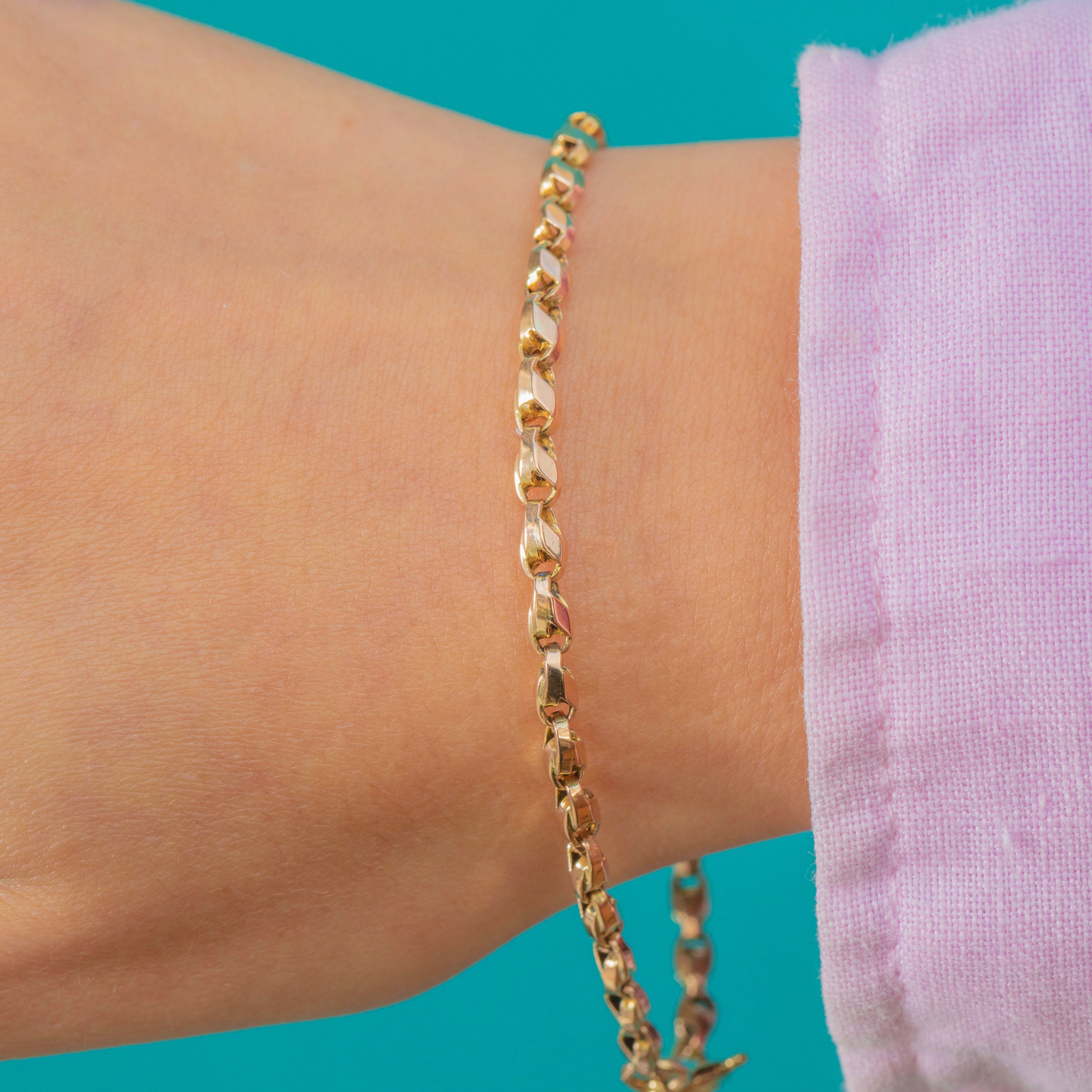 This Victorian 9ct Gold tulip link bracelet is a charming and wearable antique treasure. The pretty tulip-shaped links give it a delicate, feminine movement, creating a bracelet that’s perfect for everyday wear or stacking with your favourite bangles and chains.