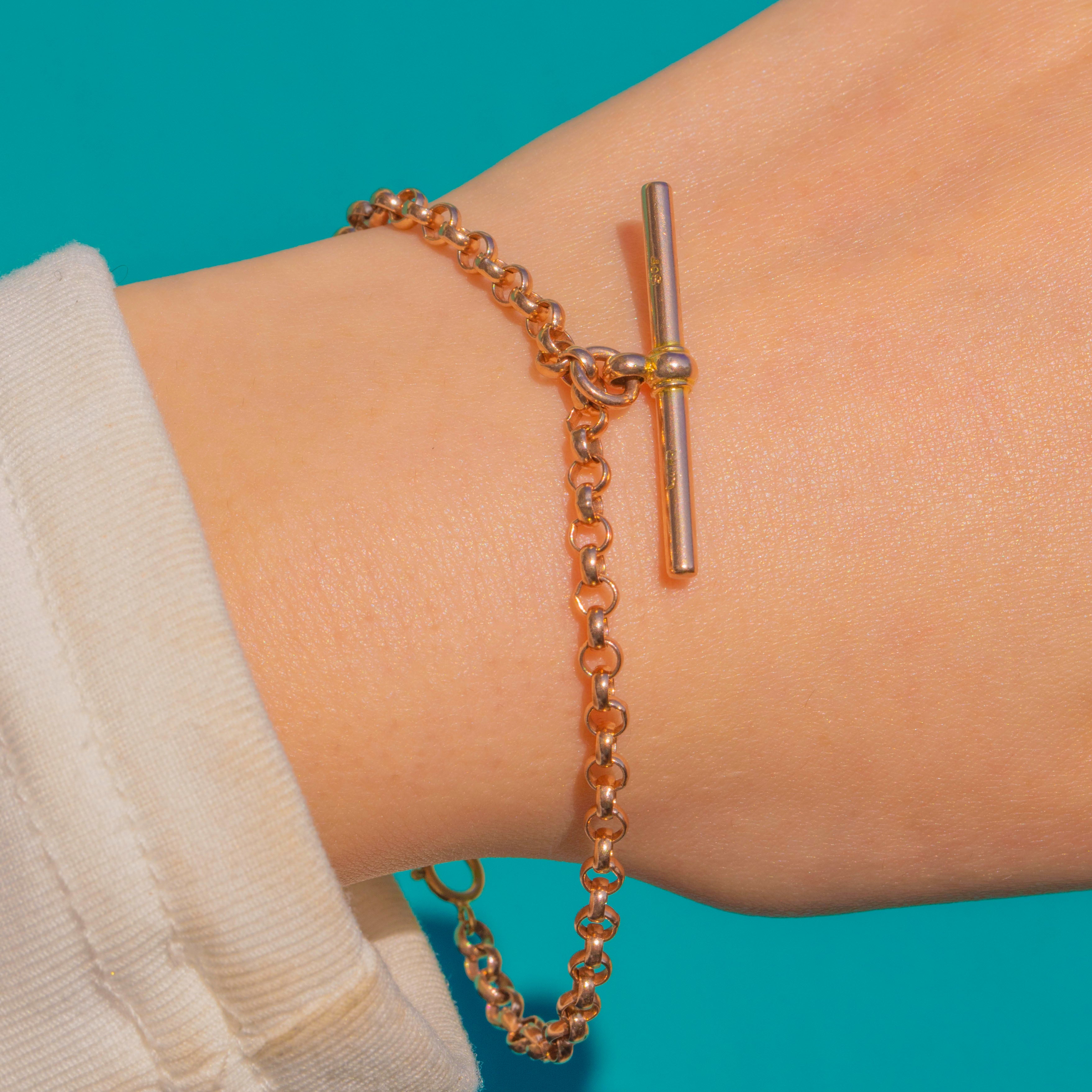 A timeless Victorian 9ct Gold Belcher chain bracelet, finished with a classic T-Bar for effortless elegance. The rounded, plump links create a soft, fluid drape and a warm golden glow, making this beauty a joy to wear alone or layered.