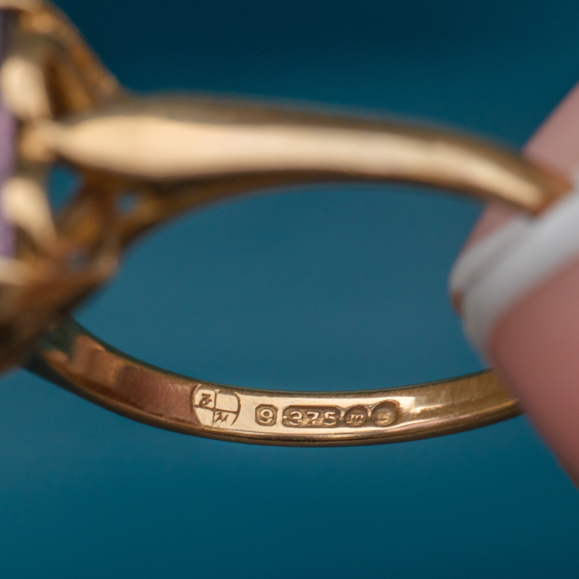 HALLMARKS: ' 9', '.375', Leopard's Head, Date letter 'm' for the year 1967 inside band.