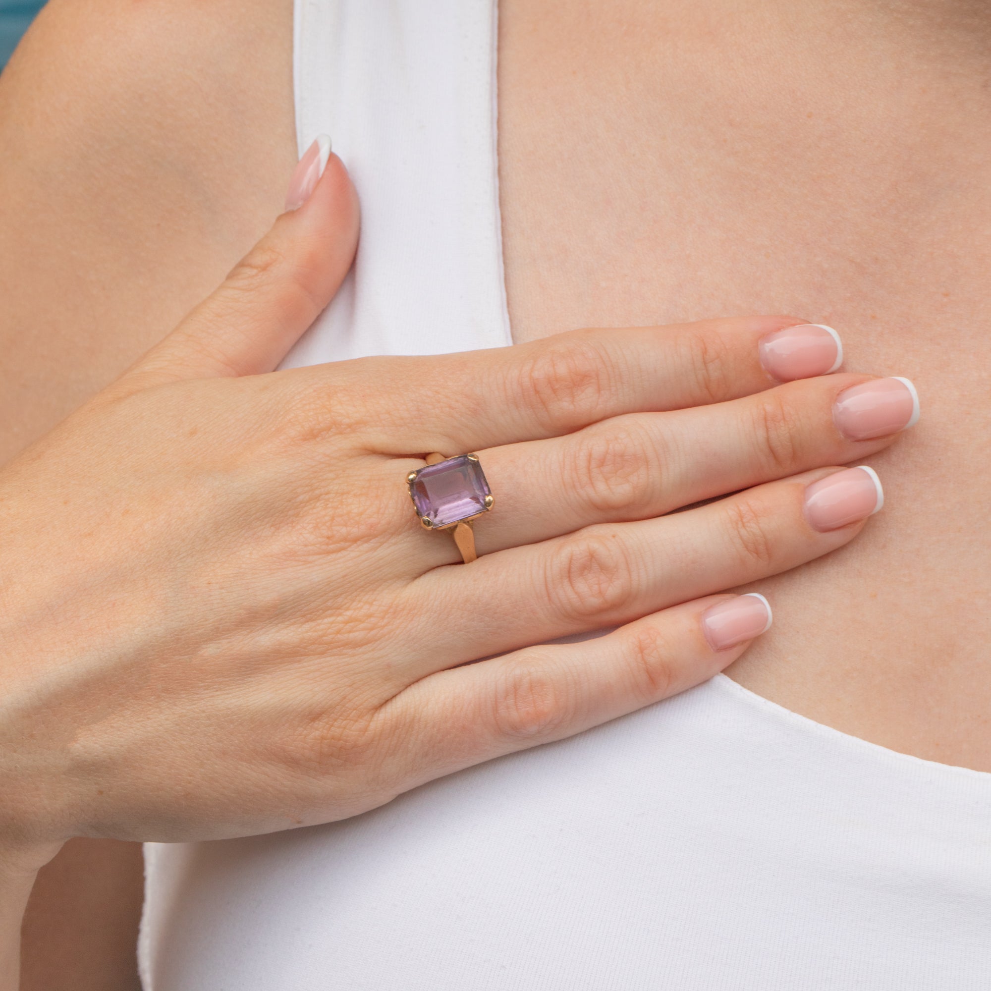 Cocktail rings are a firm favourite here at Lillicoco and this 9ct Gold Amethyst cocktail ring is no exception! Her impressive 4.75ct rectangular Amethyst boasts deep lavender hues from her centre, radiating through each of her geometric facets.