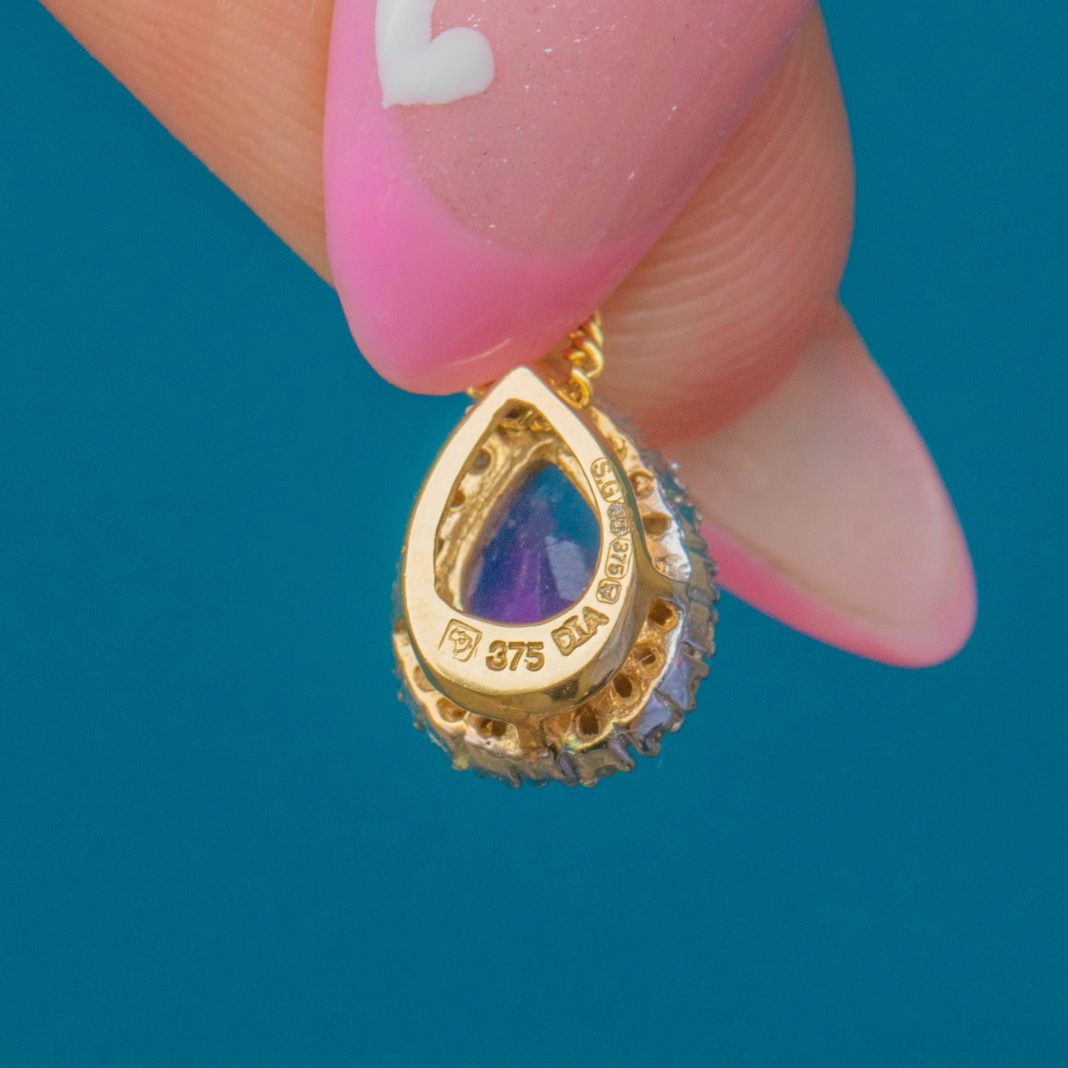 9ct Gold Amethyst Diamond Pear-Shaped Cluster Pendant with 18" Chain Item added