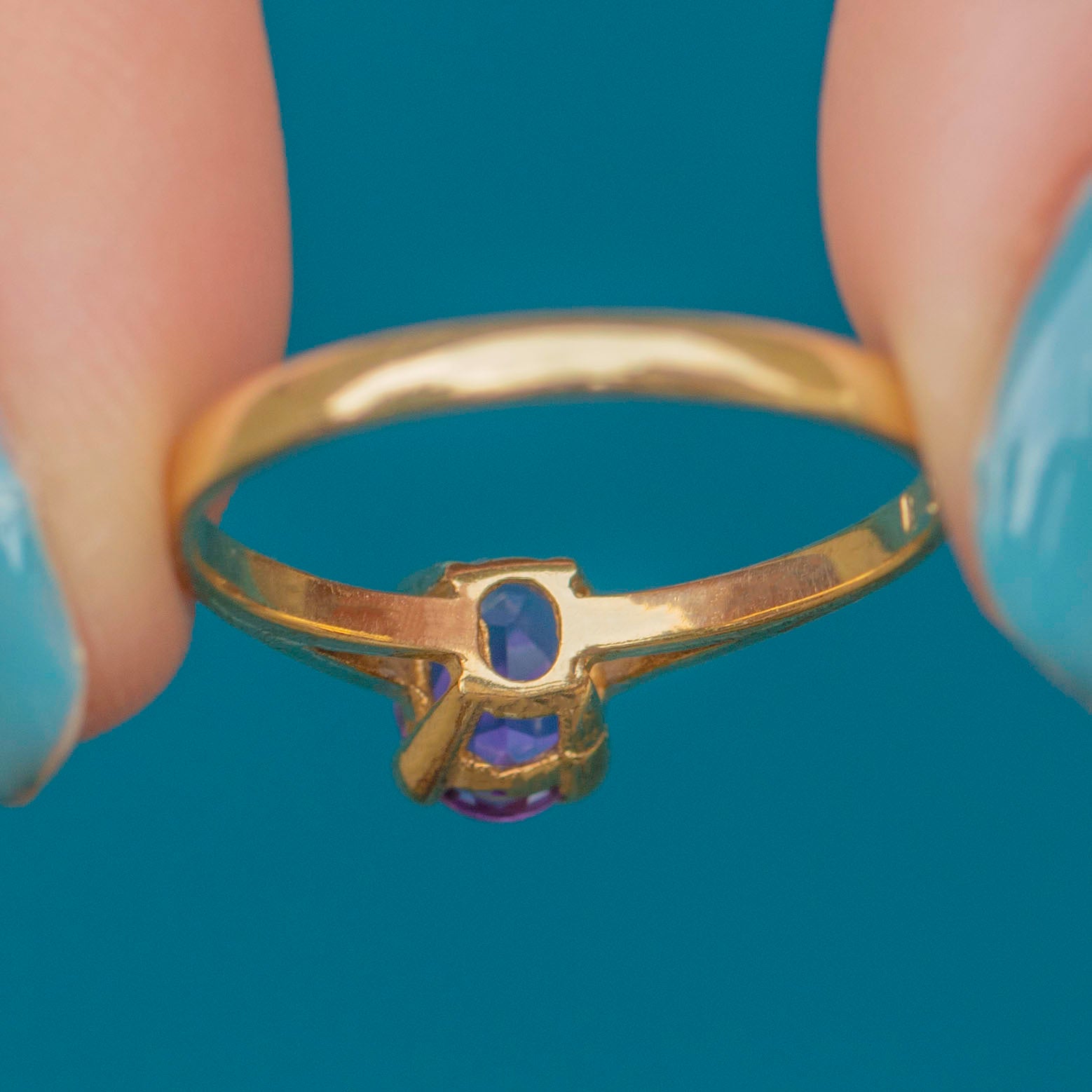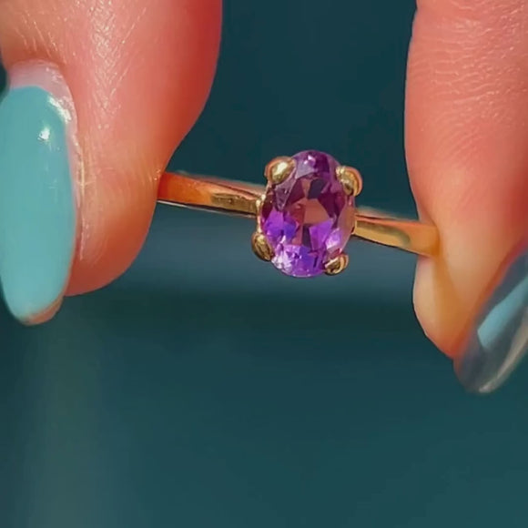 At the perfect size, this yellow Gold ring can easily sit in amongst a ring stack or be worn alone for those who like to flaunt a subtle splash of splendour. With her Amethyst flaunting popping purple hues, she is bound to catch the eye of any onlooker!