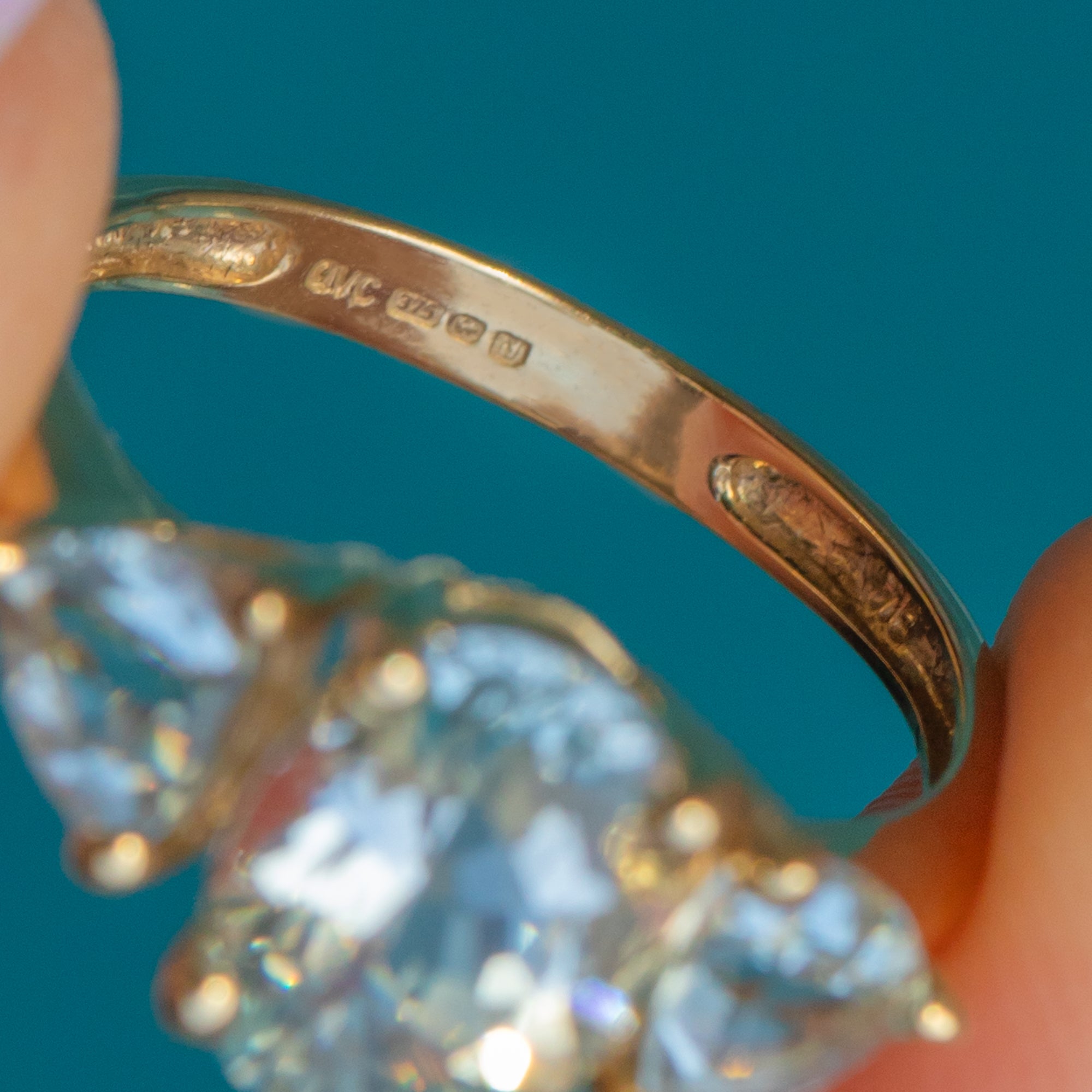 STAMPS: QVC maker's mark, 375 Fineness mark, other marks obscured