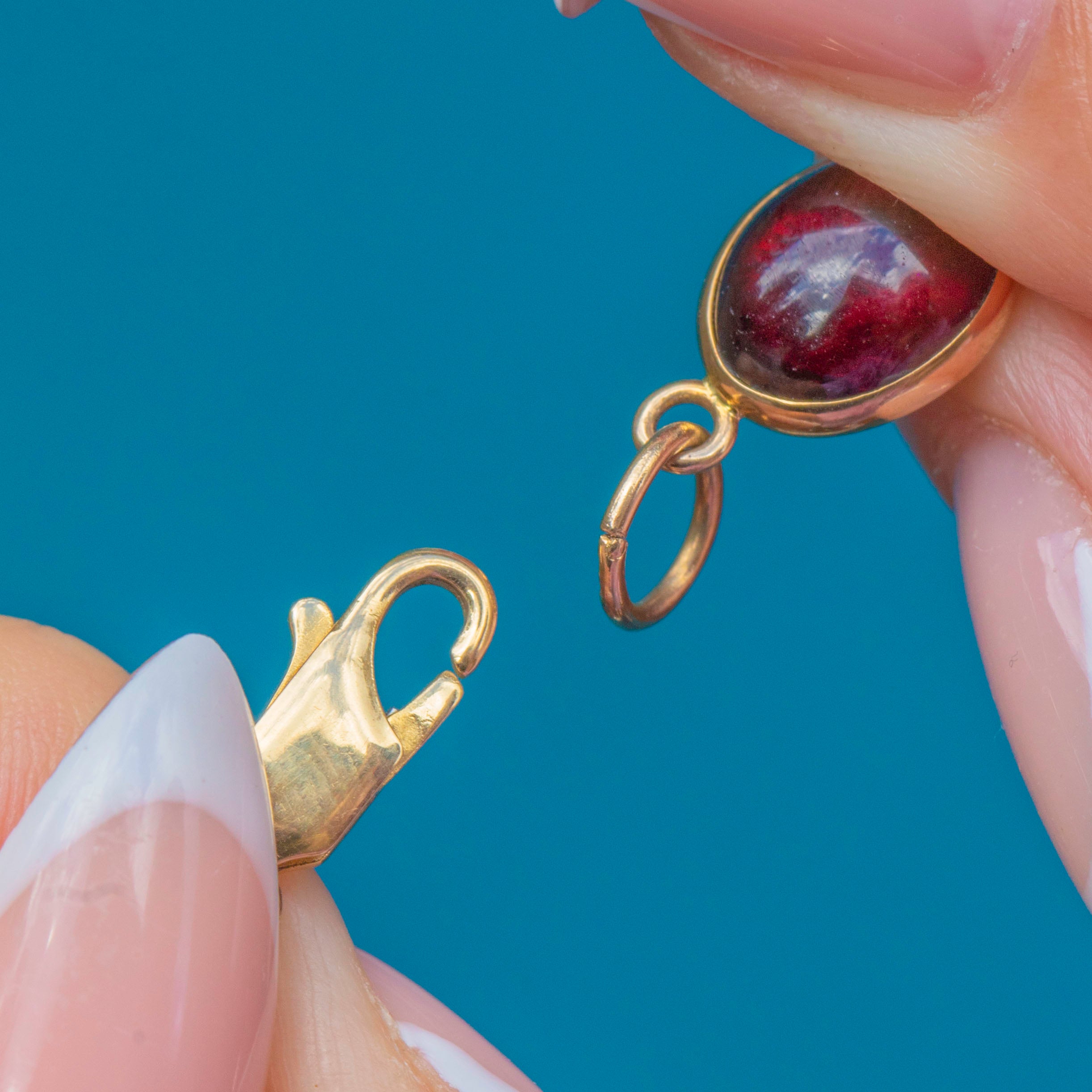 EXCELLENT: The Garnets are all well-matched in colour and free from chips or cracks. The Gold settings and links are strong and secure, and the clasp works perfectly. Hallmarks are partially rubbed but still visible in places.