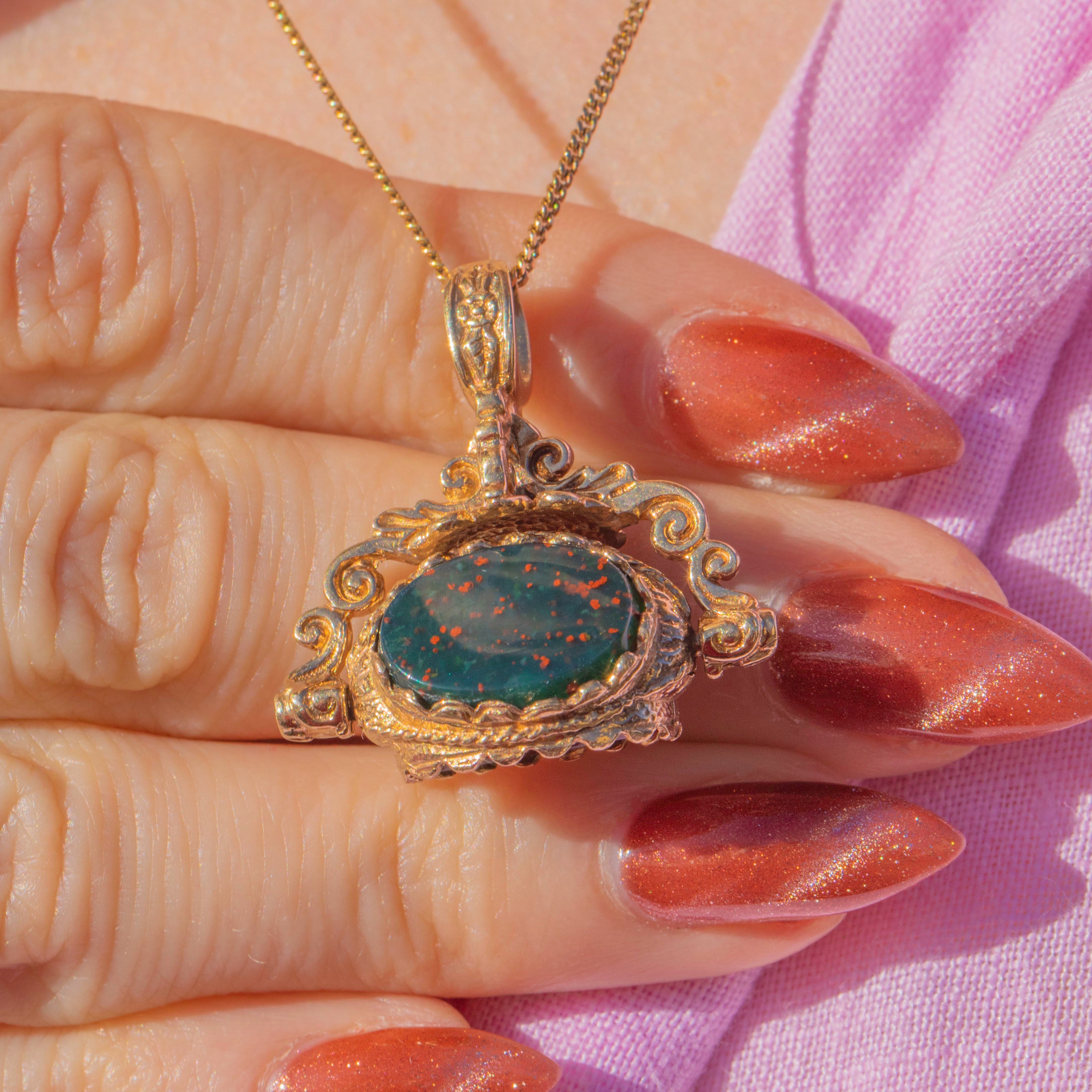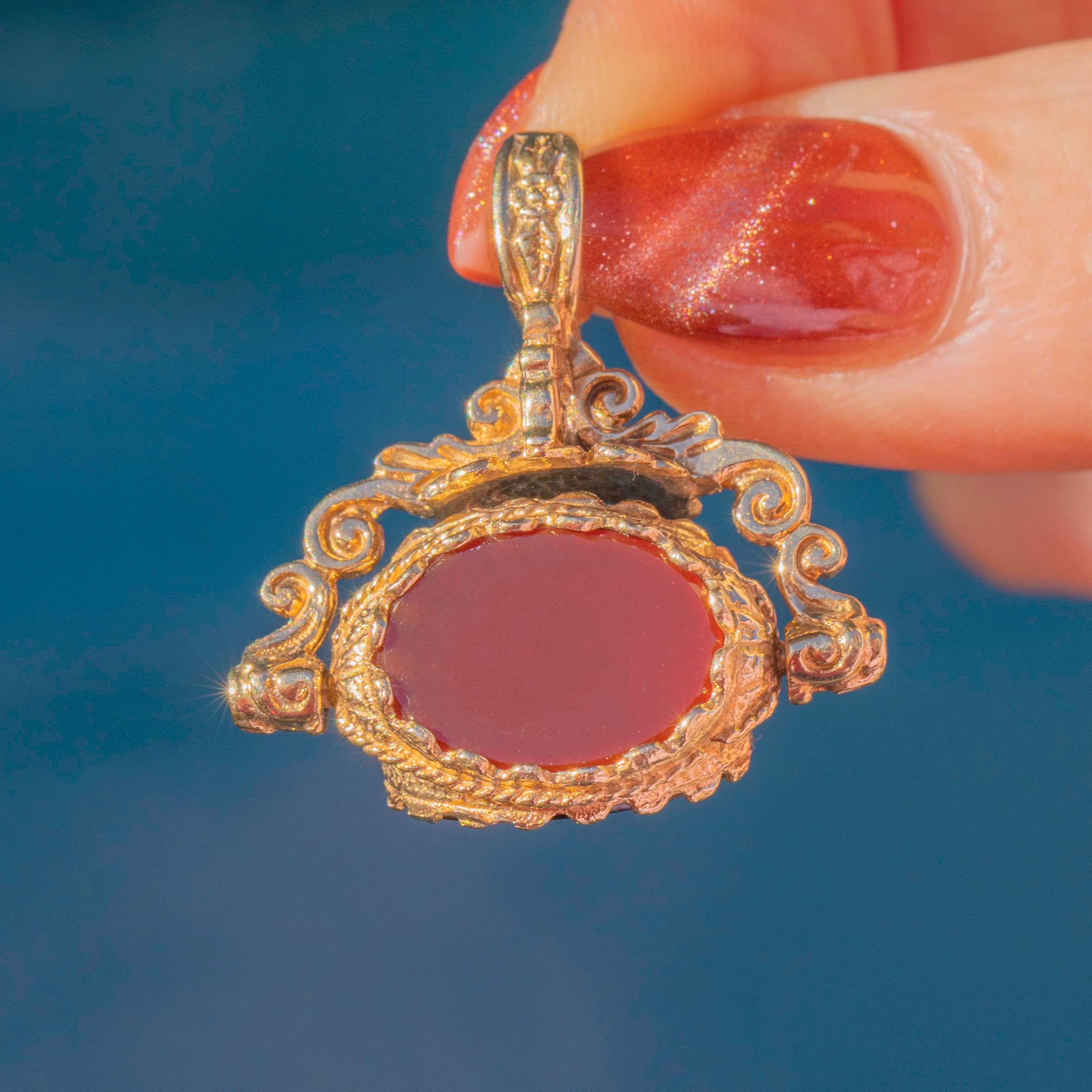 9ct Gold Bloodstone Carnelian Onyx Spinner Fob Pendant