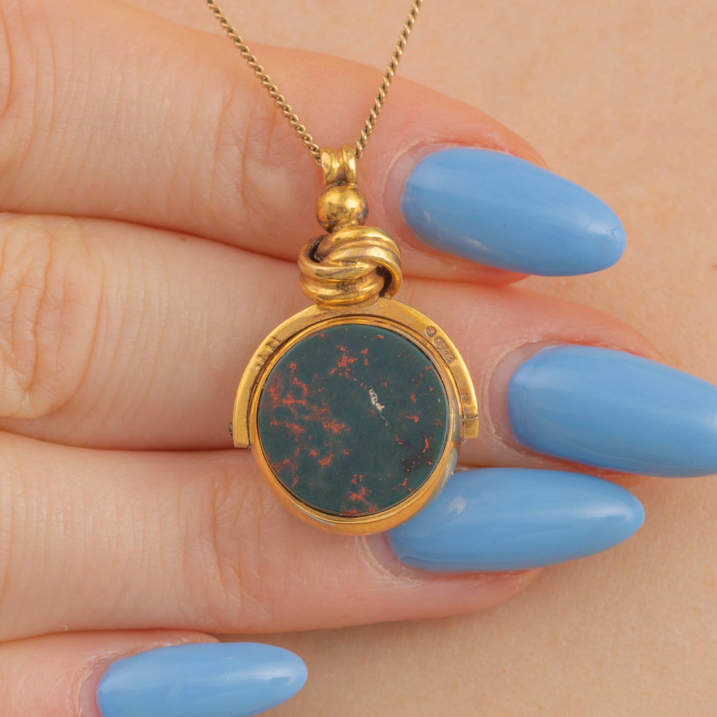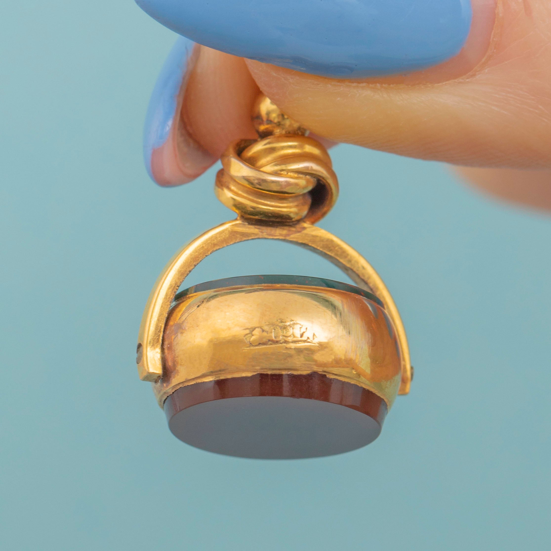 9ct Gold Bloodstone Carnelian Spinner Fob Pendant