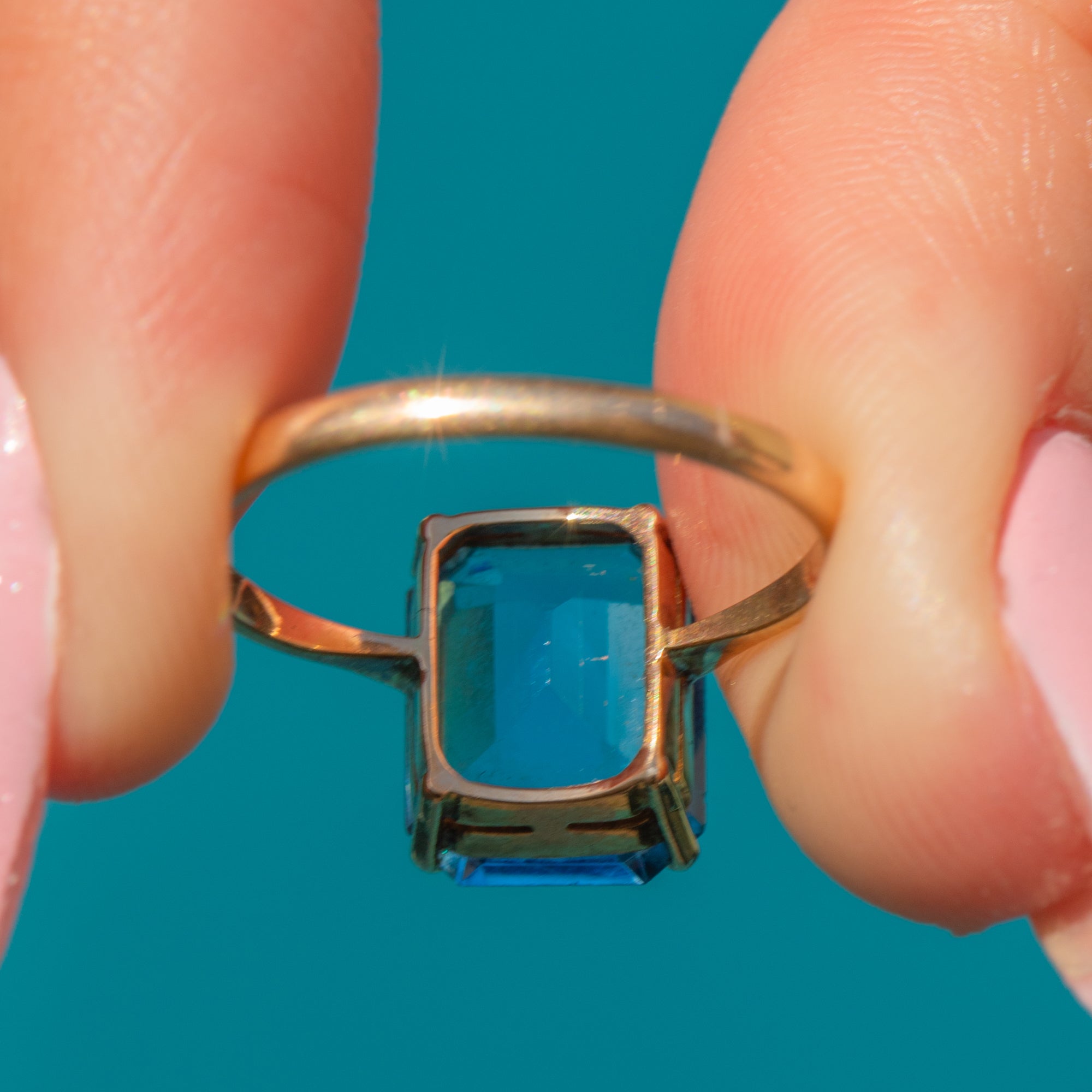 This 9ct Gold Blue Paste ring is a heavenly piece, boasting a deep azure Paste gem clasped in a saturated 9ct Gold claw setting!