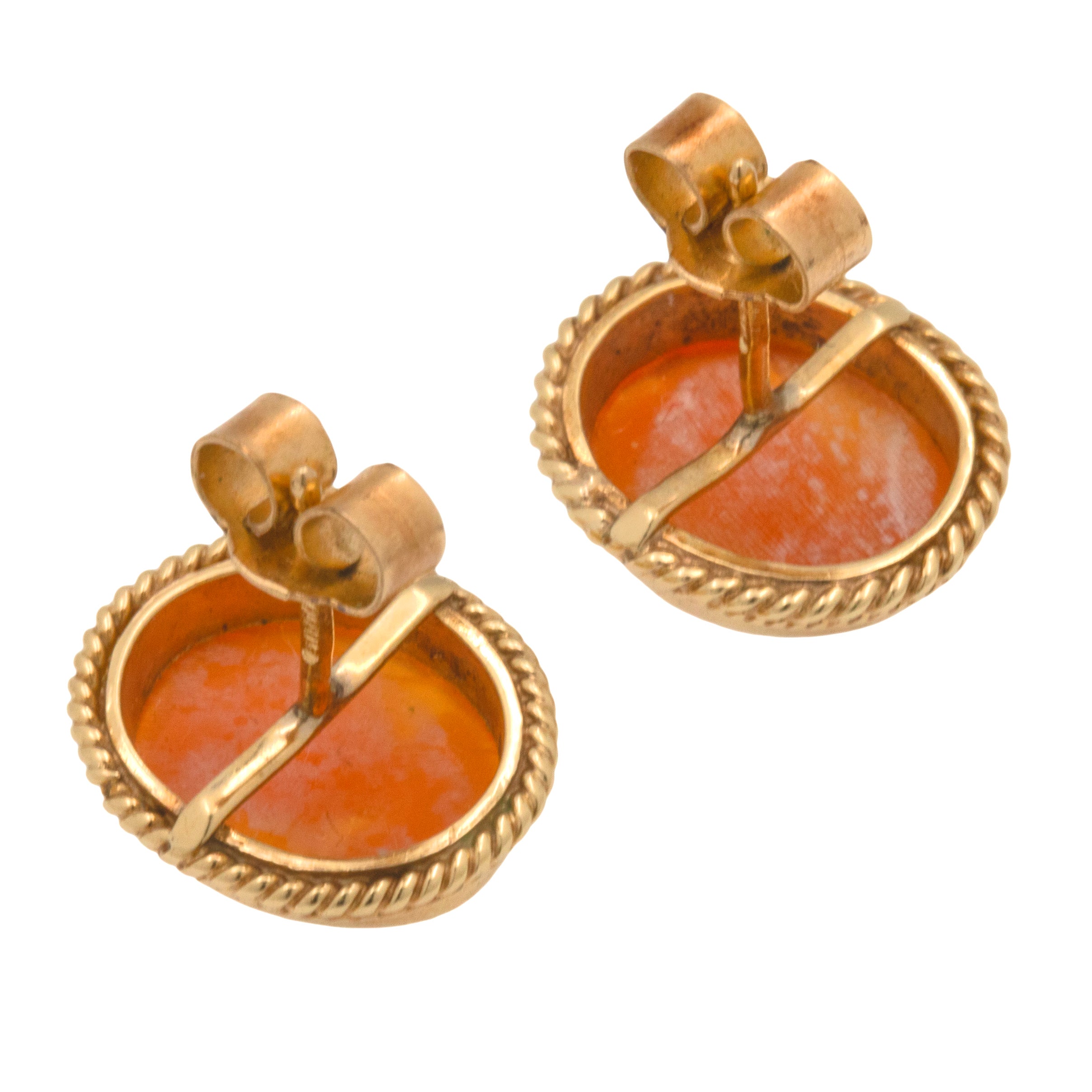 If you're a lover of cameo brooches, you will be swooning over these 9ct Gold Cameo stud earrings! Expertly carved portraits sit at the forefront, illuminated by the peachy tones in their background; we believe the portraits are of the greek God Apollo.