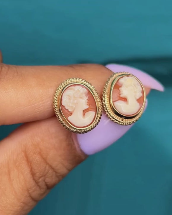 Framed by richly saturated 9ct Gold, these splendorous cameo portraits will add intrigue to your lobes. Crafted in 1990, these vintage Gold stud earrings carry bundles of historic value and timeless appeal!