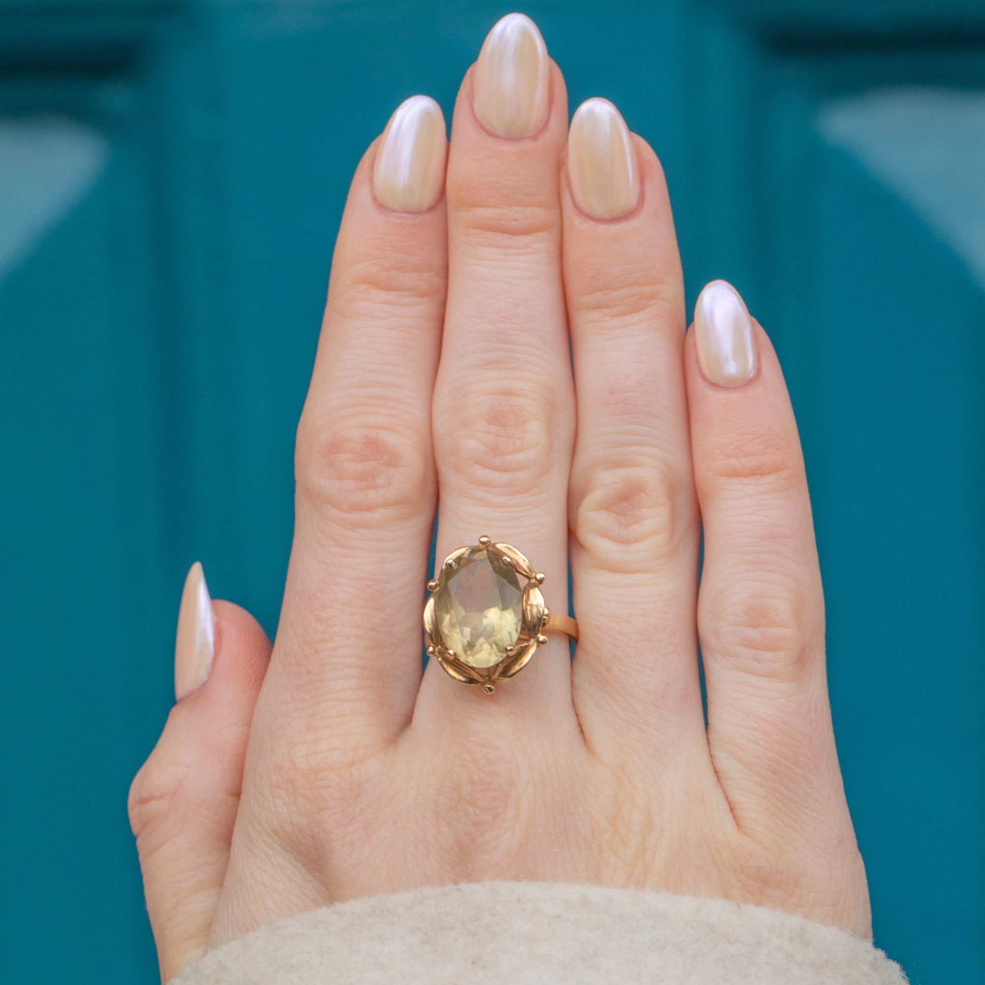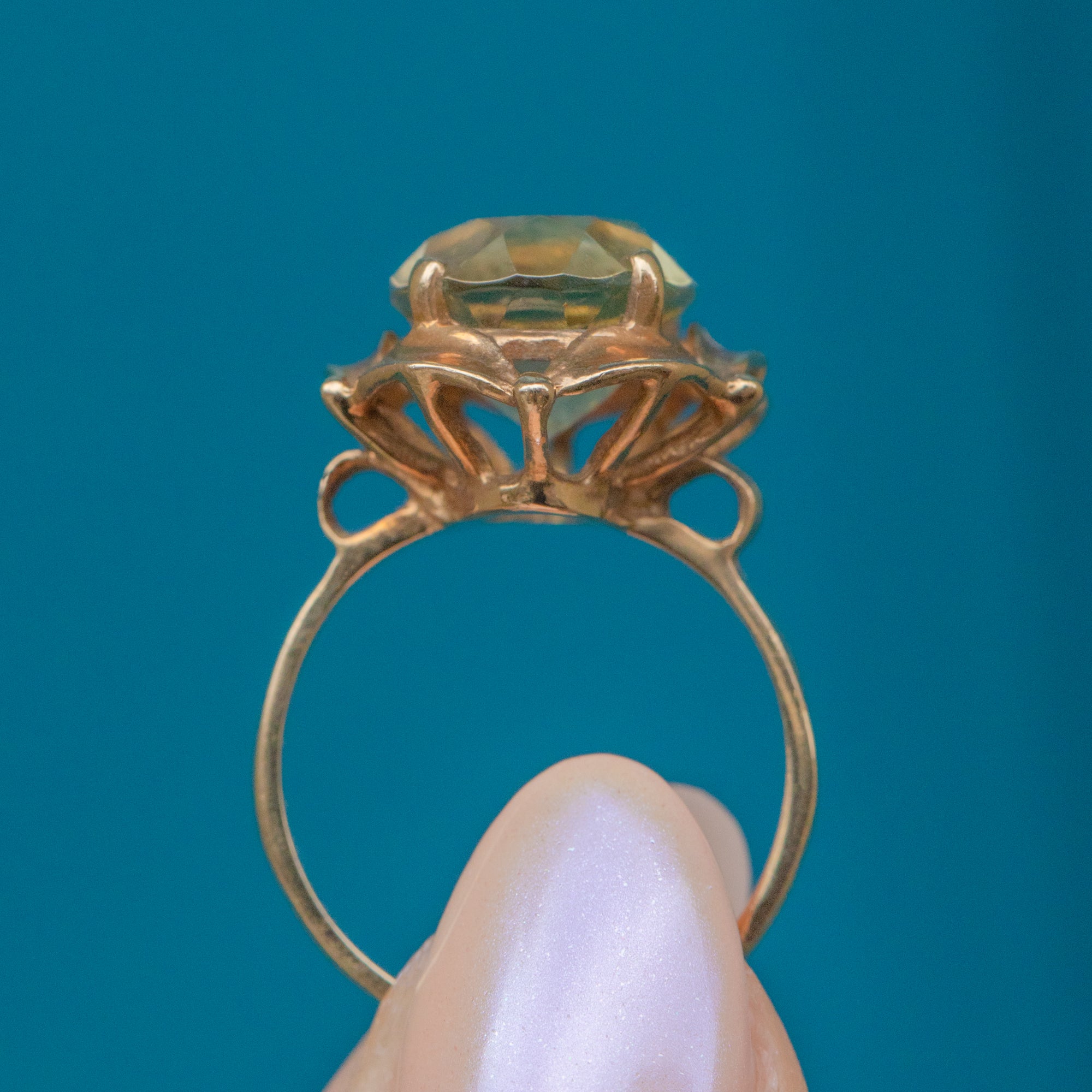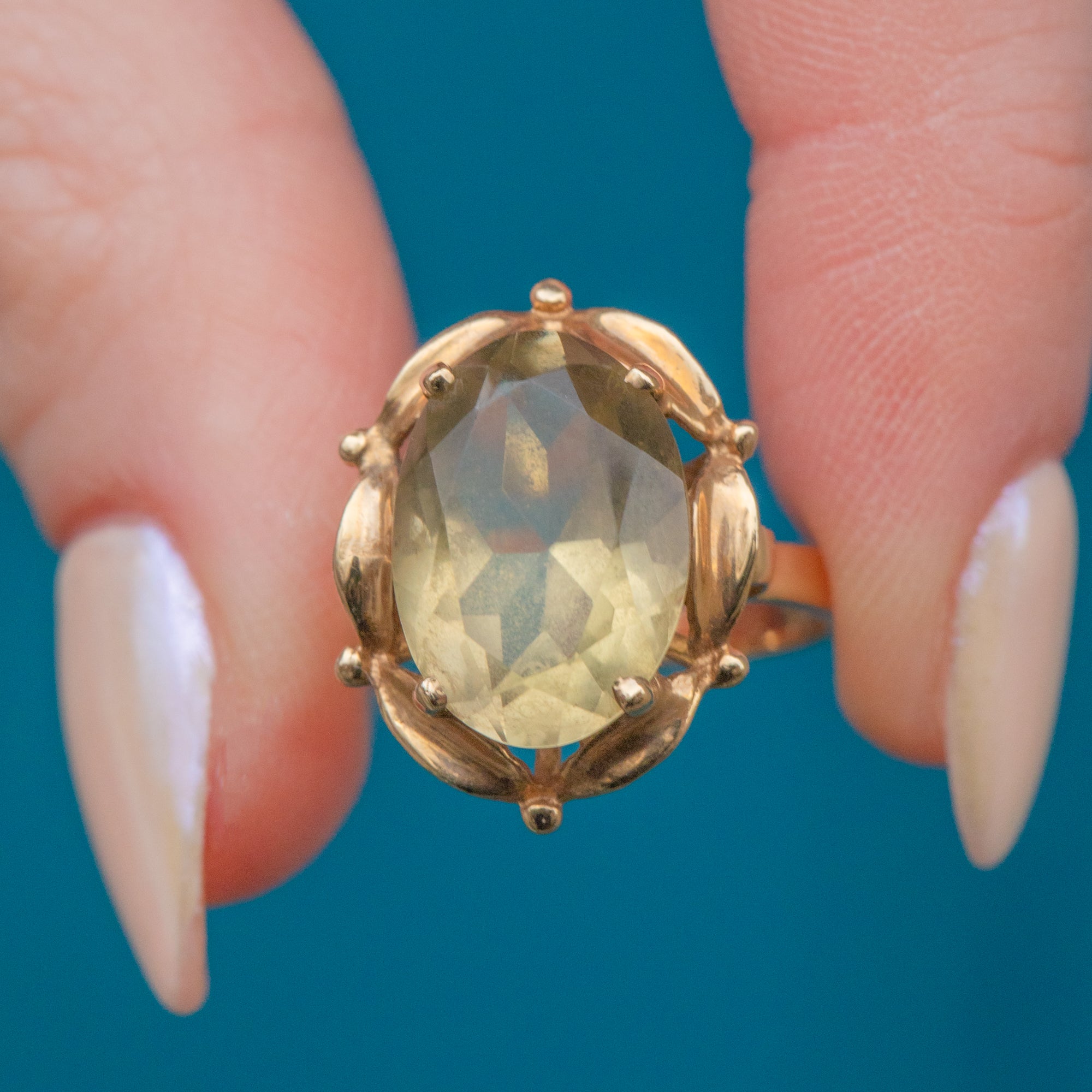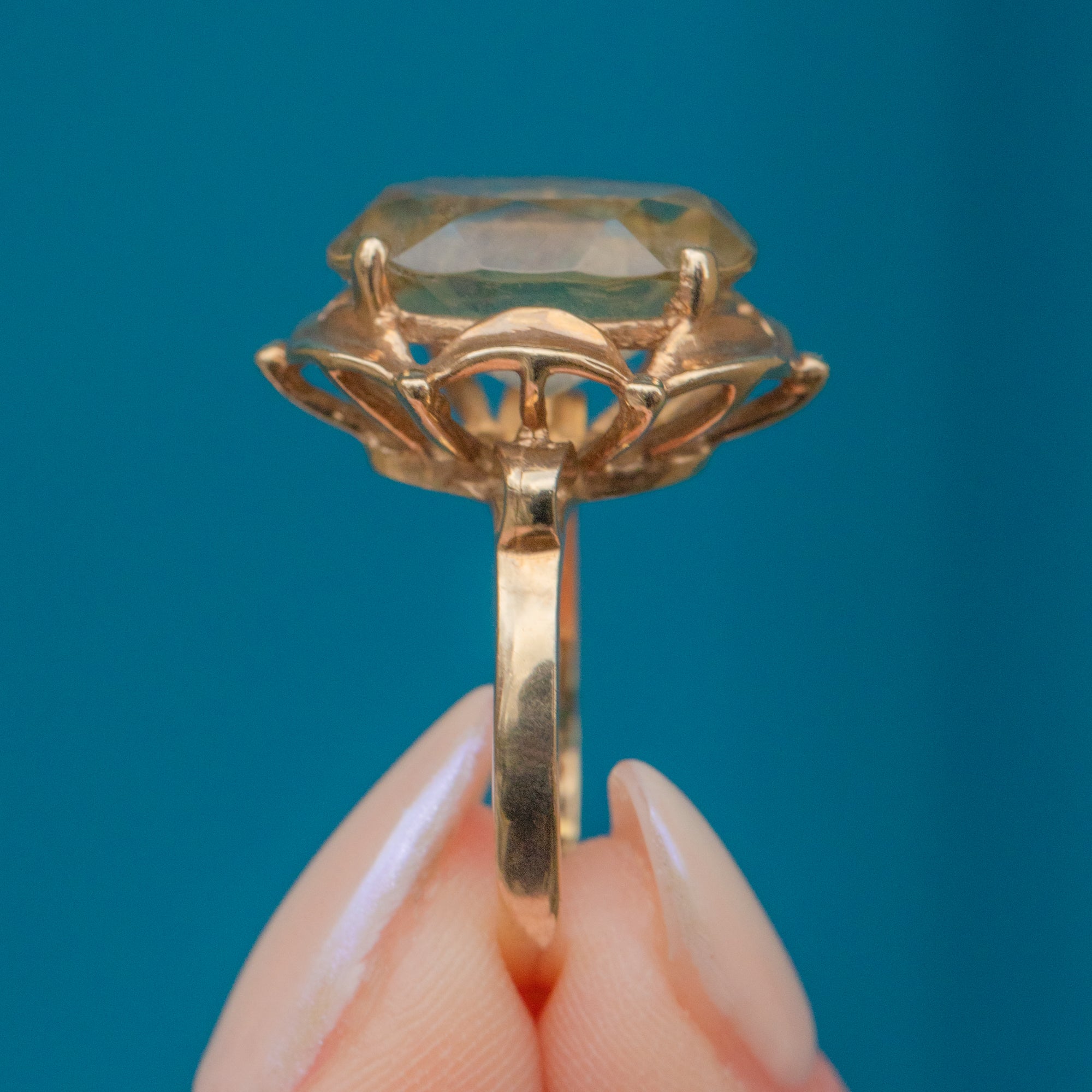 The lemony 4.90ct Citrine sits snug within a 9ct Gold basket, surrounded by a floral-inspired setting! This dress ring has great wear potential and is sure to elevate your ring stack.