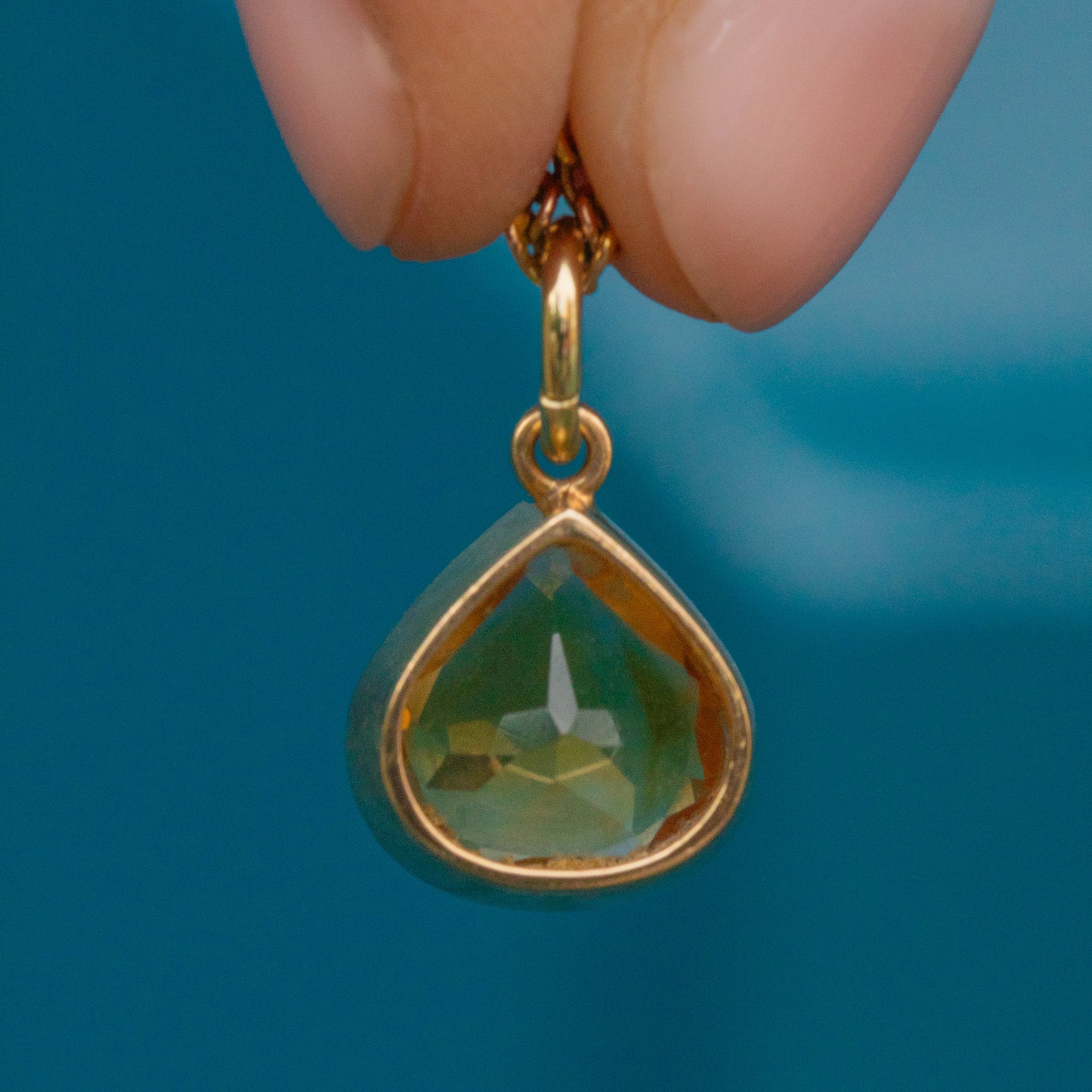 Bring sunshine to your everyday attire with this phenomenal Art Deco 9ct Gold Citrine pear drop charm! The mouthwatering 1.70ct Citrine catches the light in the most glorious way, with lemony hues glinting across the crisp-cut geometric facets.