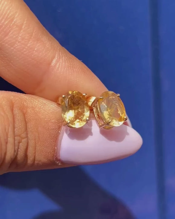 EXCELLENT. These 9ct Gold Citrine stud earrings are offered in excellent condition. The Citrines are securely held within their settings, free from nibbles or abrasions. The 9ct Gold is buttery and free from any dents. The butterfly backs allow a secure closure for you to wear them comfortably. With proper care and maintenance, these stud earrings will last for generations to come!