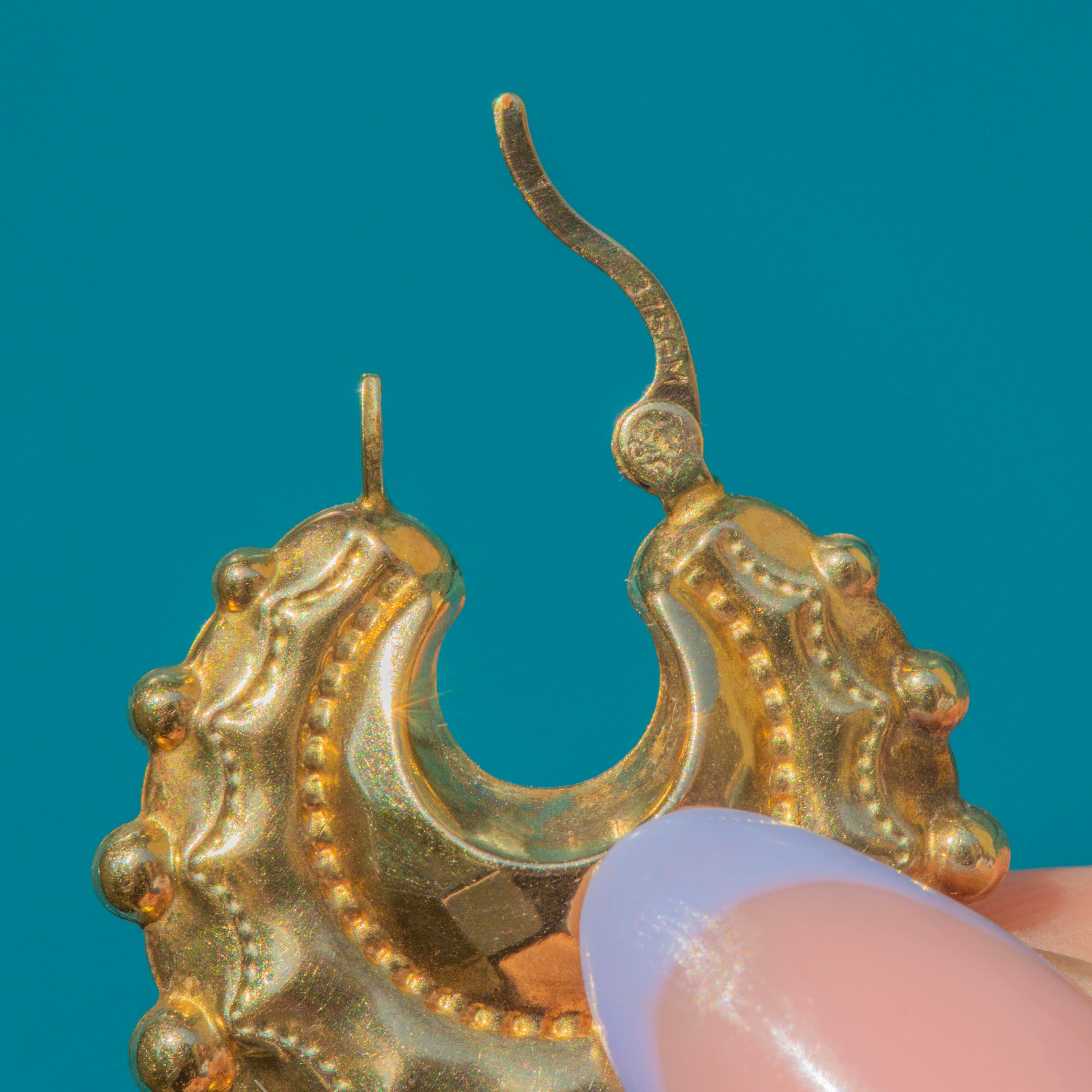 Crafted from rich 9ct Gold, these Creole hoop earrings are bold and eye-catching, with their unique design sure to impress. These vintage hoops will look gorgeous in the ear, and can be worn every day without a pull on the ear!