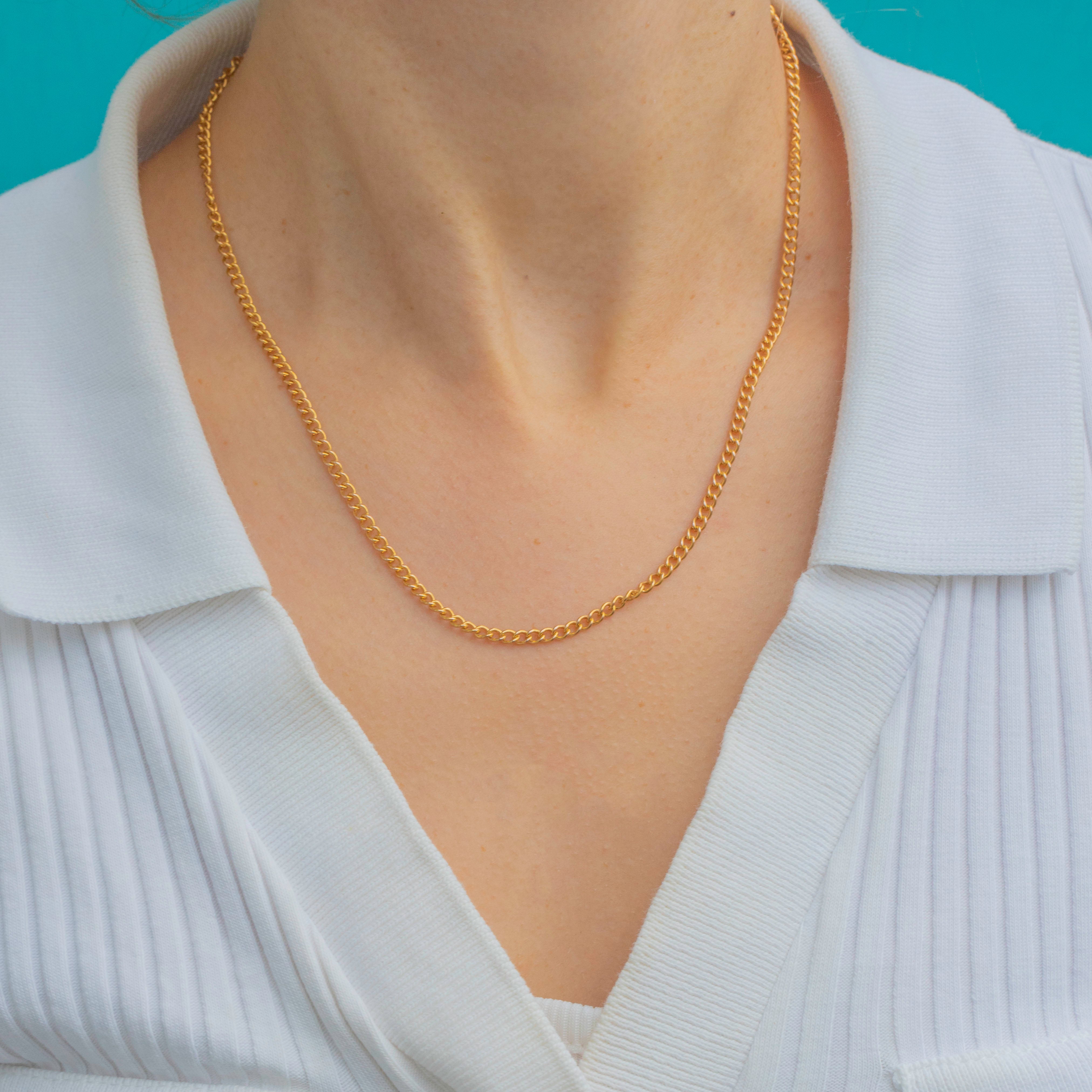 This classic 9ct Gold curb chain has a bright, refined finish that catches the light beautifully. The fine 2.5mm links give it a delicate yet polished look — perfect for layering with pendants or wearing alone for a touch of understated elegance.