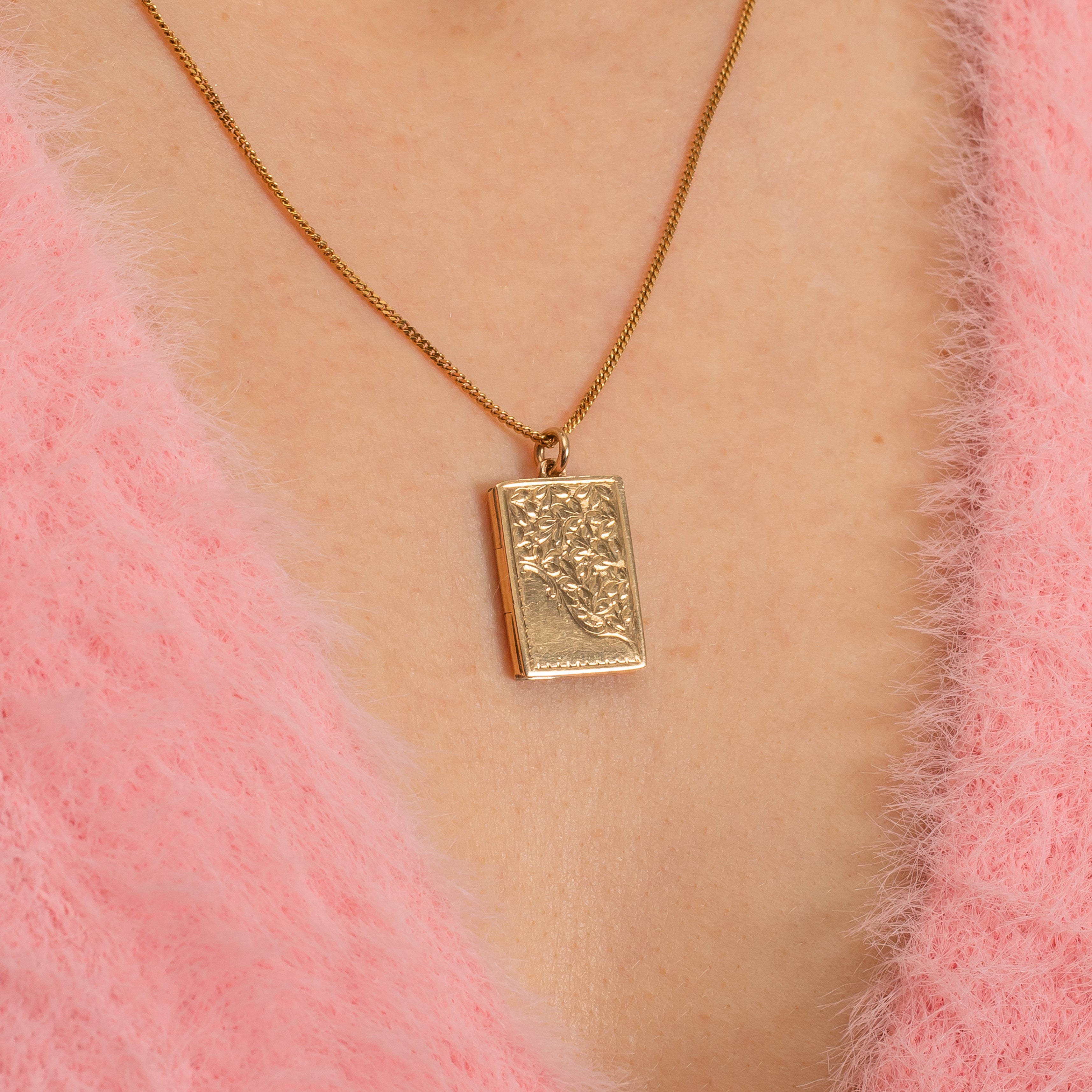 With sweet floral details sweeping across her front, this solid 9ct Gold engraved book locket will make a fabulous addition to your collection! Open up this pretty vintage locket and inside her you will find the perfect new abode for your most precious photograph.