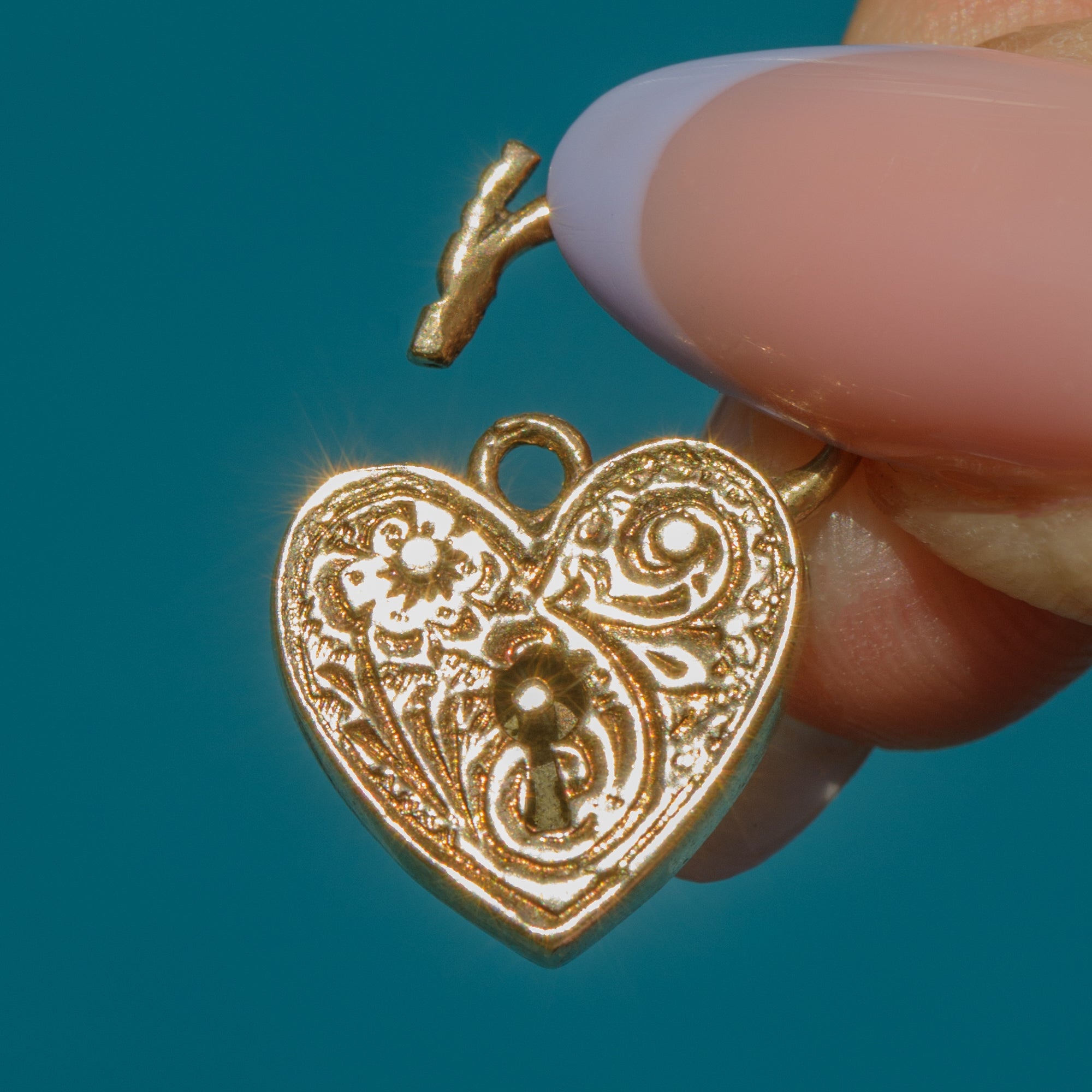 Symbolic of love and commitment, heart padlocks have been a favoured token of love since the Victorian era. With a fully functioning lever, this vintage Gold heart pendant can easily be styled with a Gold chain or bracelet!