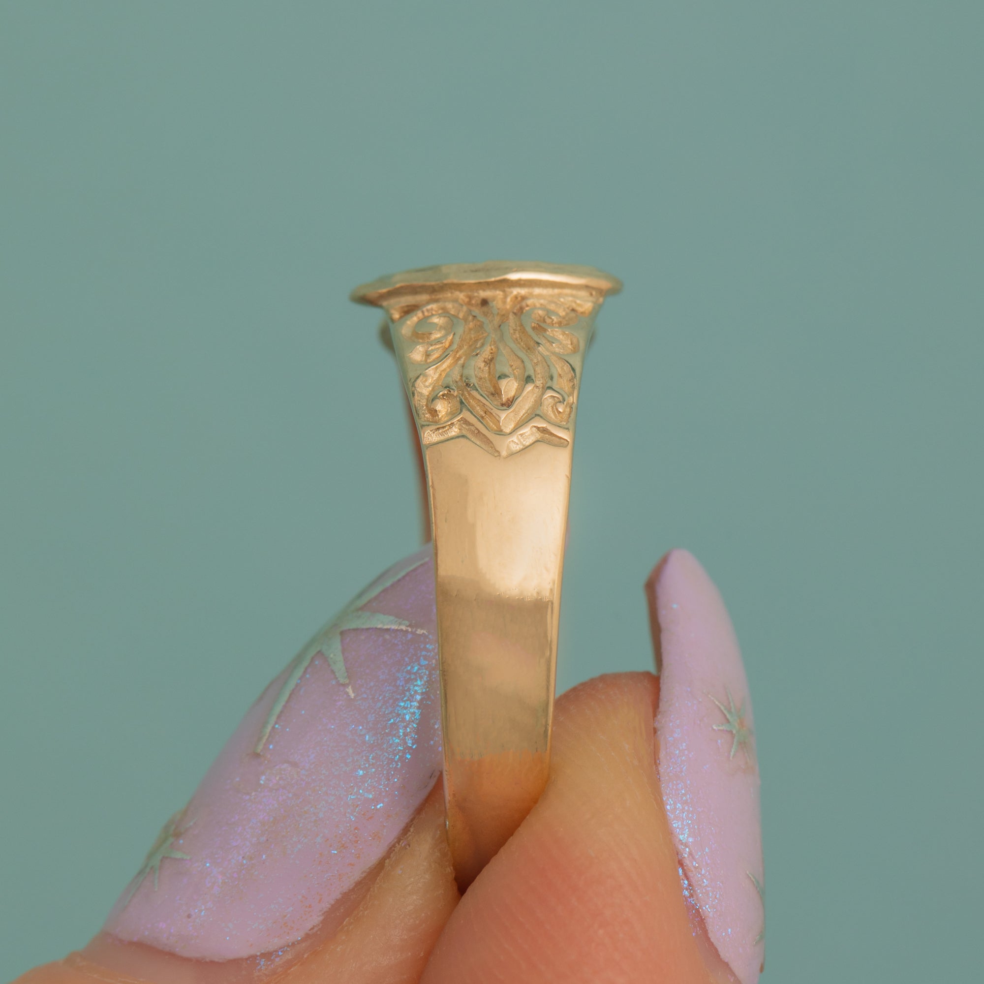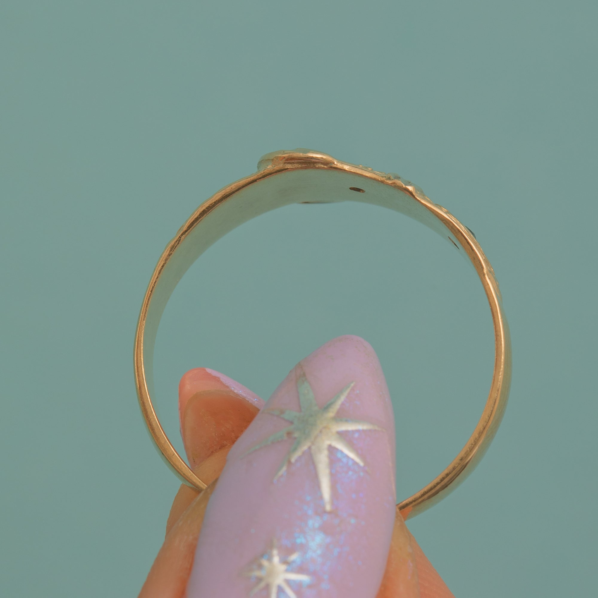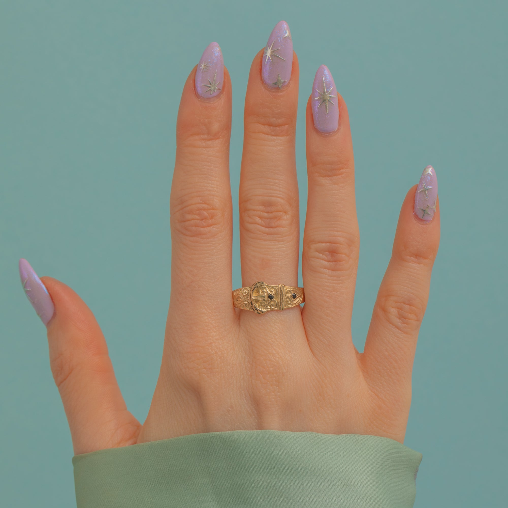 The tapered band is flattering on the finger and the low profile makes this vintage Sapphire ring perfect for everyday wear. With its sweet sentiment and gorgeous design, this vintage buckle ring would make the perfect token of love to gift your favourite person!