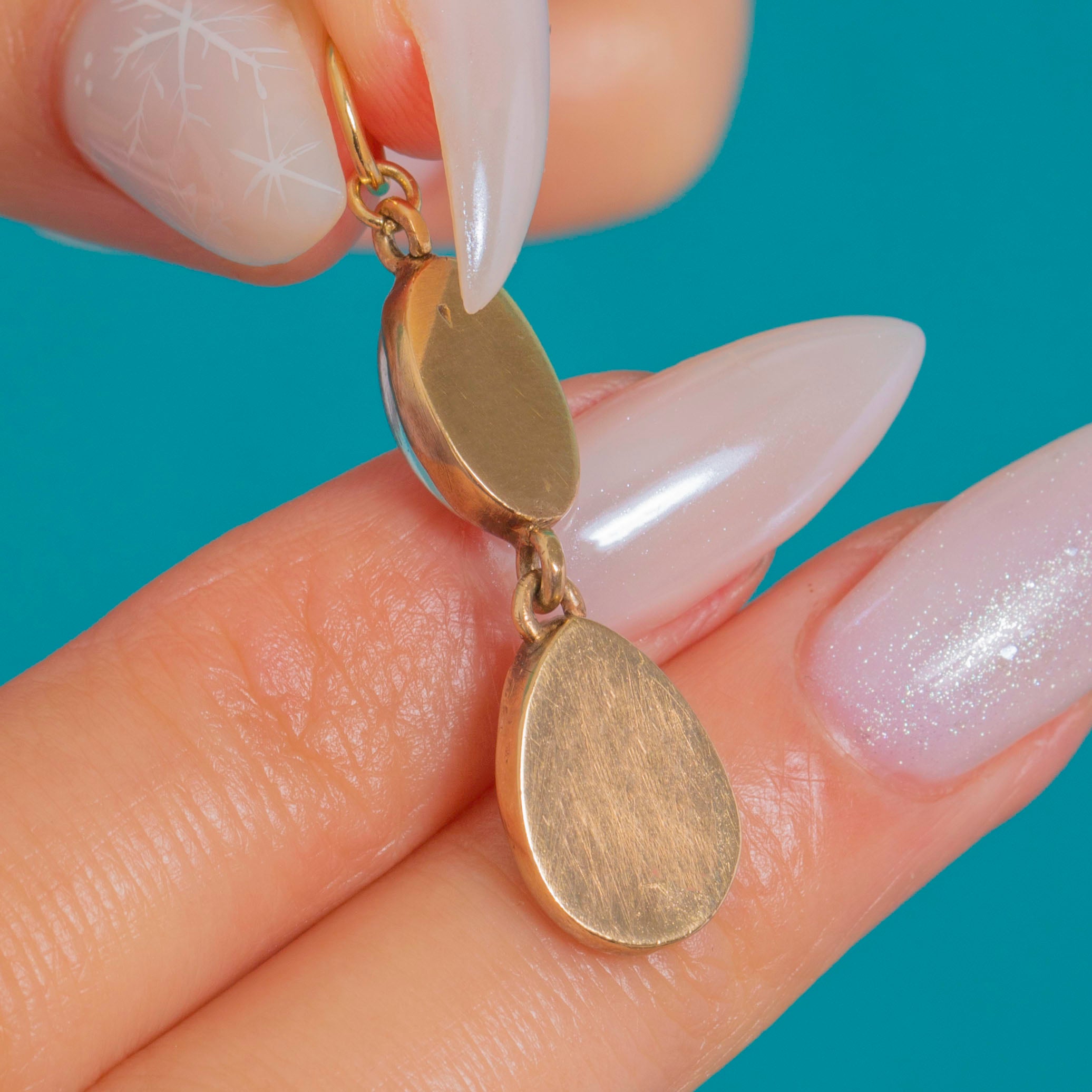 This elegant Victorian Moonstone pendant is crafted in warm 9ct Gold and features a beautifully balanced double drop design. The upper oval cabochon suspends a gently articulated pear-shaped Moonstone, allowing the pendant to move fluidly with the wearer.