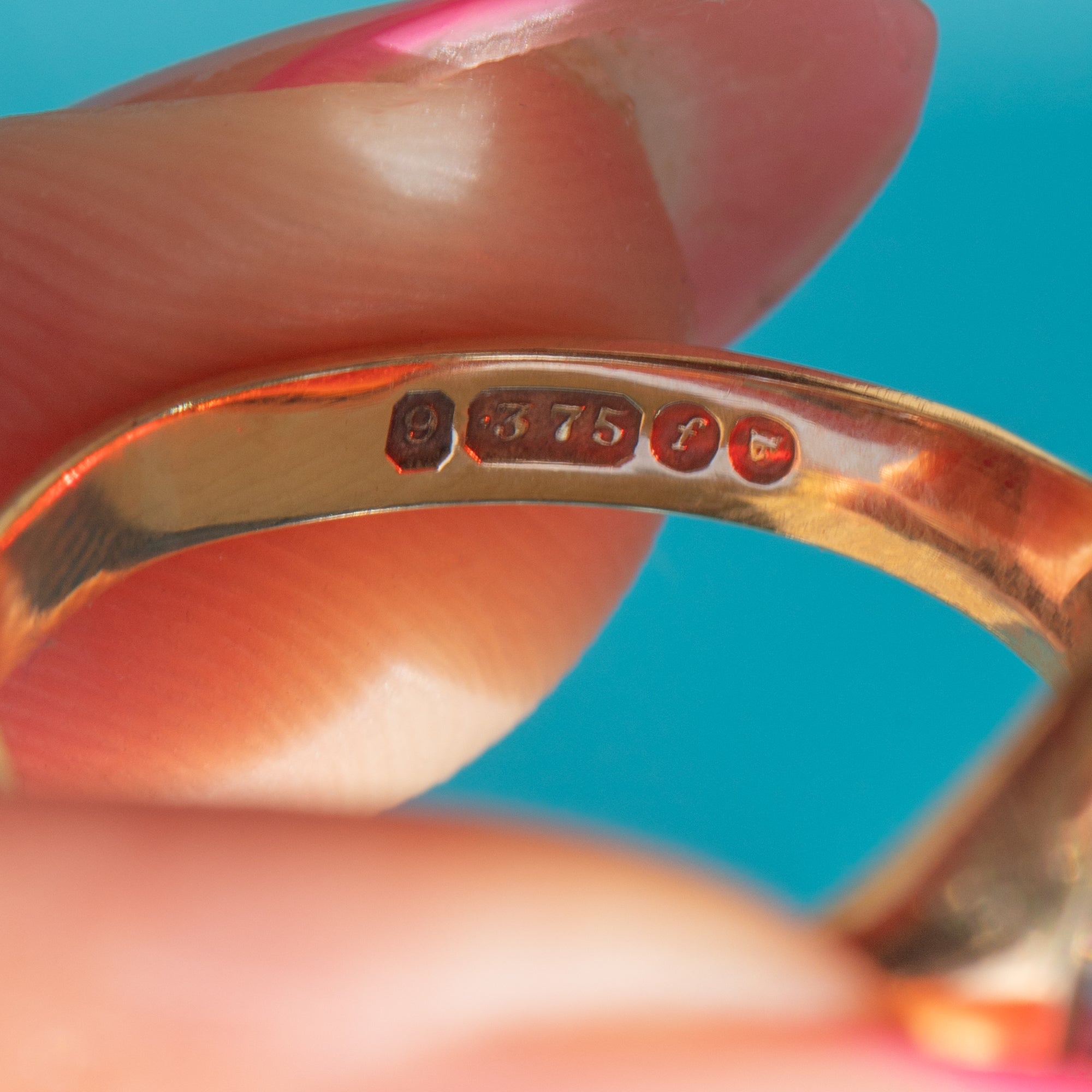 HALLMARKS: FM Makers mark, 9, .375, London Leopard's Head, Date letter f for the year 1961.