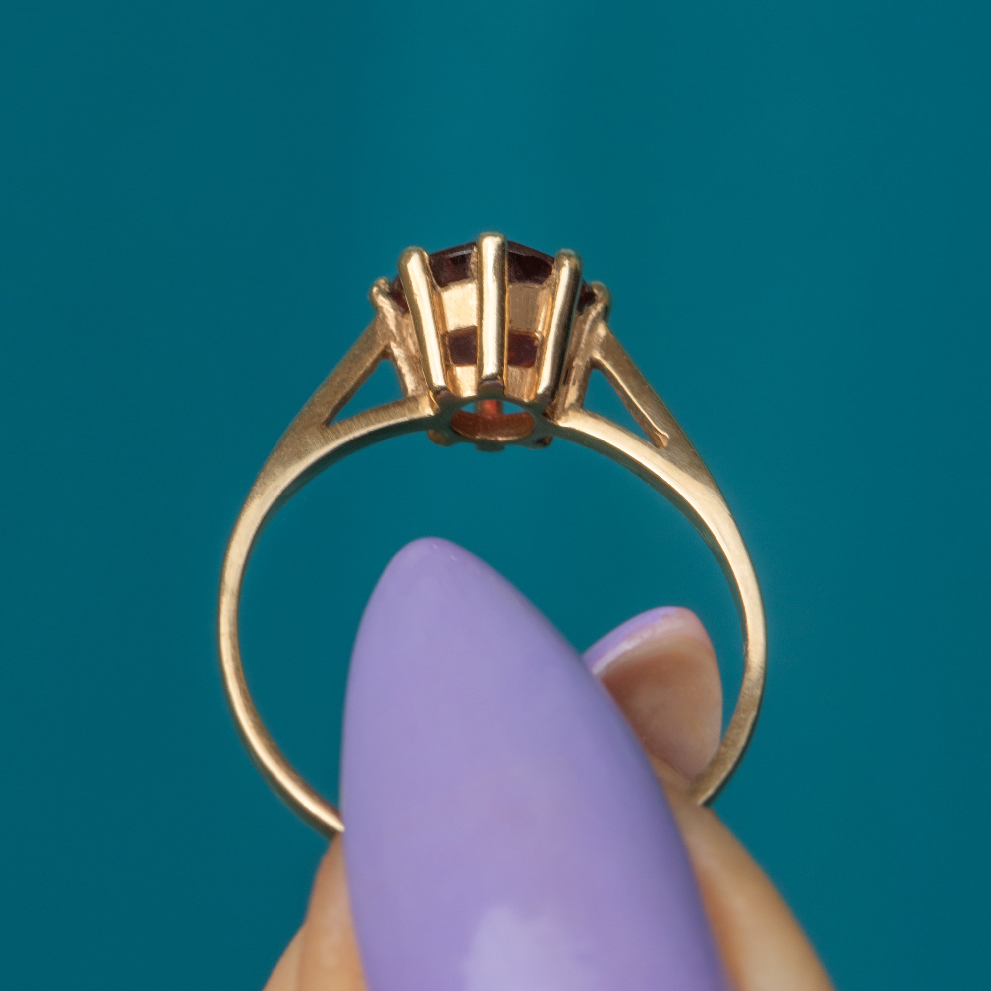 MATERIALS: Tests as 9ct Gold throughout, Garnet (0.85ct).