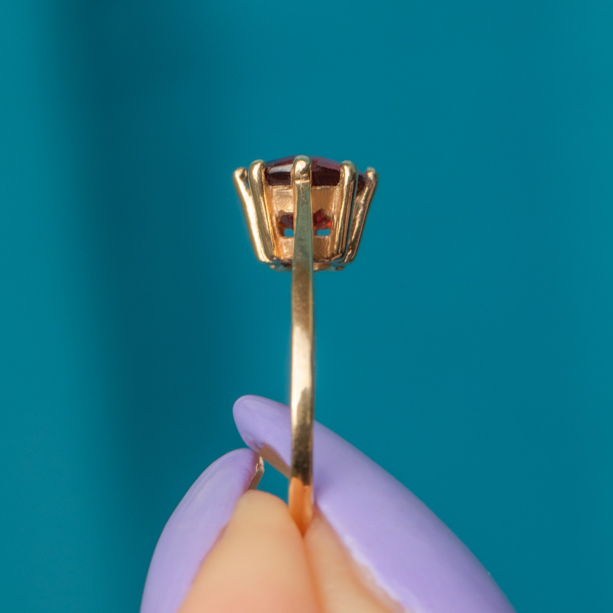 Crafted from sumptuous 9ct Gold, this Garnet solitaire ring is not short on splendour!