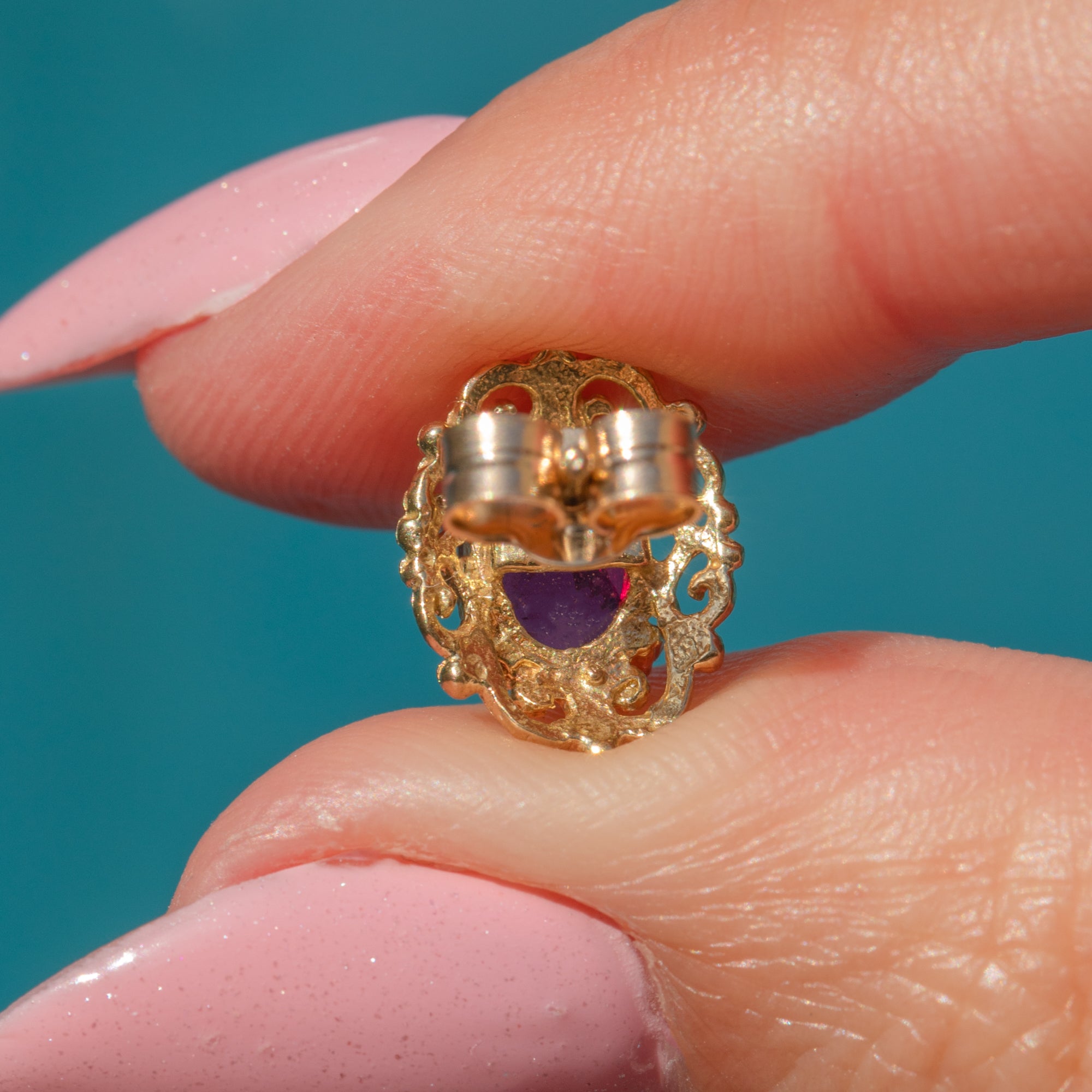The intricate openwork setting is crafted from bright 9ct Gold, giving the earrings a delicate, vintage feel. Petite yet full of character, these earrings make a perfect statement piece, adding a touch of timeless charm to any look, day or night.