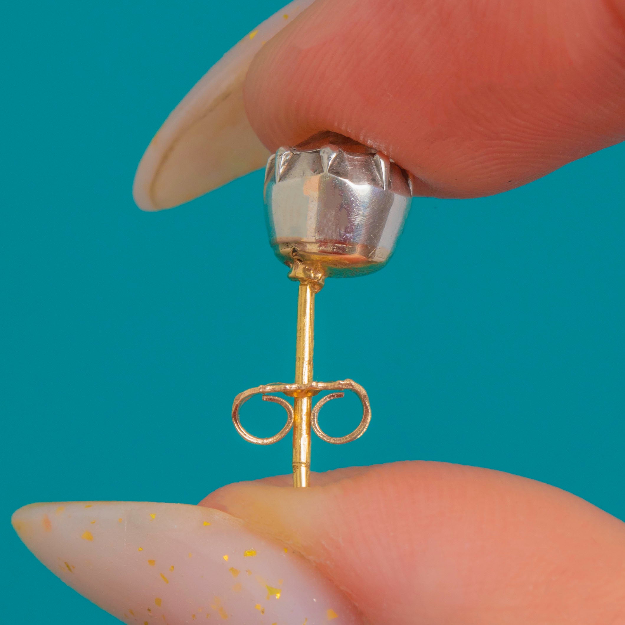 Crafted in 9ct Gold and Silver, the two-tone construction enhances the bright, colourless Paste while keeping the look elegantly minimal. A graceful choice for pierced ears, they bring a whisper of antique charm to any ensemble.