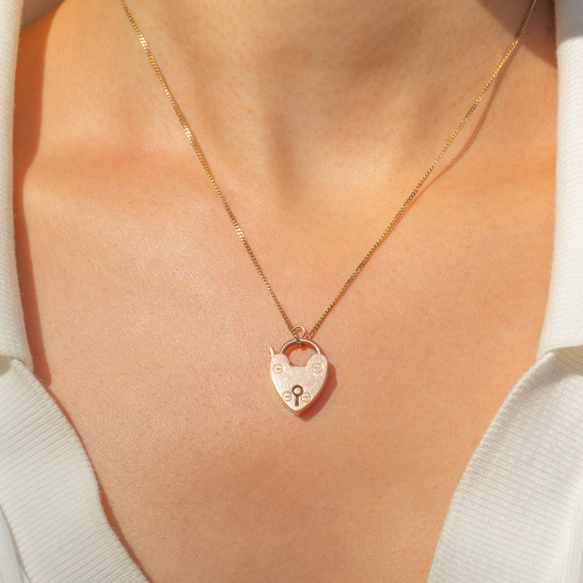 A sweet mid-century take on the classic heart padlock, crafted in warm 9ct Gold. The front is sleek and minimalist, punctuated by a keyhole motif and four neat slotted “screw-head” details for a subtle utilitarian edge. Petite yet impactful, it brings a whisper of romance to any look.