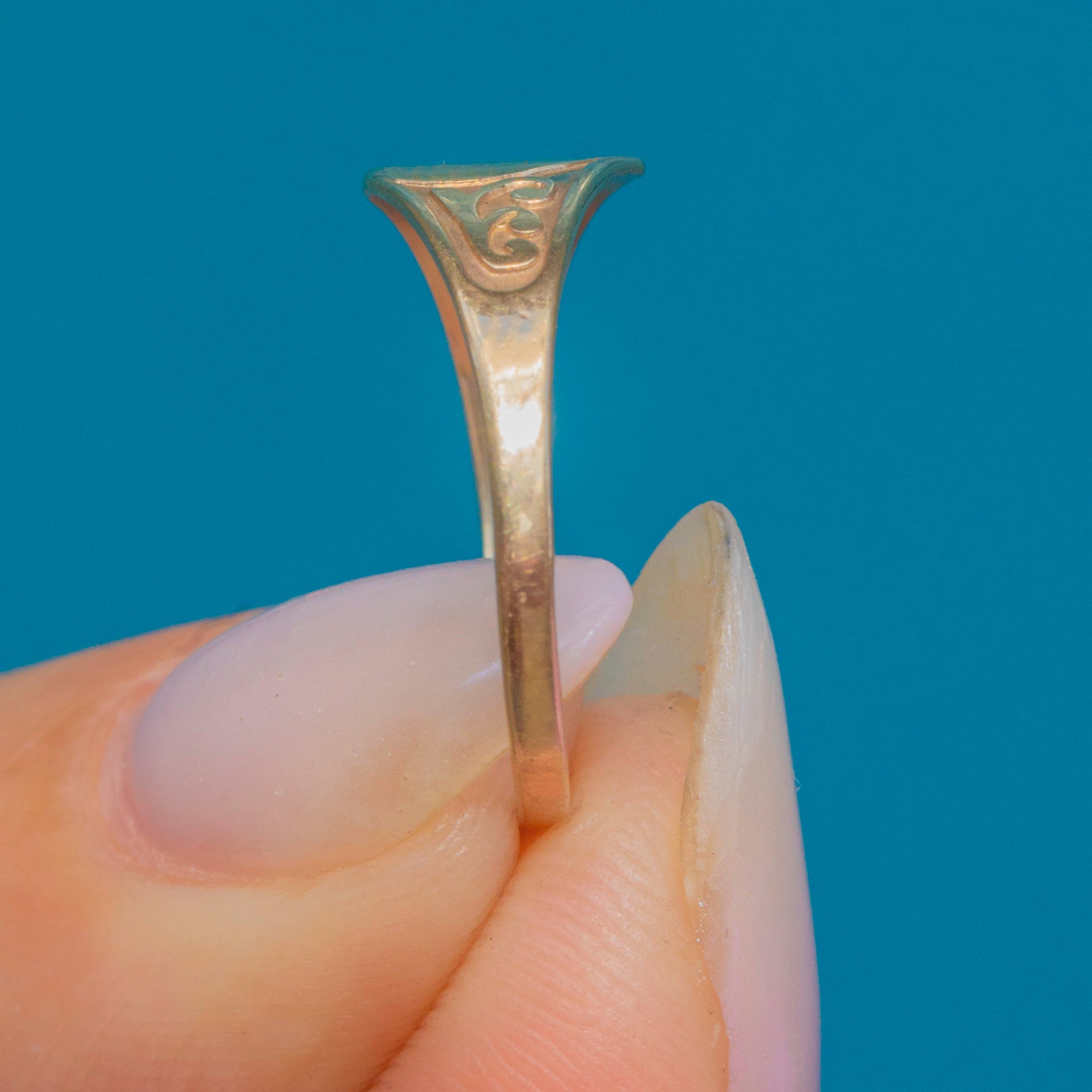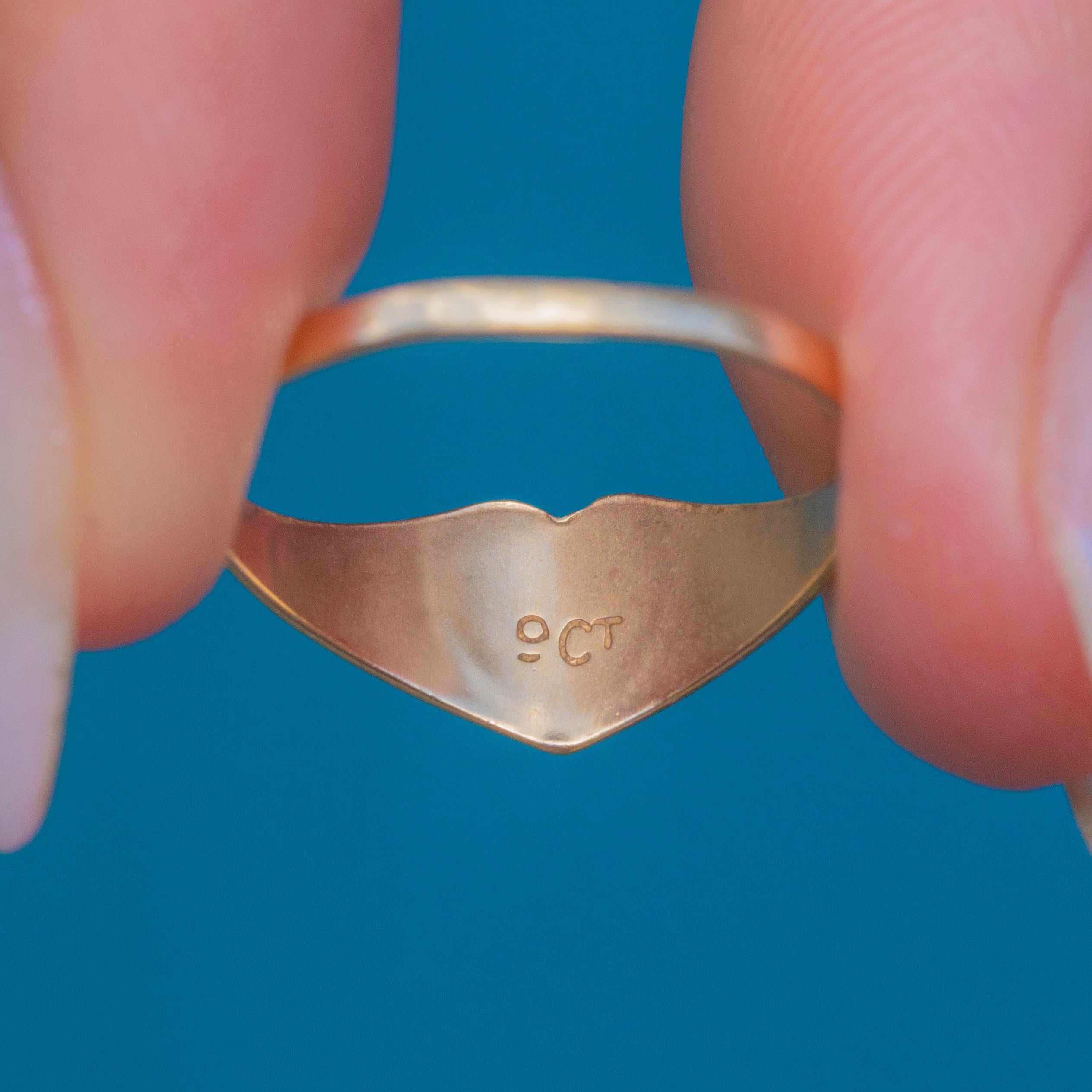 This adorable vintage heart signet ring is a dainty delight! With a sweet heart centre decorated with engraved details, this glossy slab of Gold is a unique signet ring perfect for everyday wear.