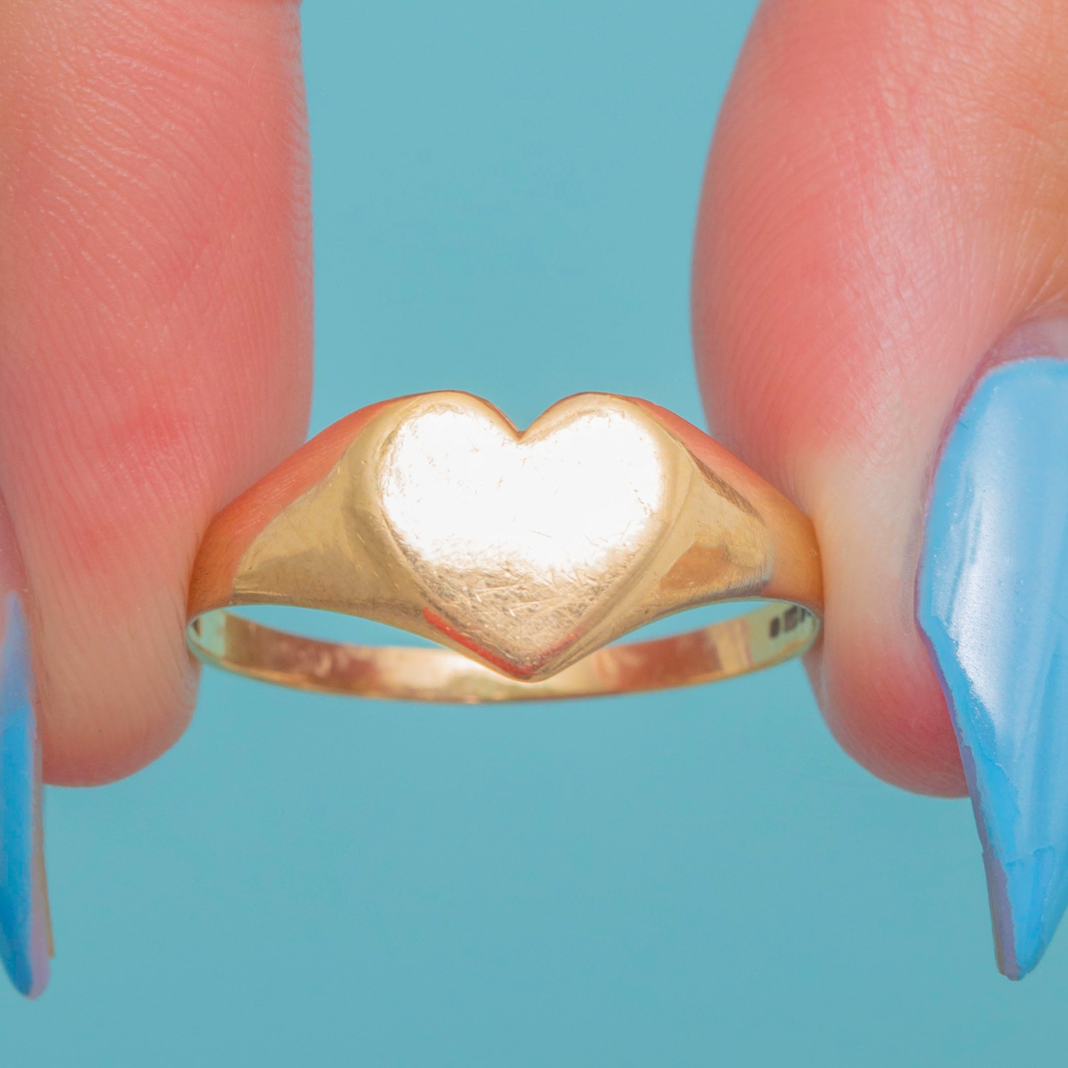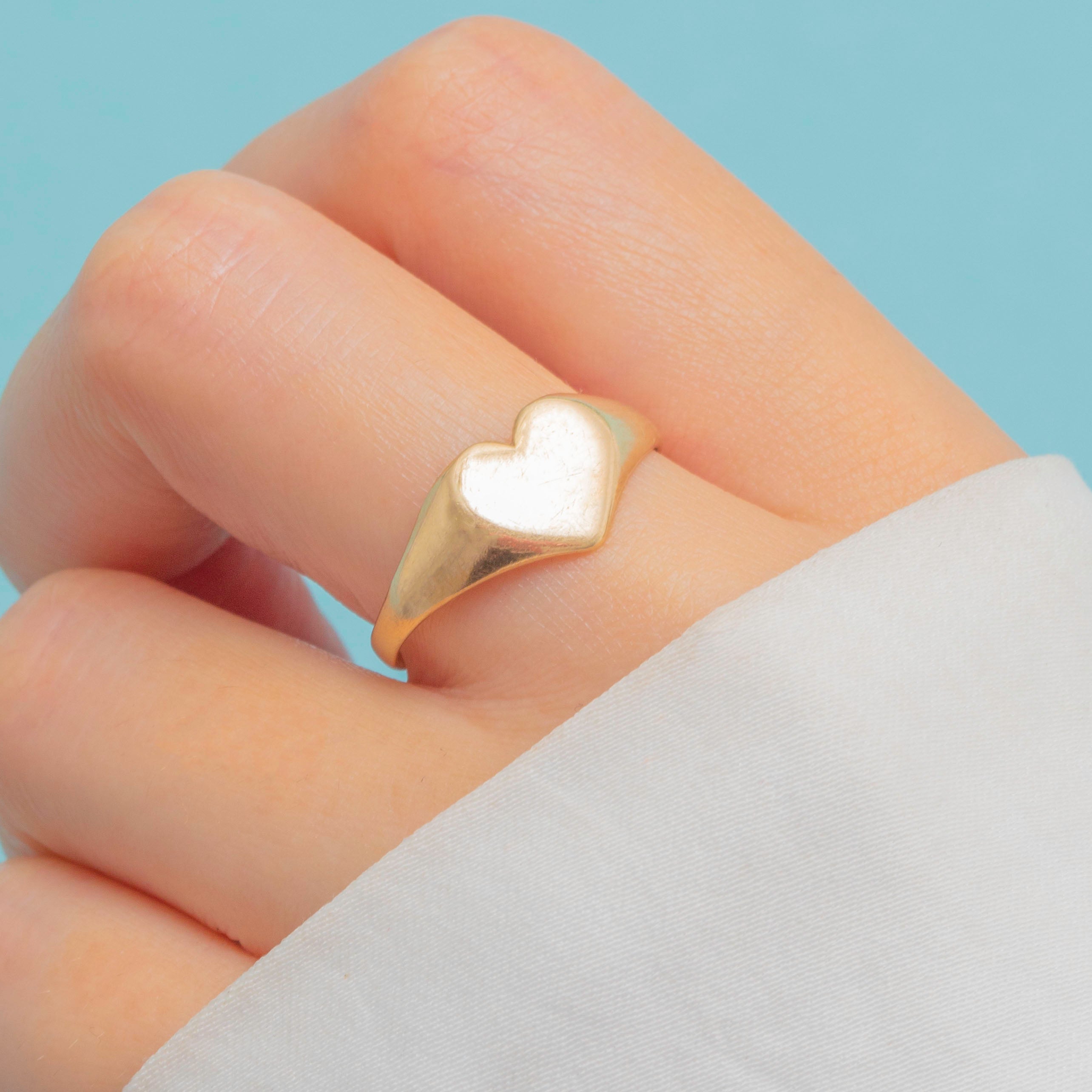 Its signature signet style has a flat profile that makes it ideal for stacking alongside your other golden goodies and, with an adorable heart shaped face, it radiates romantic charm!