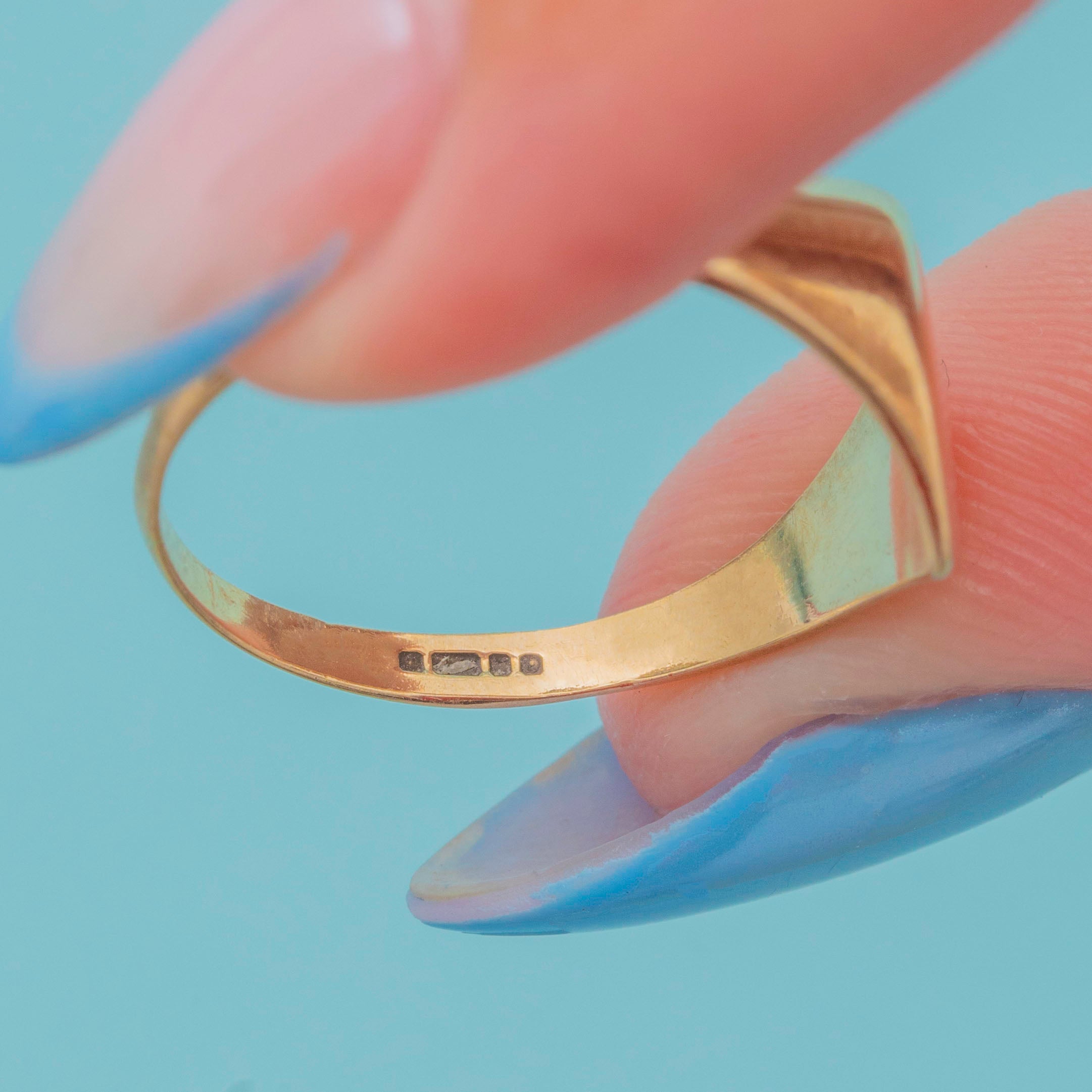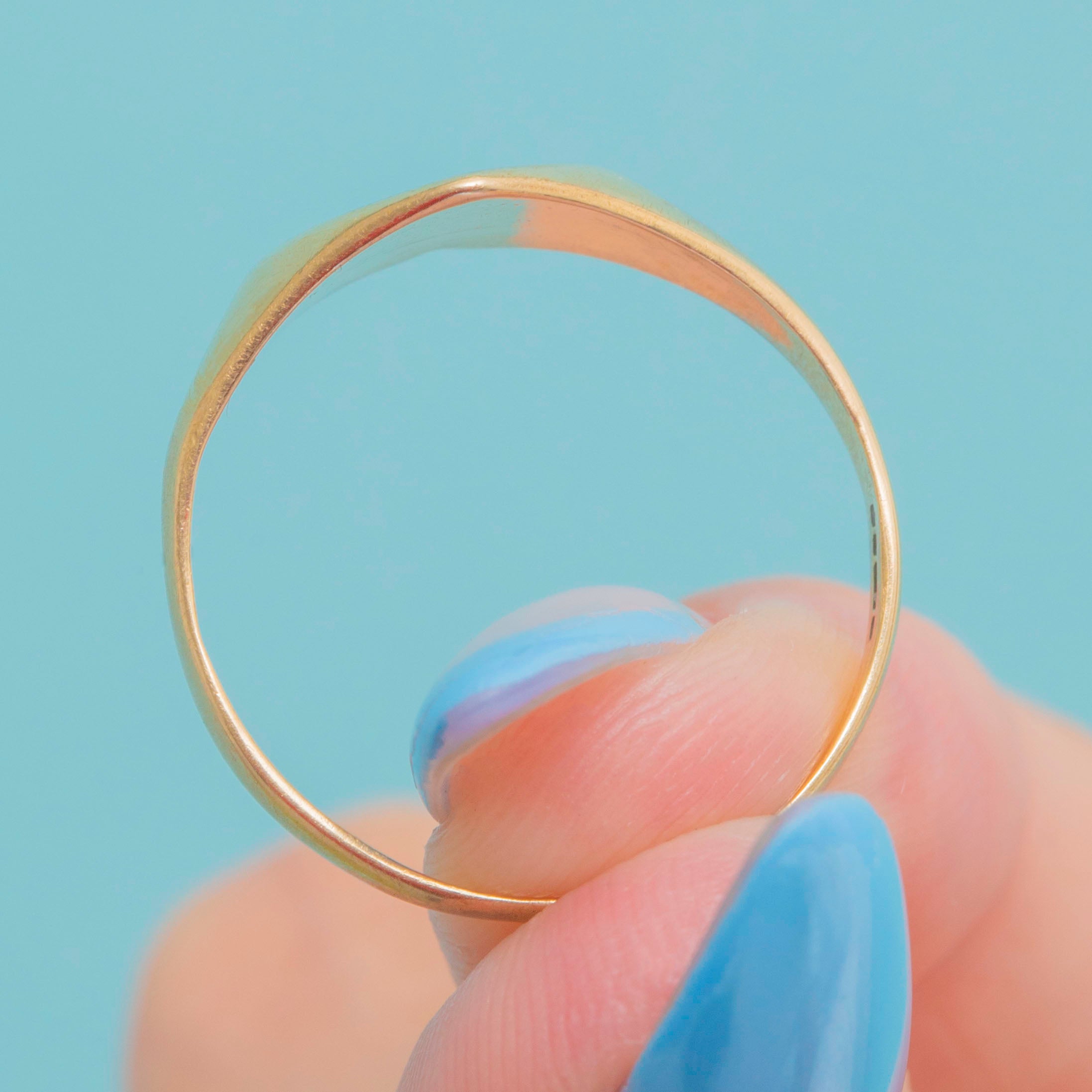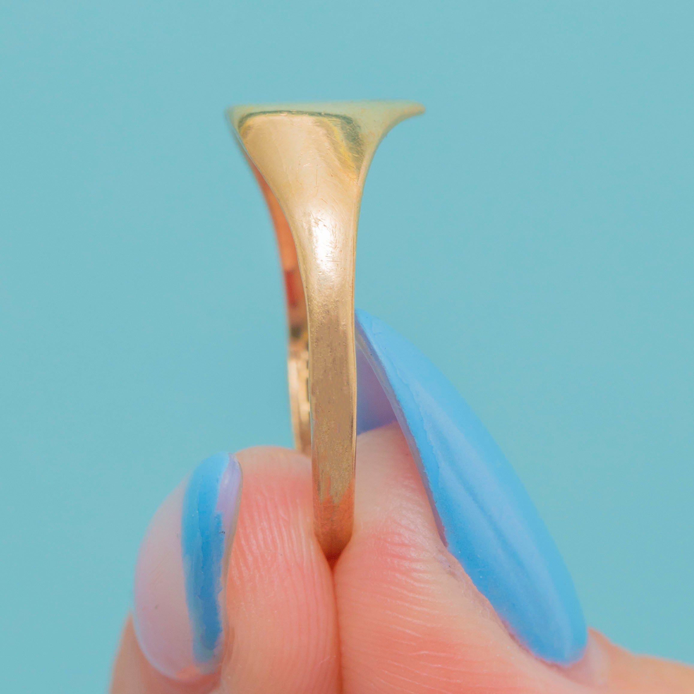 Crafted entirely from bright and glossy 9ct Gold, this vintage signet ring is fully hallmarked and will add a gorgeous flash of Gold to your attire.