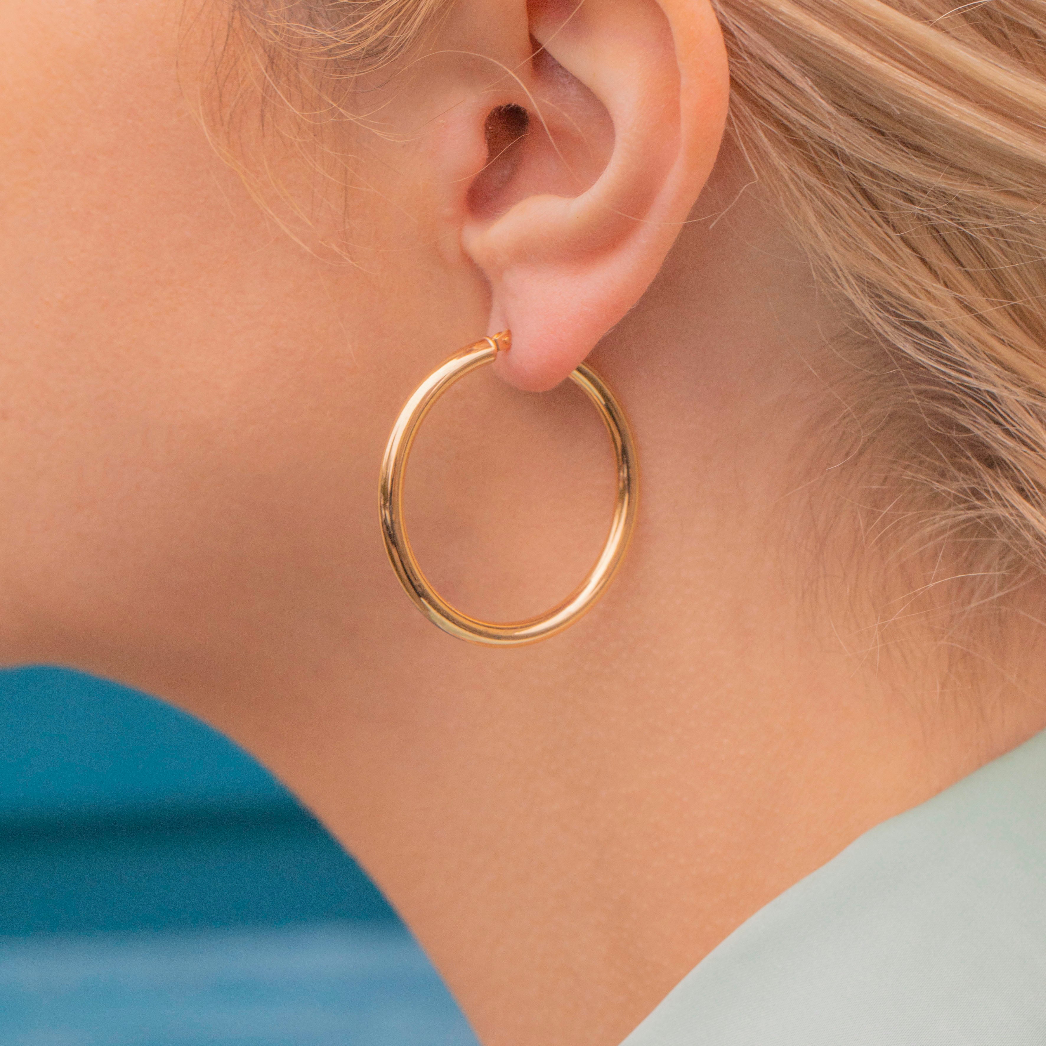 The perfect size to make an impact and lightweight enough for regular wear, these mid-century vintage Gold hoops will quickly become your grab-and-go pair!