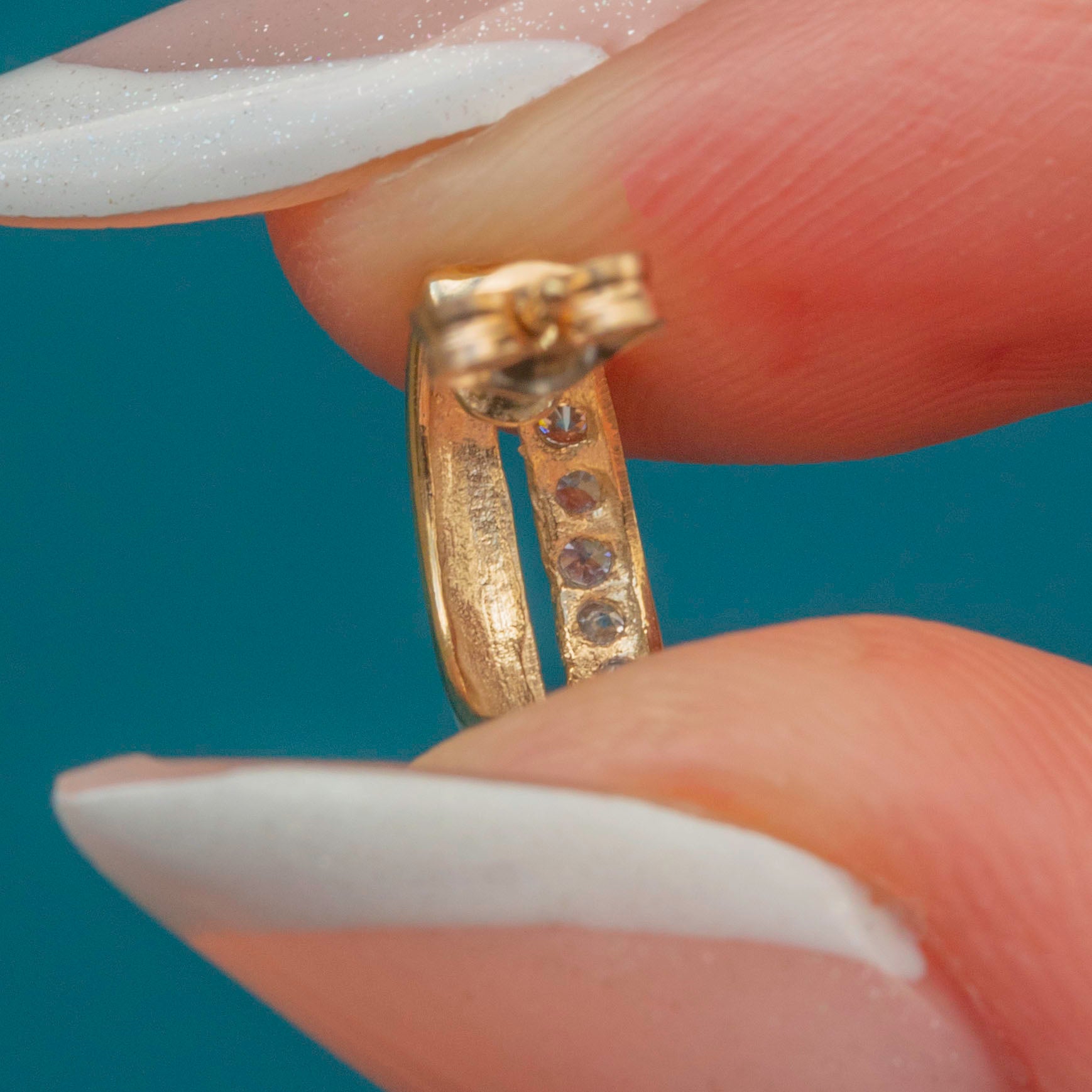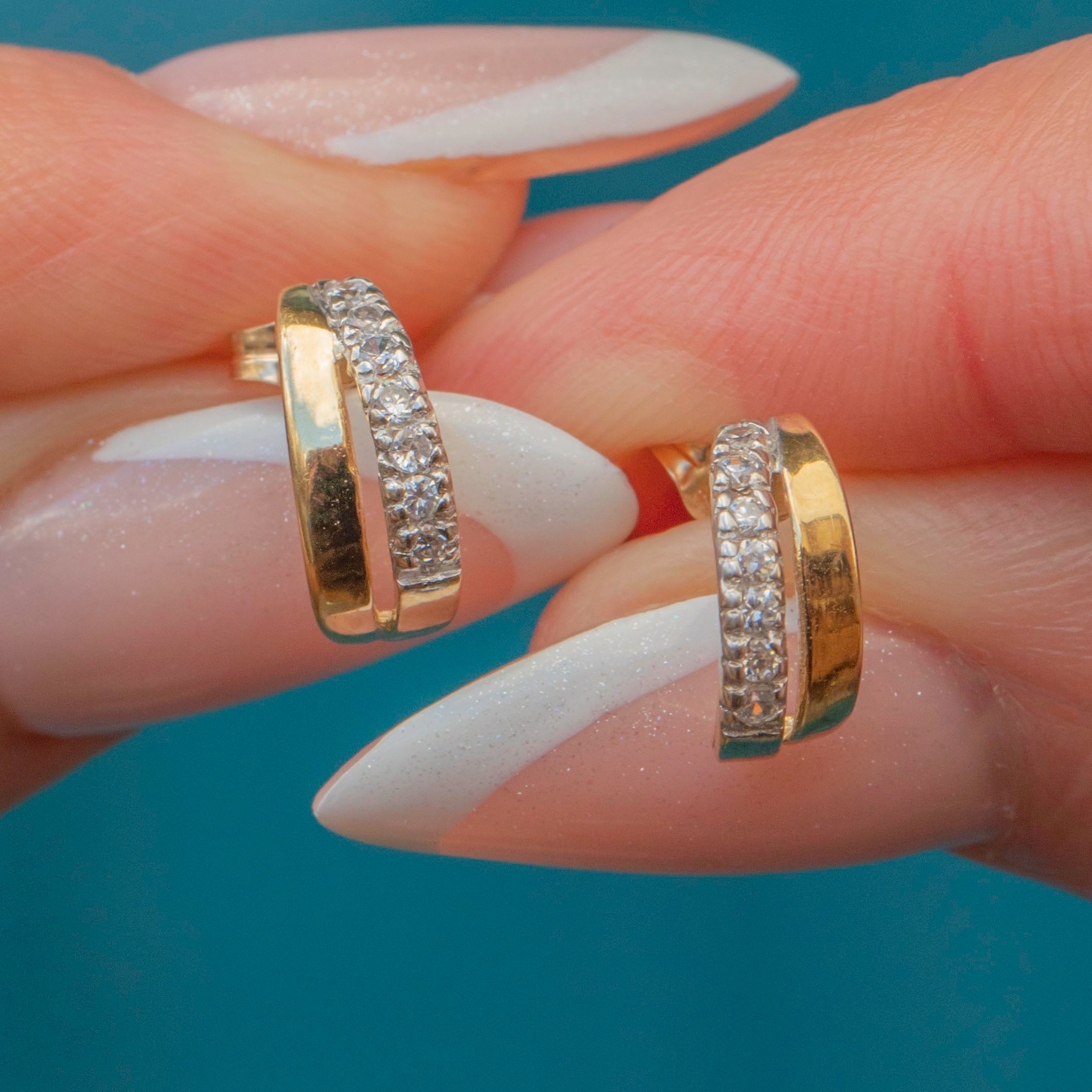 EXCELLENT: These 9ct Gold Cubic Zirconia huggie earrings are in excellent condition! With a sturdy form and no damage to note, they are fully functioning, with each Cubic Zirconia securely held in place. With easy and secure butterfly backs, there is not much more you could want from a pair of earrings!