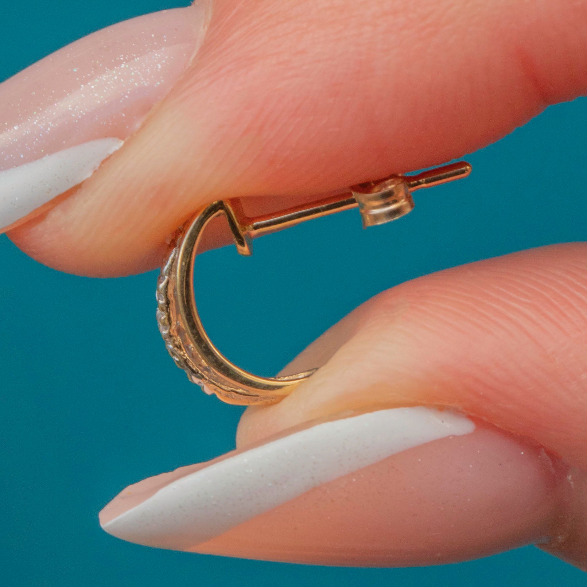Encrusted with Cubic Zirconia adding a subtle sparkle, this elegant duo has it all. With a secure earring fastening, you can wear these Gold huggie earrings with the utmost confidence!