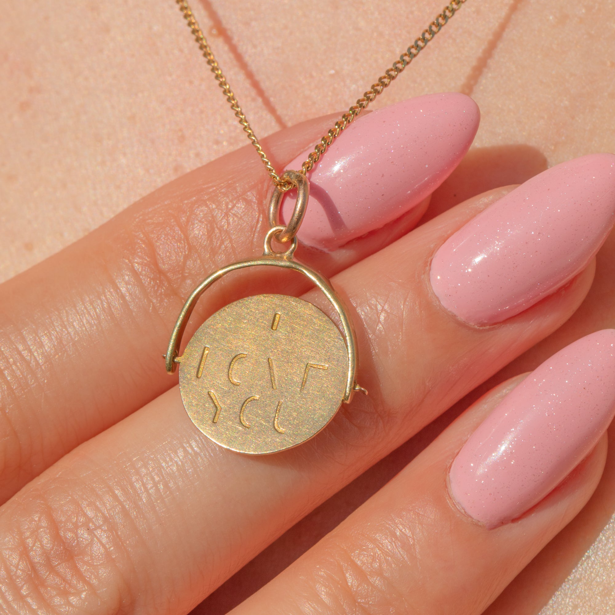 EXCELLENT: This 9ct Gold "I Love You" spinner charm is in excellent condition, with a rich golden hue that adds warmth and character. The engraved message is crisp and clear, and with a secure jump ring, she's a meaningful and elegant piece that can be cherished for years to come!