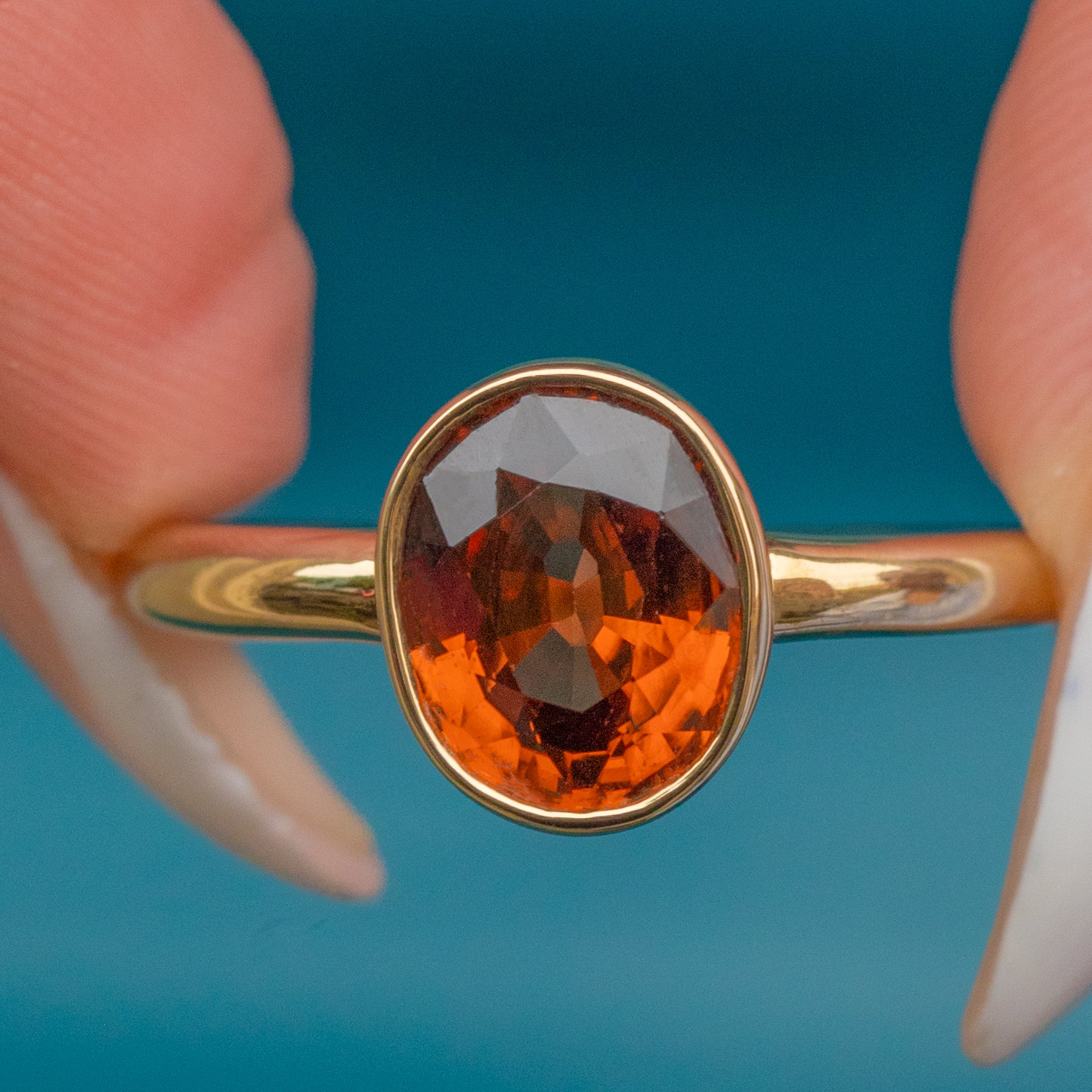 EXCELLENT: The Imperial Topaz is free from chips or abrasions, with a bright and lively colour. The Gold band and setting are in superb condition, retaining their polish with minimal signs of wear.