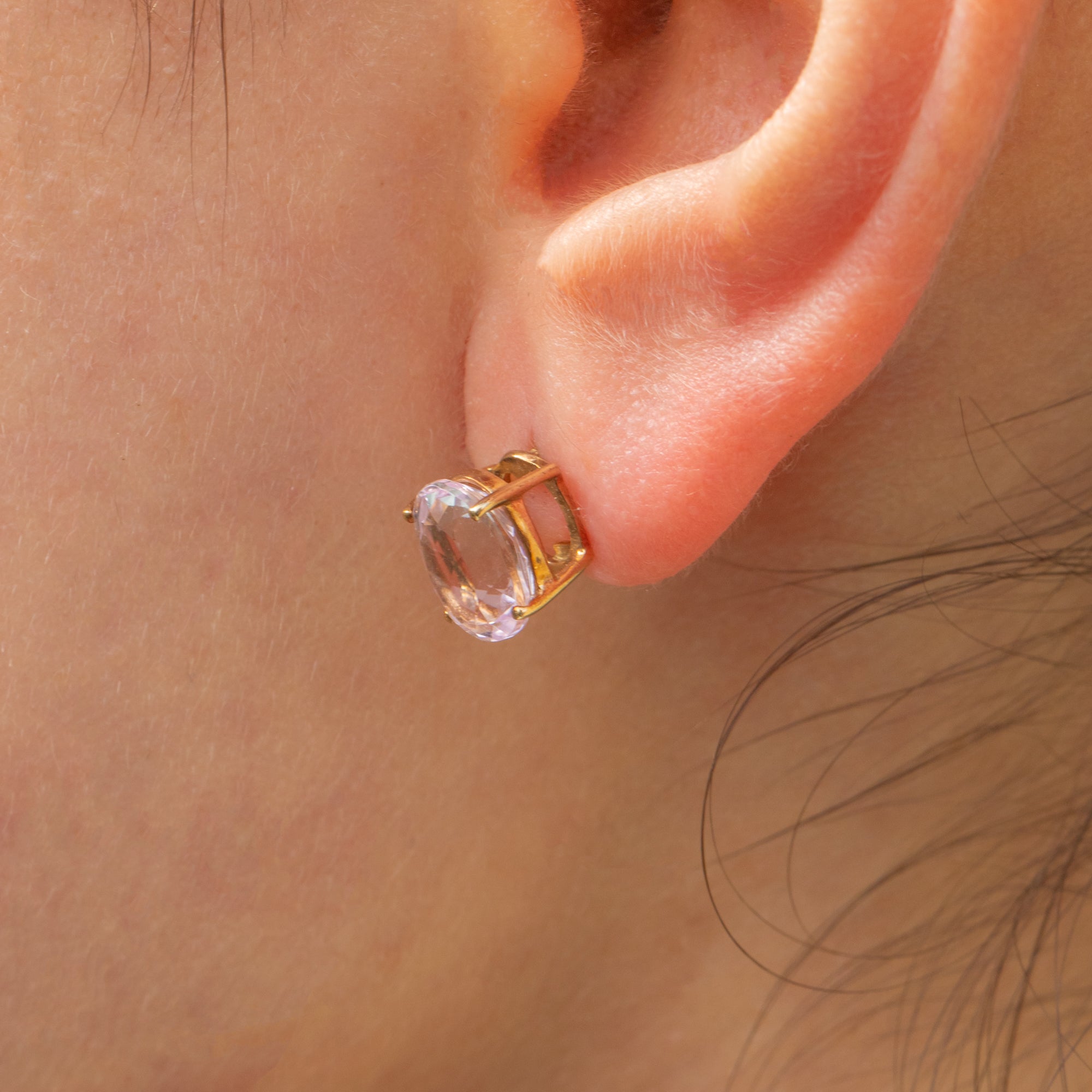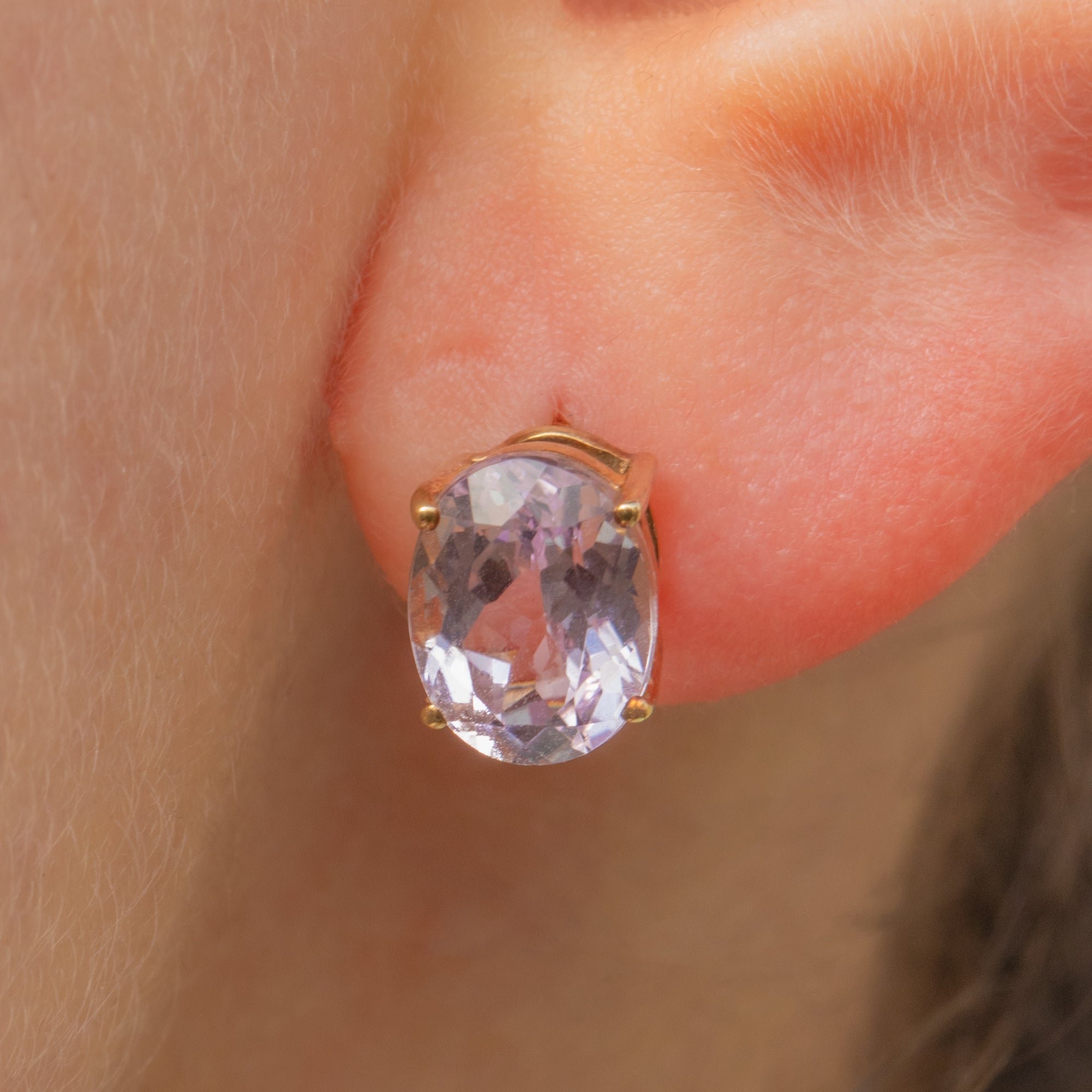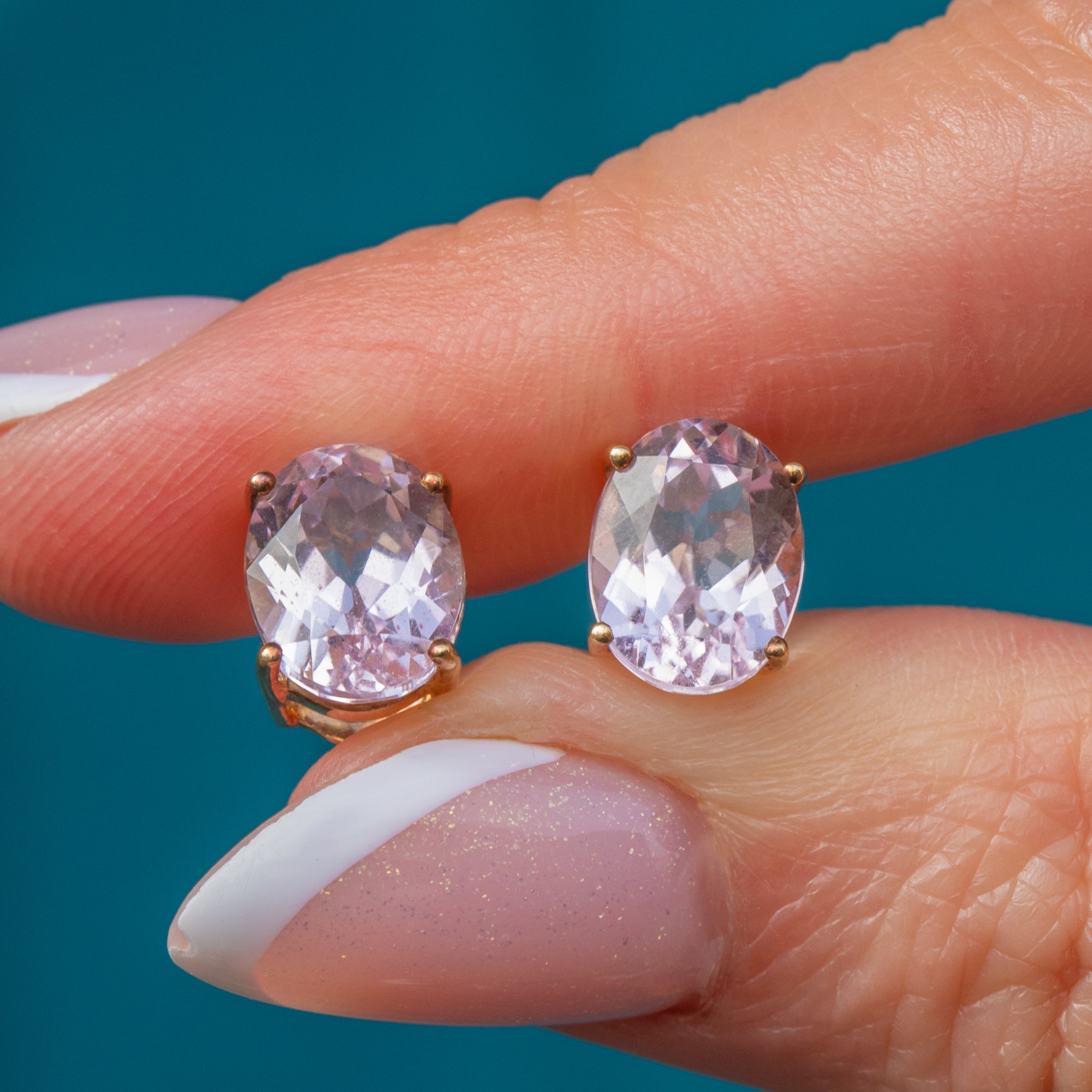 The large oval-cut Kunzites will provide wonderful coverage for your lobes and are held proudly in a double basket setting that allows the light to pour through from every angle!