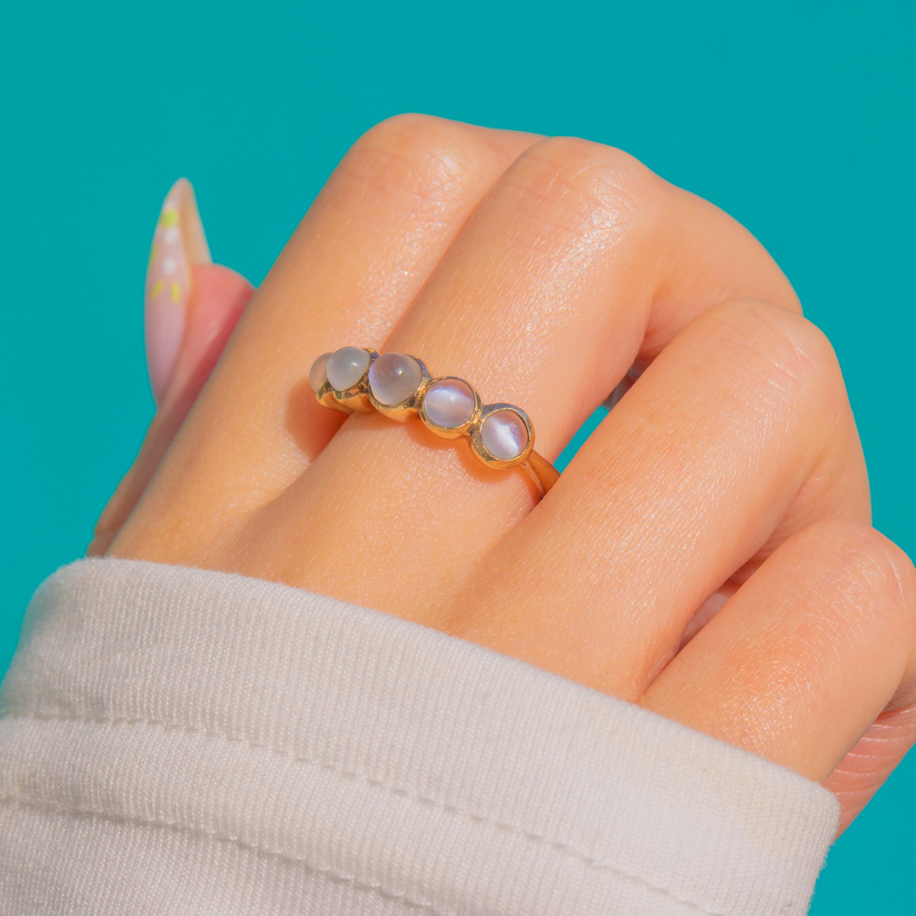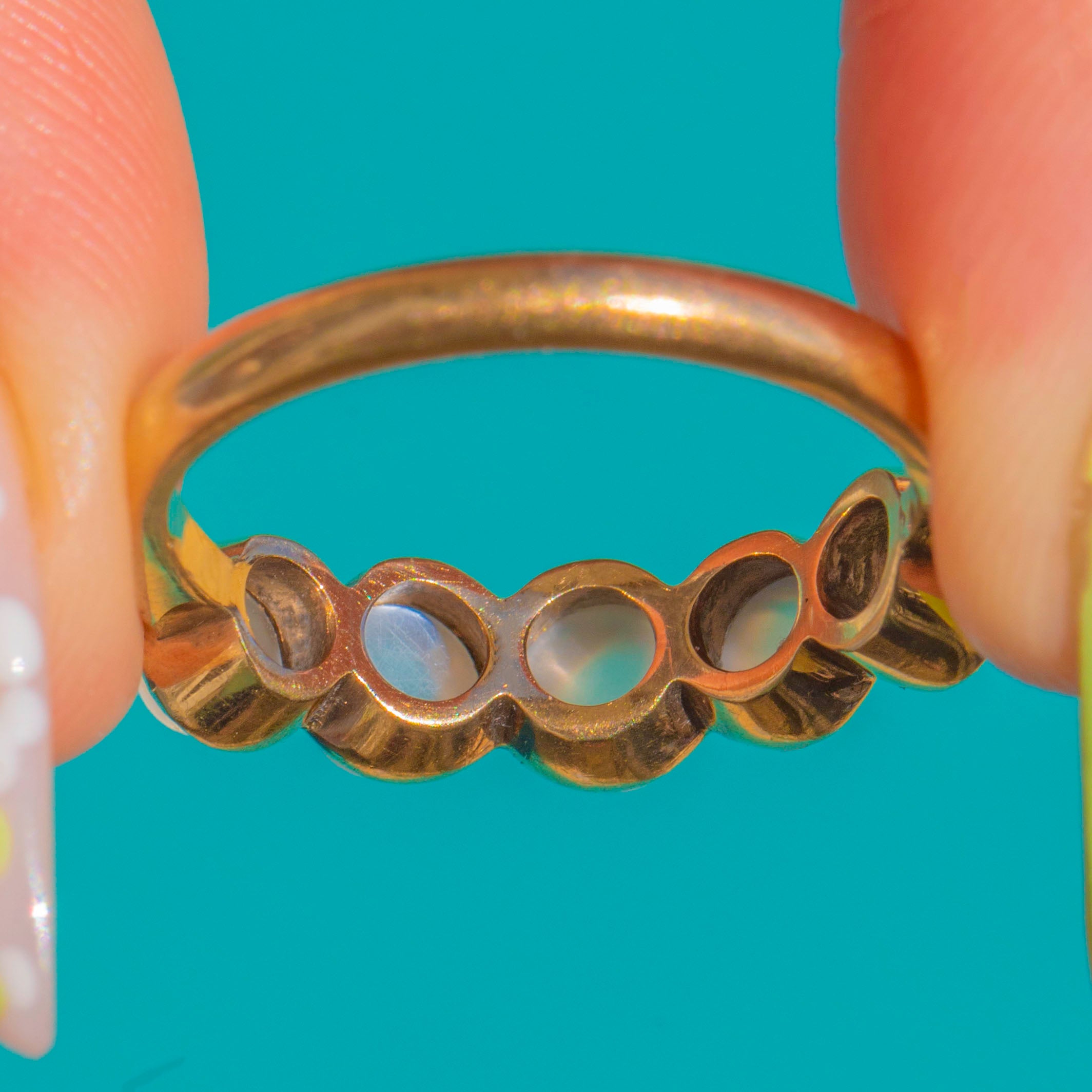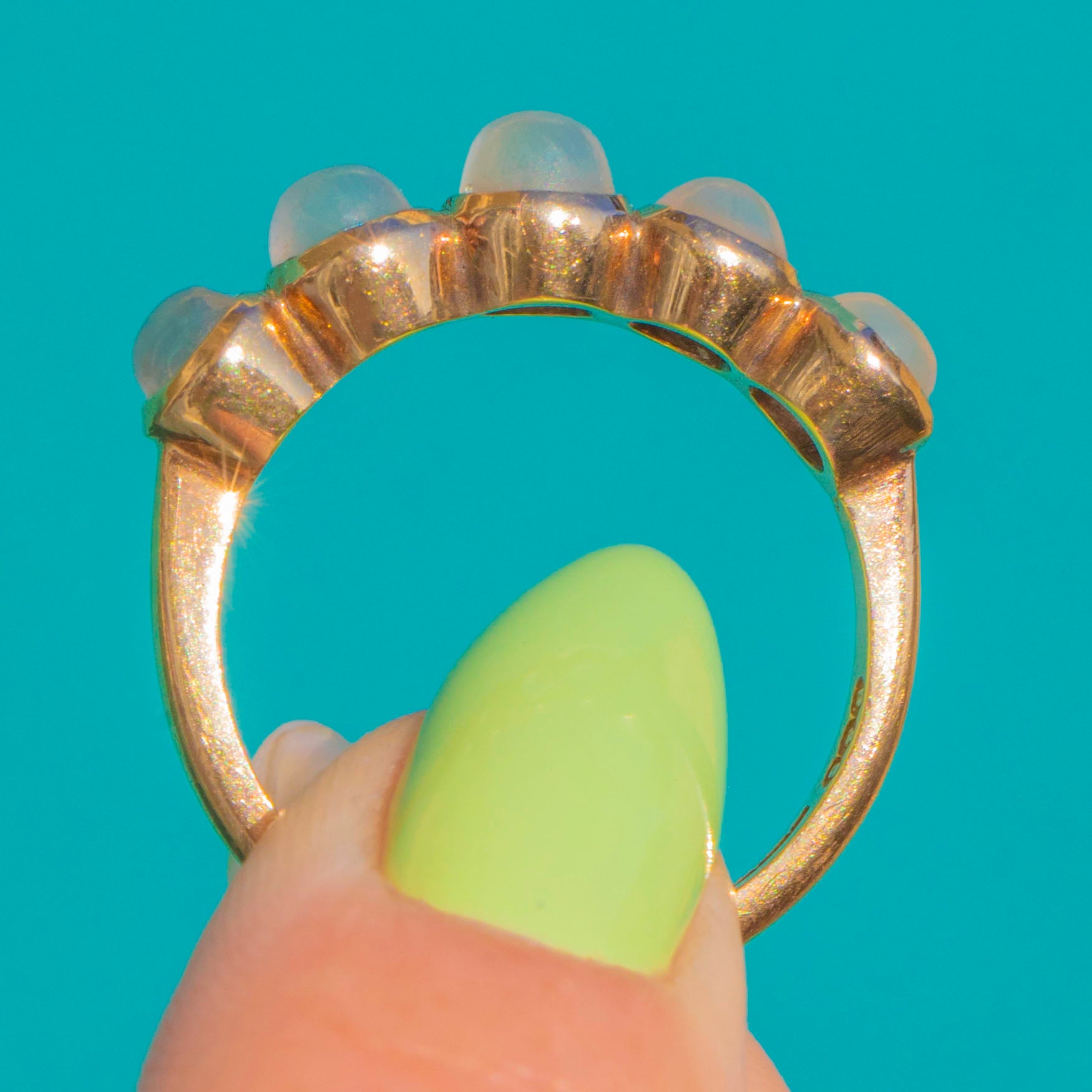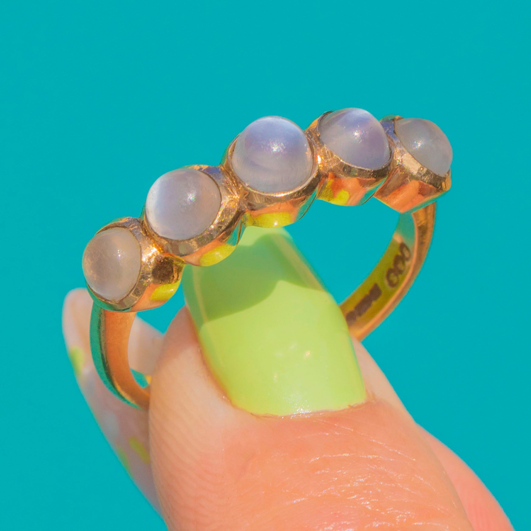 9ct Gold Moonstone Cabochon Five Stone Ring