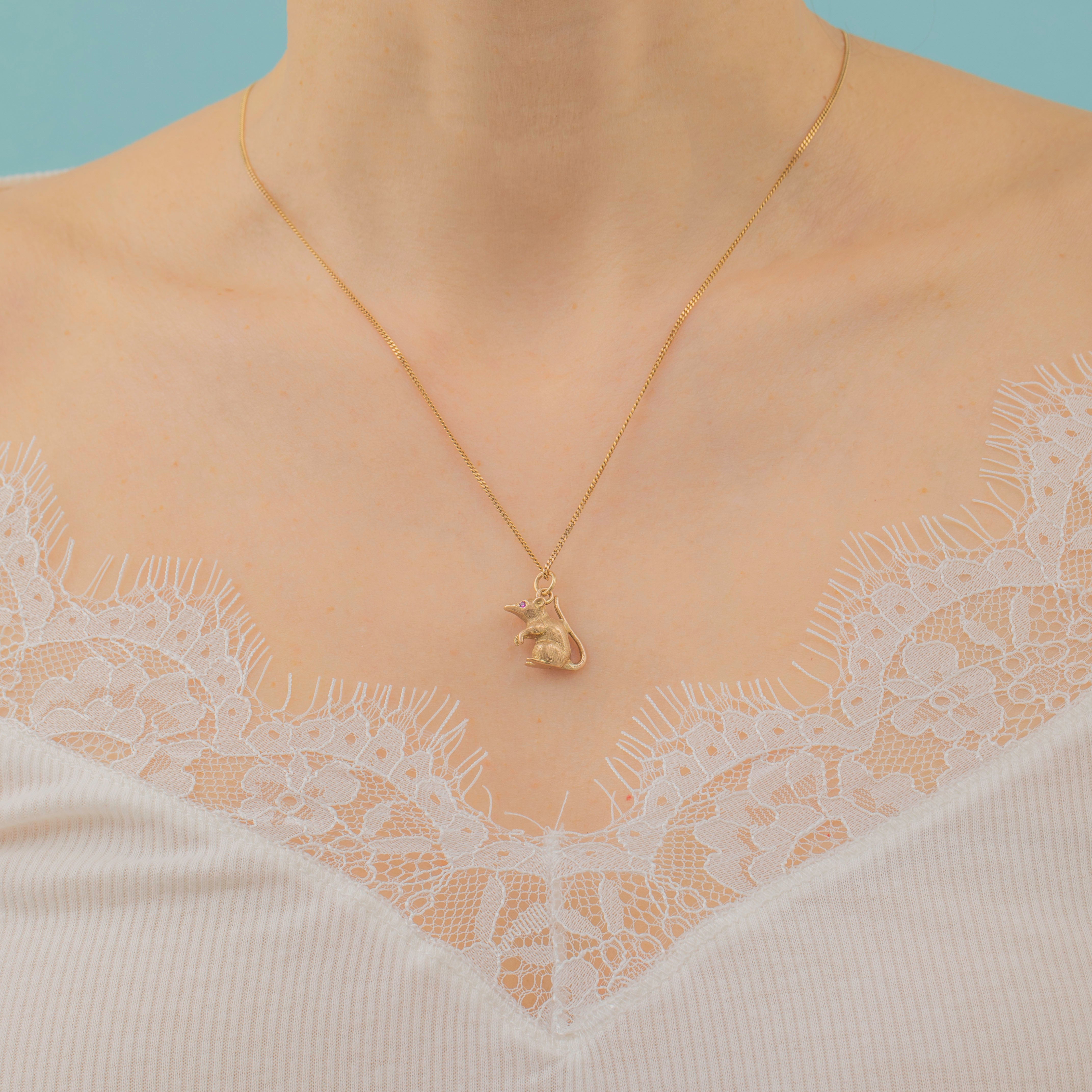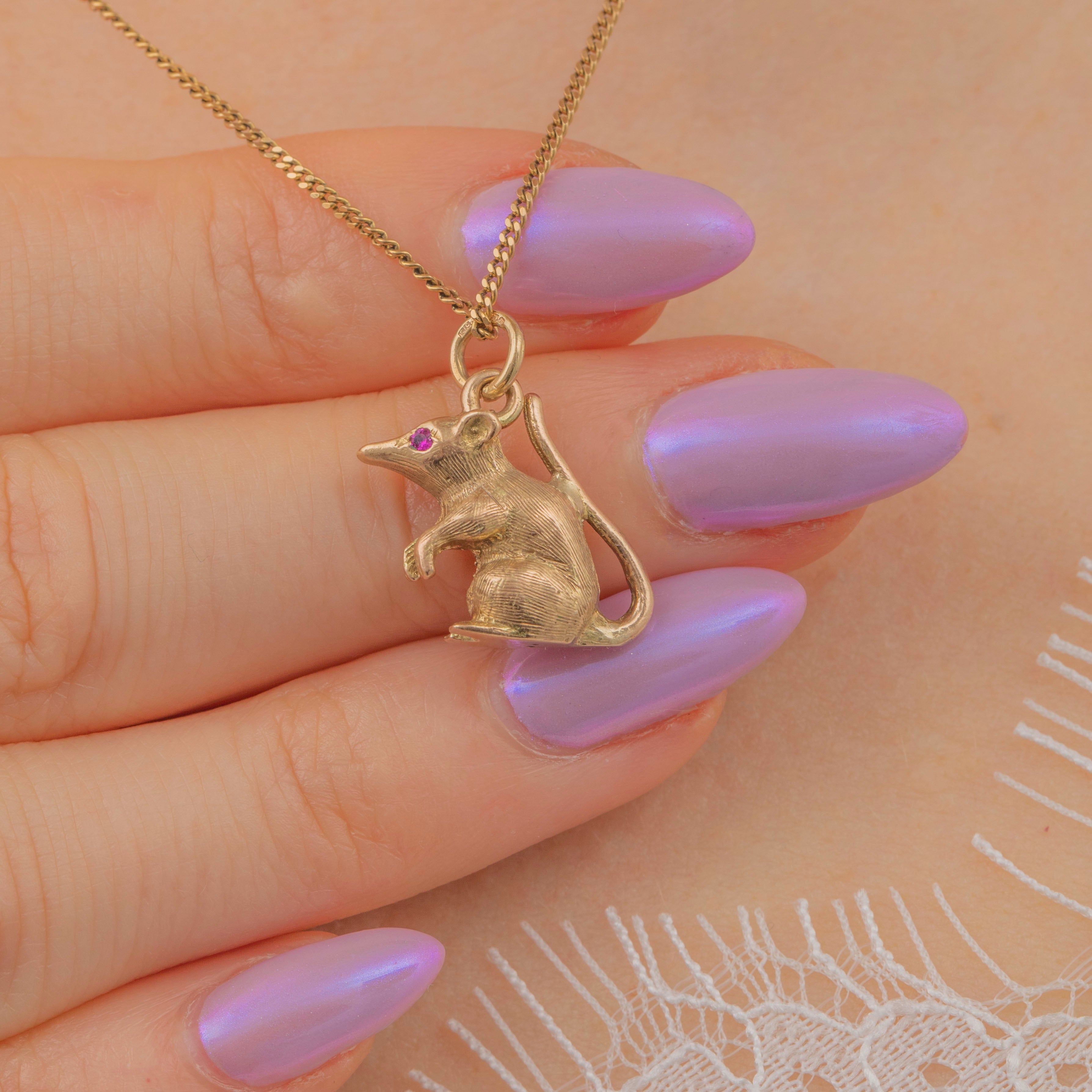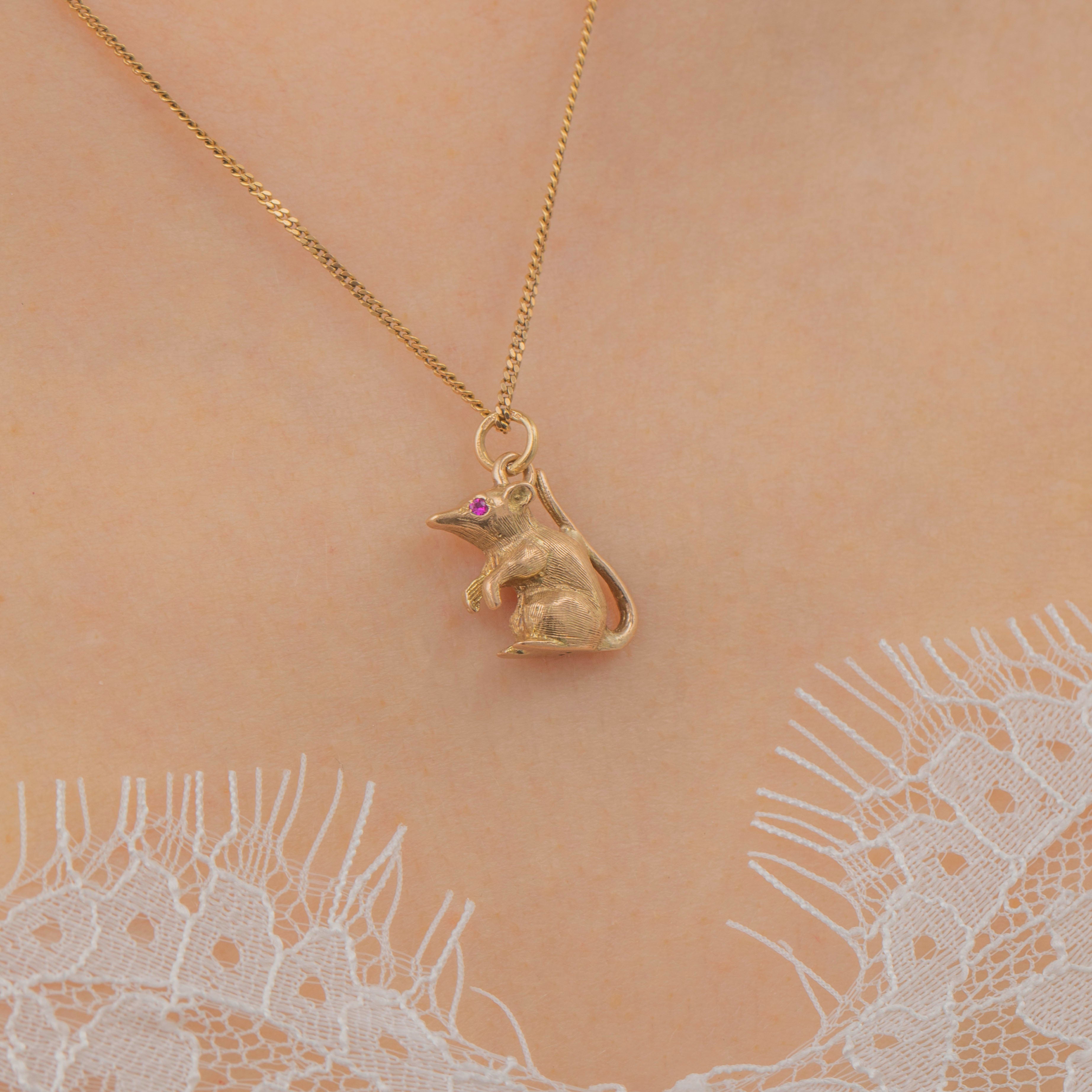 9ct Gold Mouse Pendant with Ruby Eyes