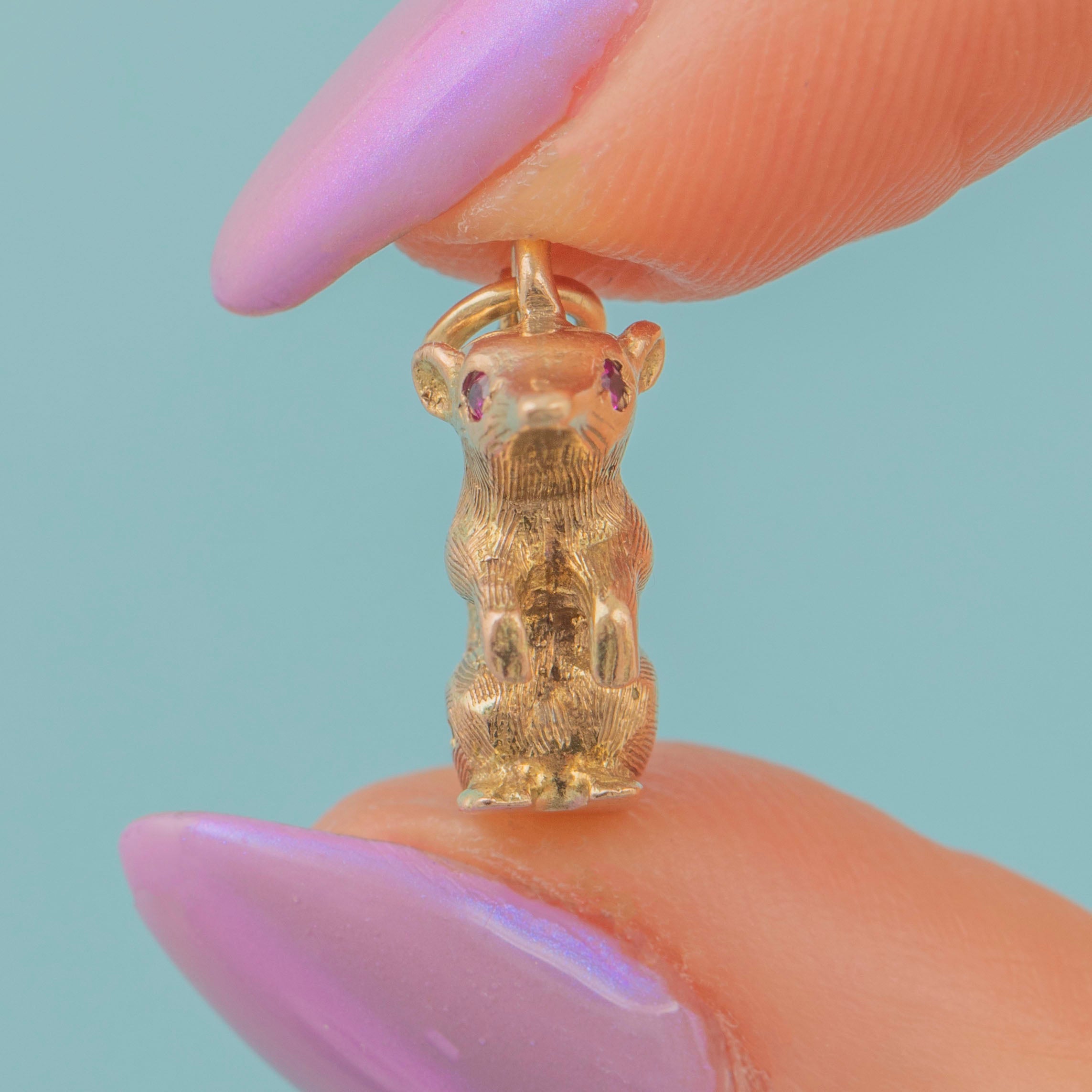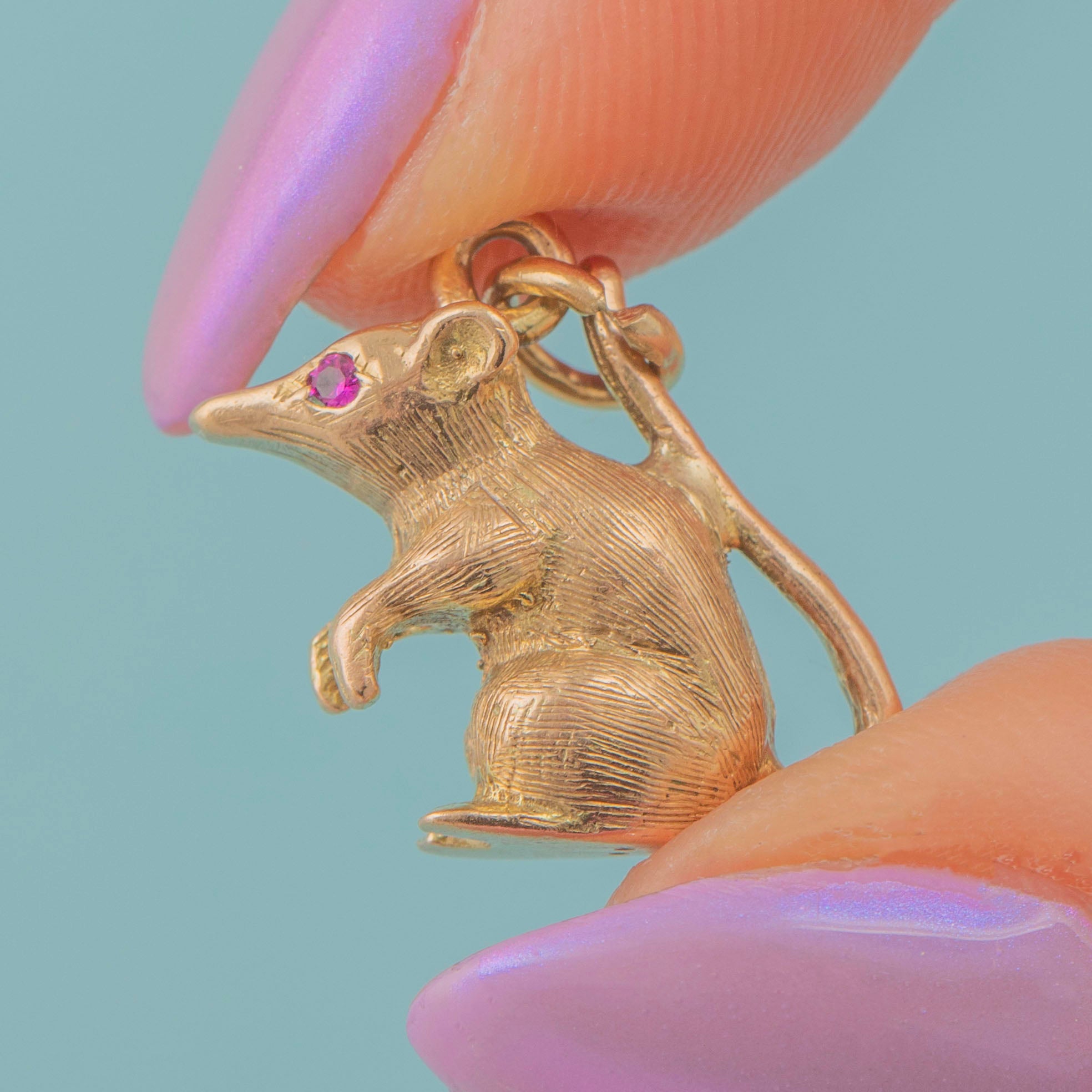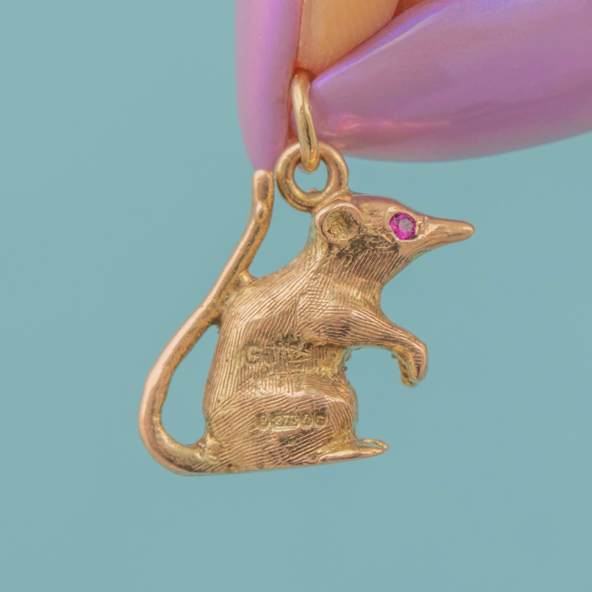 9ct Gold Mouse Pendant with Ruby Eyes