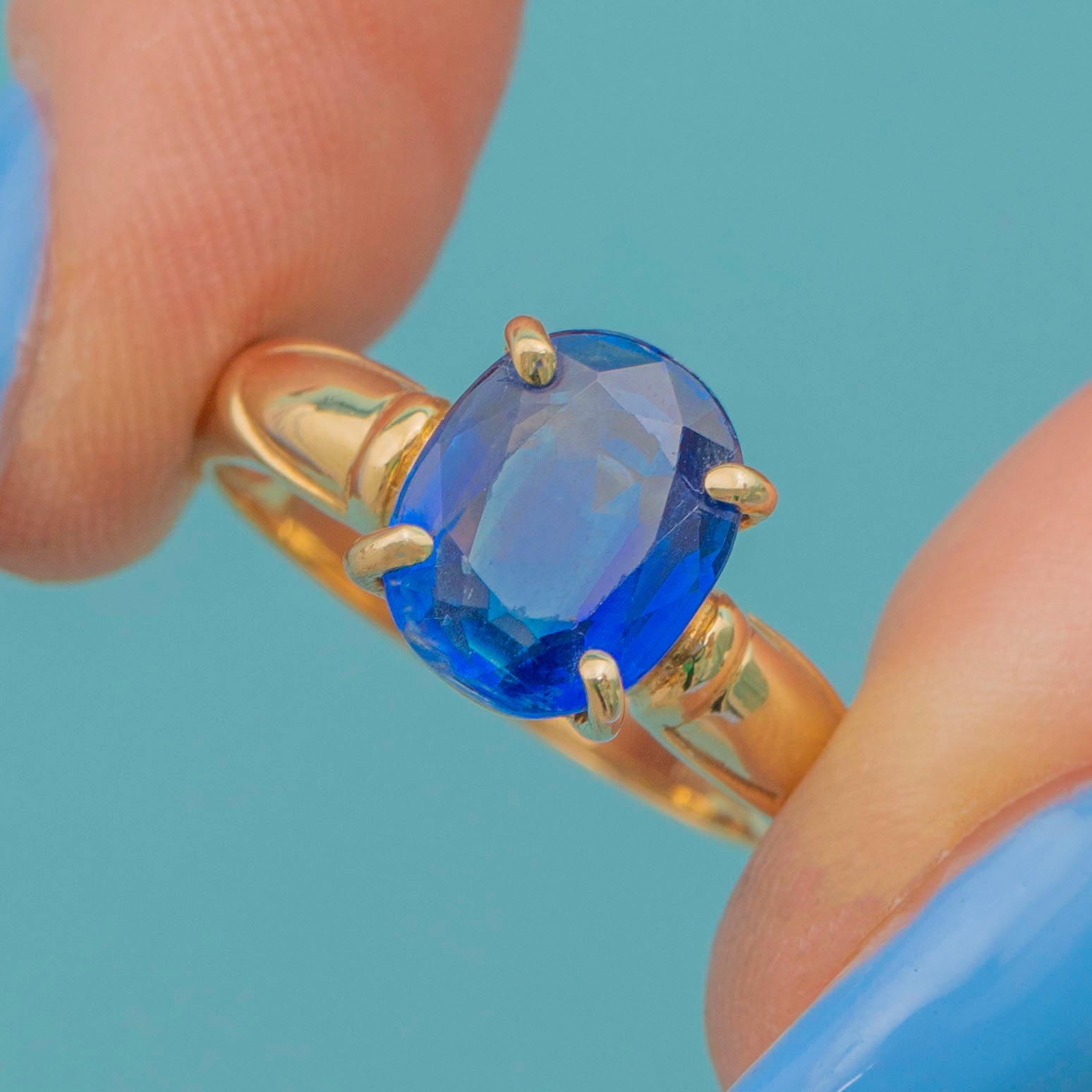 9ct Gold Natural Sapphire Solitaire Ring, 2.50ct