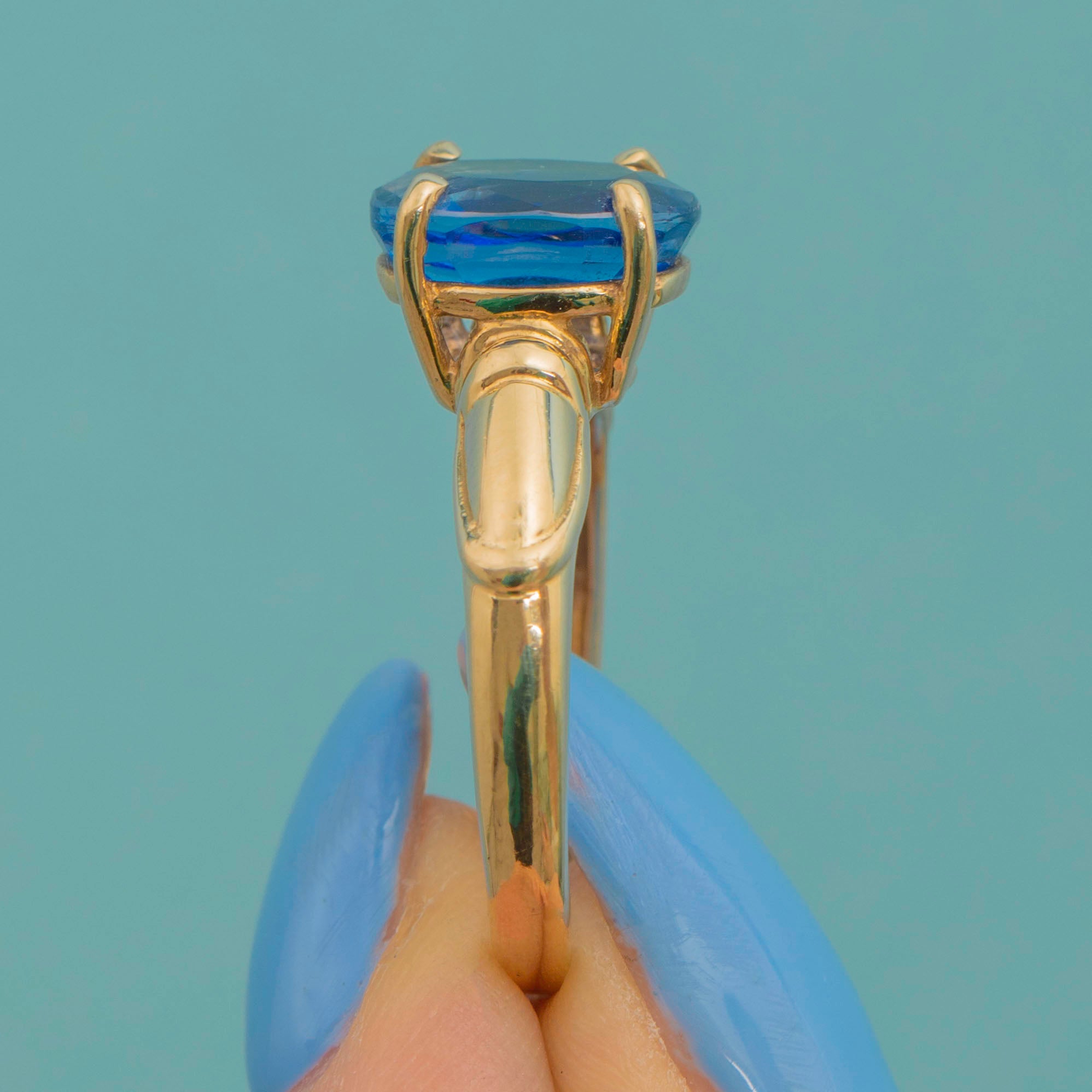 The chunky 9ct Gold band wraps around your finger with undeniable luxury, holding the Sapphire proudly from the finger in a double basket setting that allows the light to stream through from every angle. Guaranteed to turn heads, this vintage Sapphire ring will make an impact wherever she goes!
