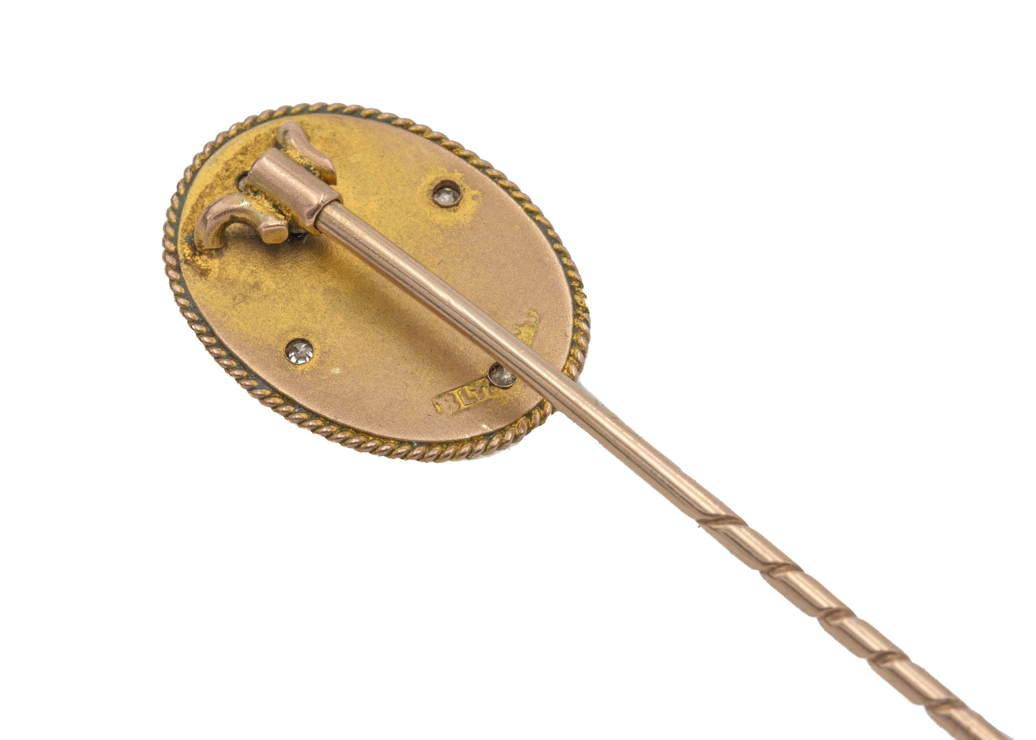 VERY GOOD. This 9ct Gold nautical flag stick pin is in very good condition! The pin has a home in its original box, which has kept immaculately well over the years, has only some minor scuffing on its top and a little wear to the cream satin lining. The pin itself has kept uber well, with very little wear to note! The flag and Diamond details have retained its original splendour. There is a little wear to the back of the head of the piece, but nothing untoward!