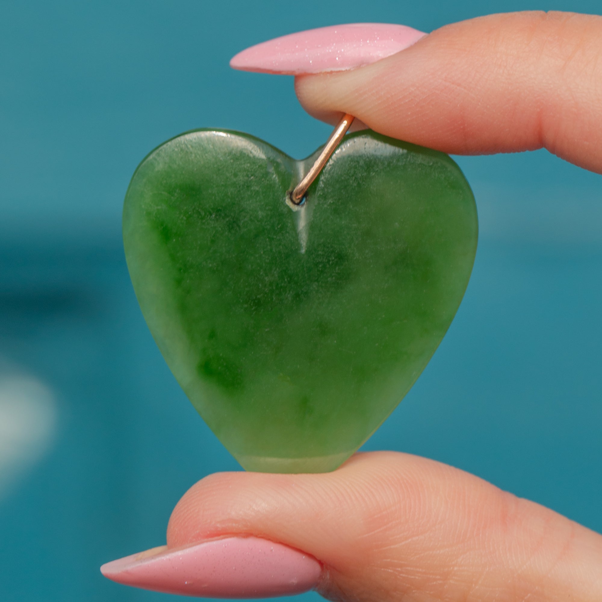 EXCELLENT:  This 9ct Gold Nephrite Jade heart pendant is in excellent condition. The Jade is smooth and beautifully carved, with only the most minor visible wear. She's such a delight!