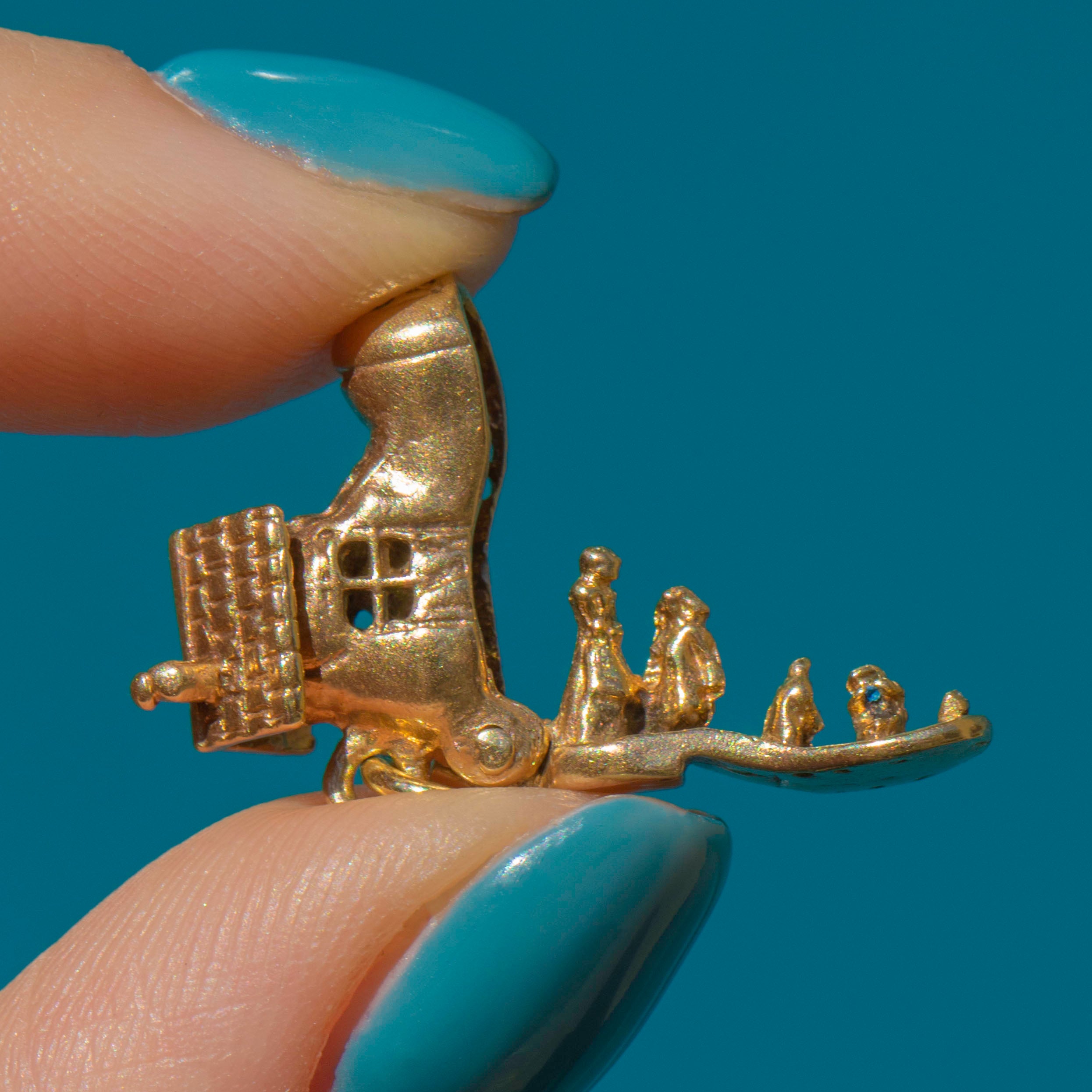 The base of the little shoe house opens, homing the lady and all her tiny little golden children, simply adorable! Taking you on a trip down memory lane, this articulated novelty charm will make a playful addition to your jewellery box.