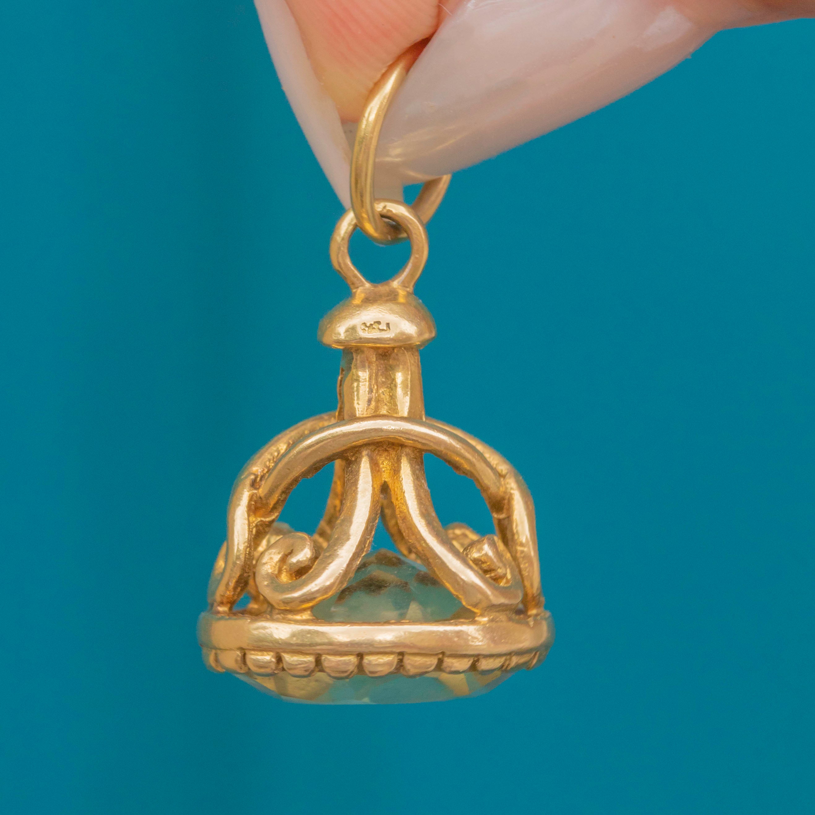 EXCELLENT. The Gold is bright and buttery and the fob has held its form well over the years. Although there is ever so slight movement in the Citrine, it remains securely set and is free from chips. With a full set of hallmarks, we can accurately date this mid-century fob to 1964!
