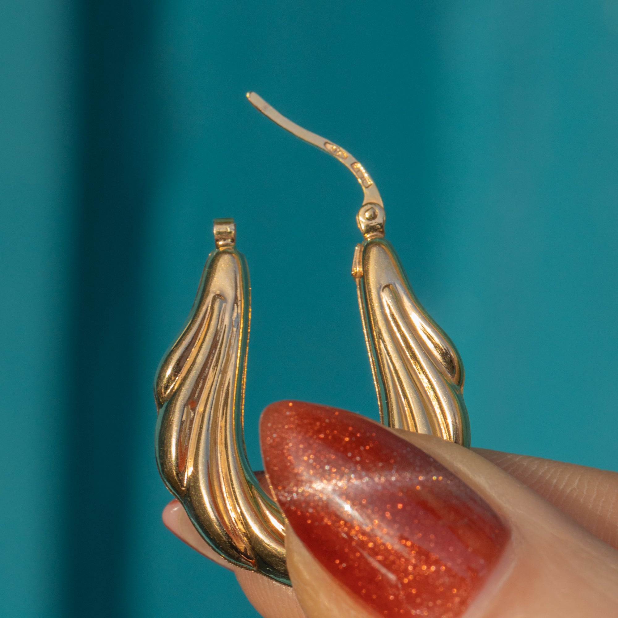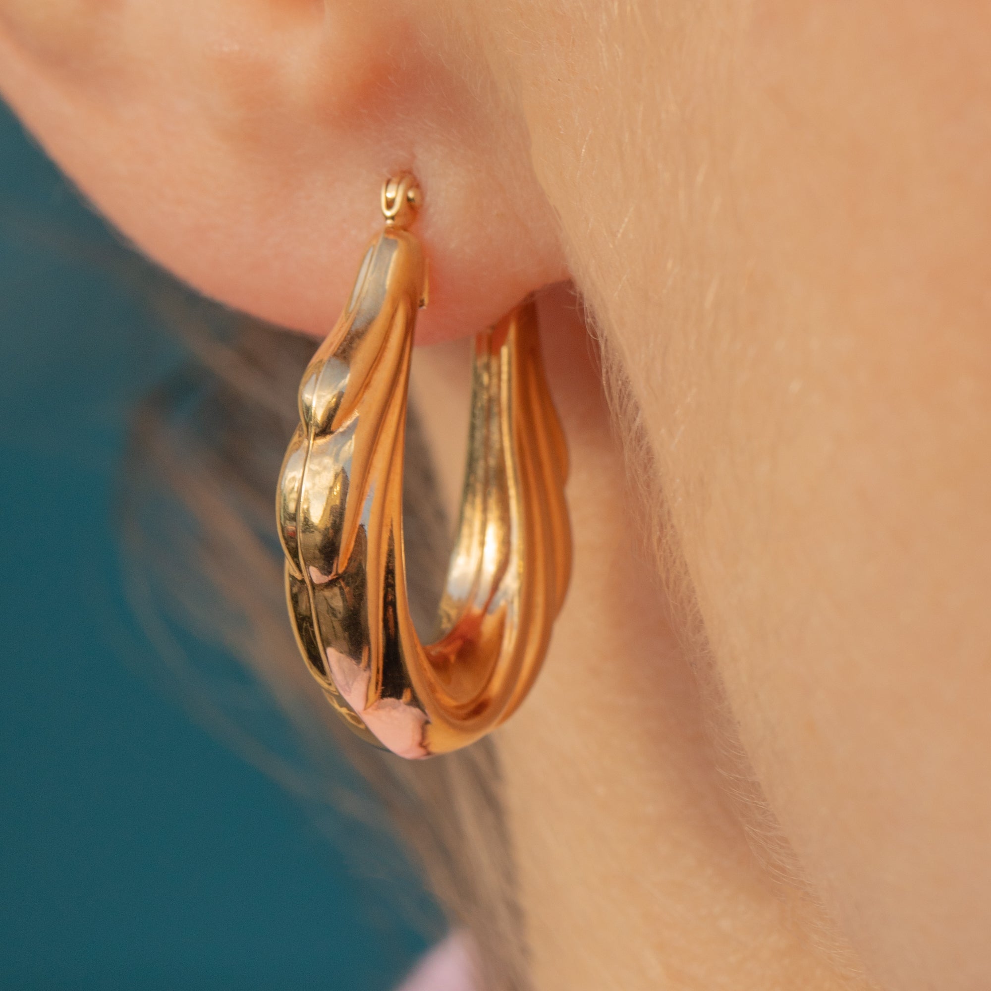 A gorgeous pair of 9ct Gold croissant hoop earrings to complete your outfit! Each buttery earring has a lovely curvaceous shape with folds of 9ct Gold giving these vintage earrings her namesake croissant shape.